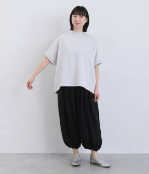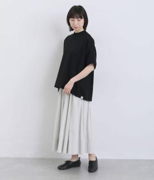 身幅にゆとりを持たせたコクーンラインが、ふんわりとしたシルエットを描く一枚。体のラインを拾いにくく、軽やかな着心地が魅力です。フロントから袖口まで切り替えのないデザインが、全体をすっきりとした印象に。前後差のある裾が、コーディネートに自然なメリハリを添えてくれます。