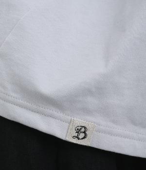 ほどよい厚みのヴィンテージ天竺を使用し、やわらかくきめ細かな肌ざわりに仕上げました。糸の撚りを抑えた編み立てにより、素朴で表情のある風合いが生まれます。着用を重ねることで生地がなじみ、味わいのある表情へと育っていくのも魅力です。