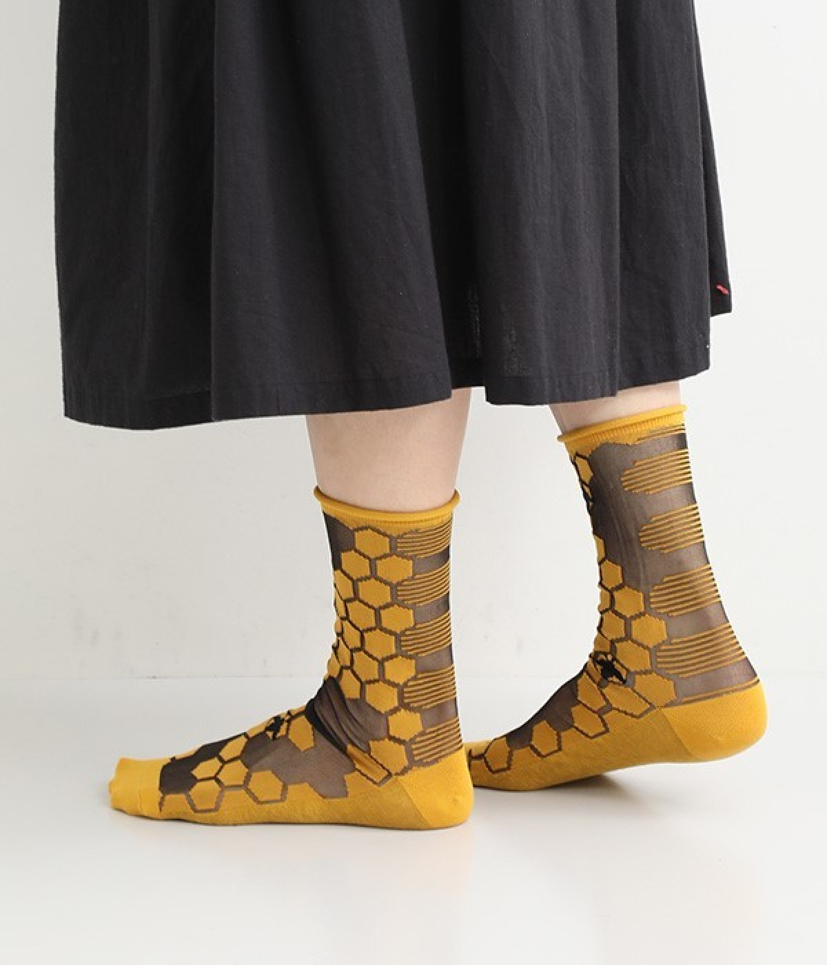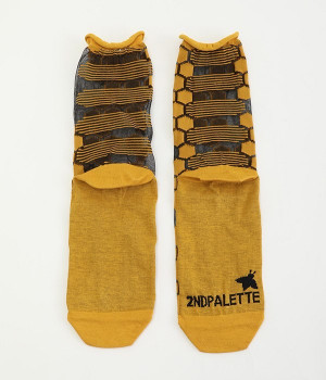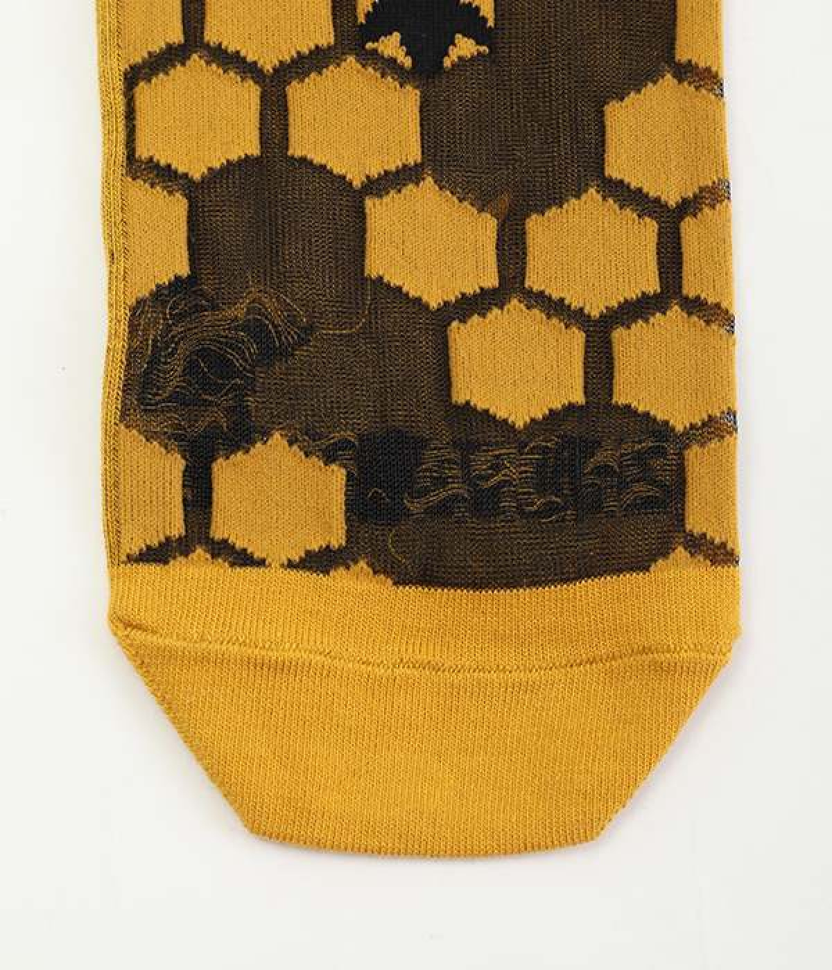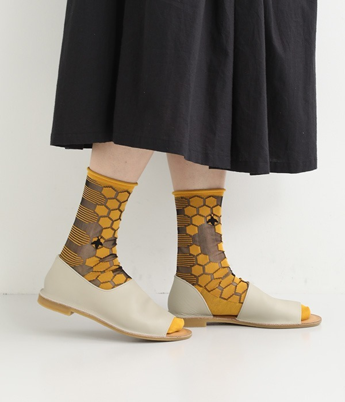 ミツバチをモチーフにした、左右非対称の絵柄がおしゃれなチュールソックスです。オーガニックコットン素材を使用しているため、履き心地も抜群。片方のミツバチのアイコンがアクセントとなっています。サンダルに合わせるのもおすすめ。遊び心のあるコーディネートを楽しめます。