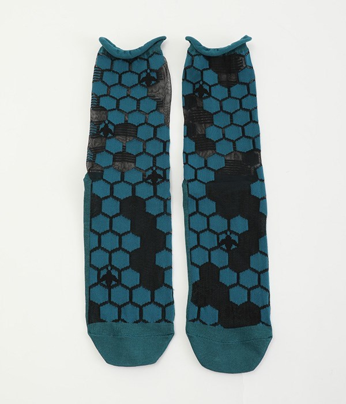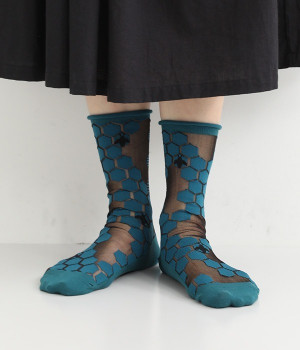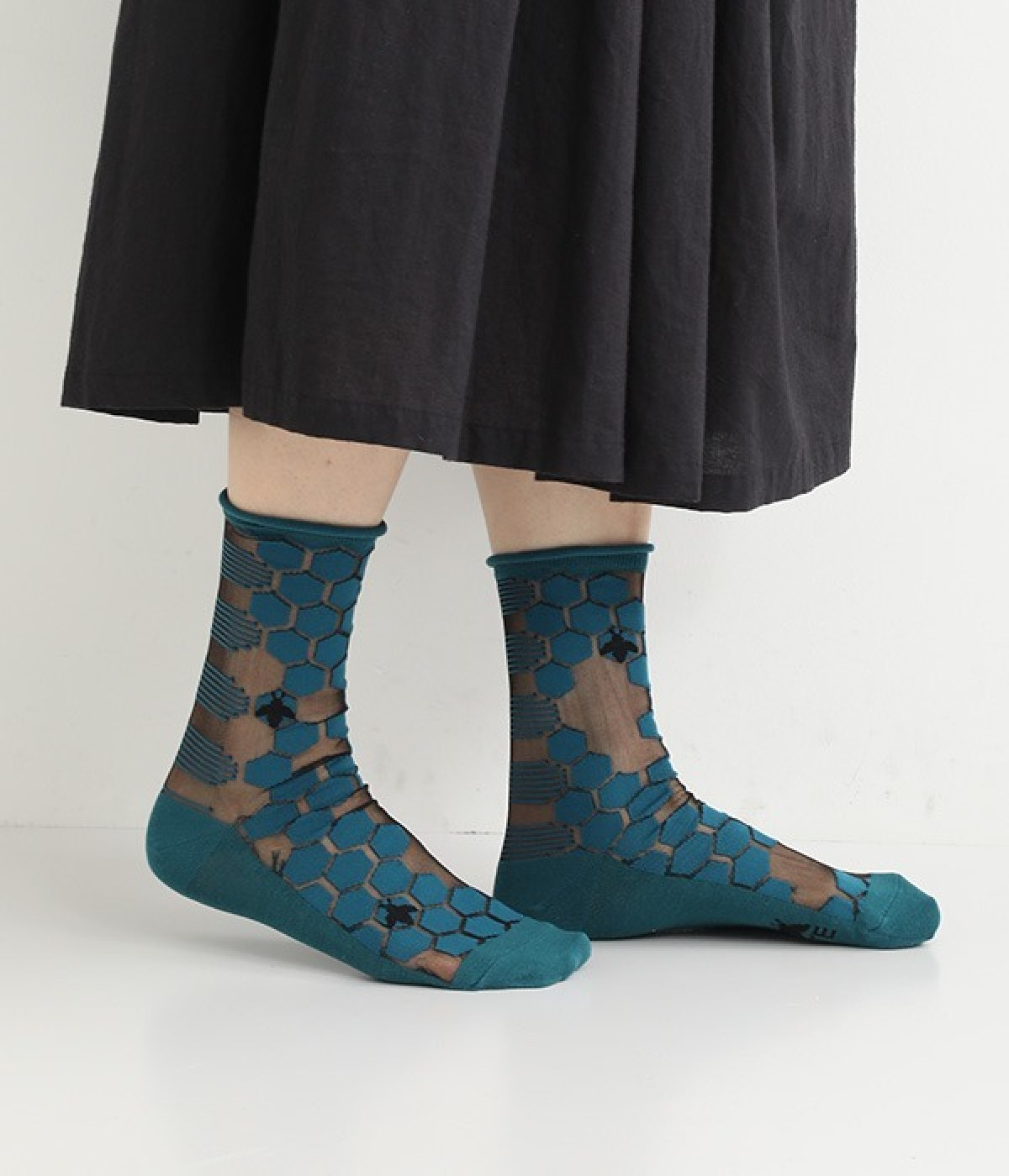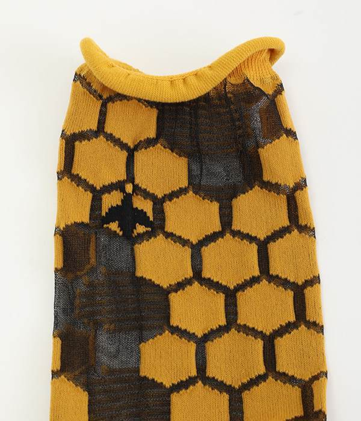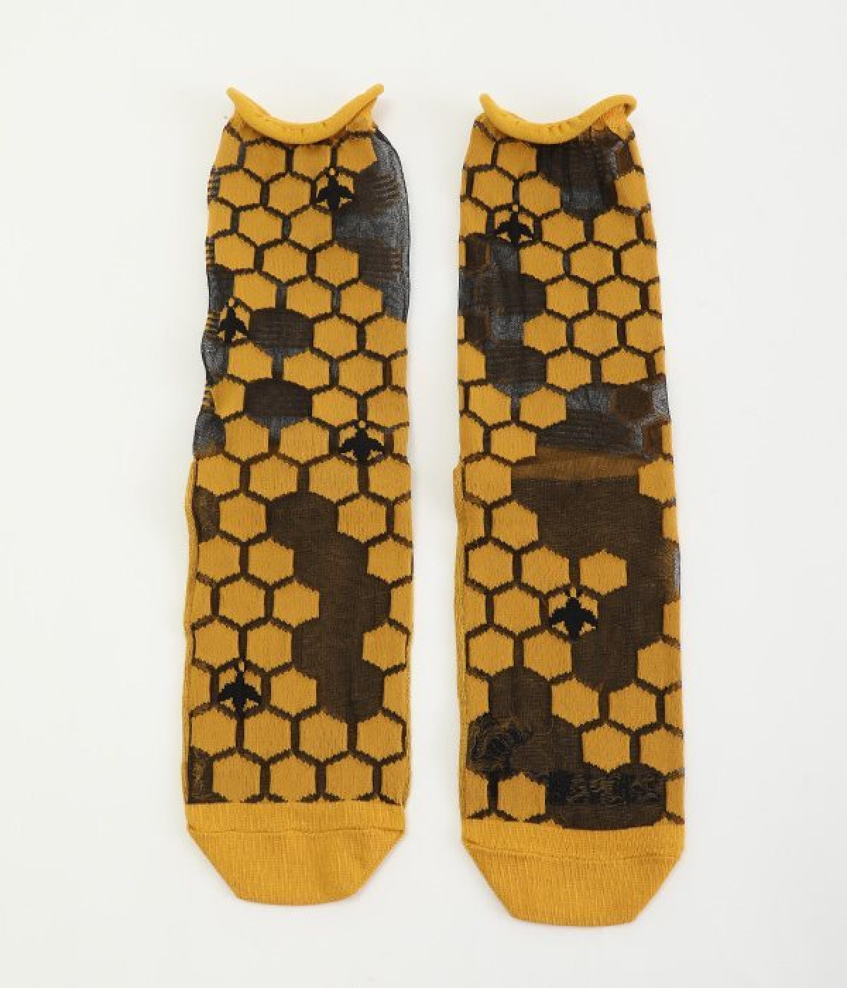ミツバチをモチーフにした、左右非対称の絵柄がおしゃれなチュールソックスです。オーガニックコットン素材を使用しているため、履き心地も抜群。片方のミツバチのアイコンがアクセントとなっています。サンダルに合わせるのもおすすめ。遊び心のあるコーディネートを楽しめます。