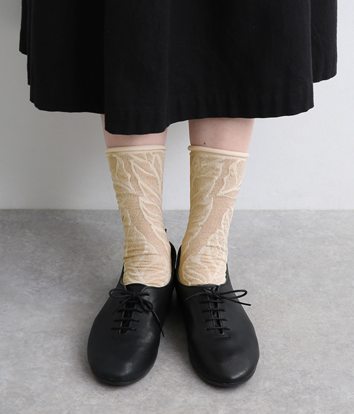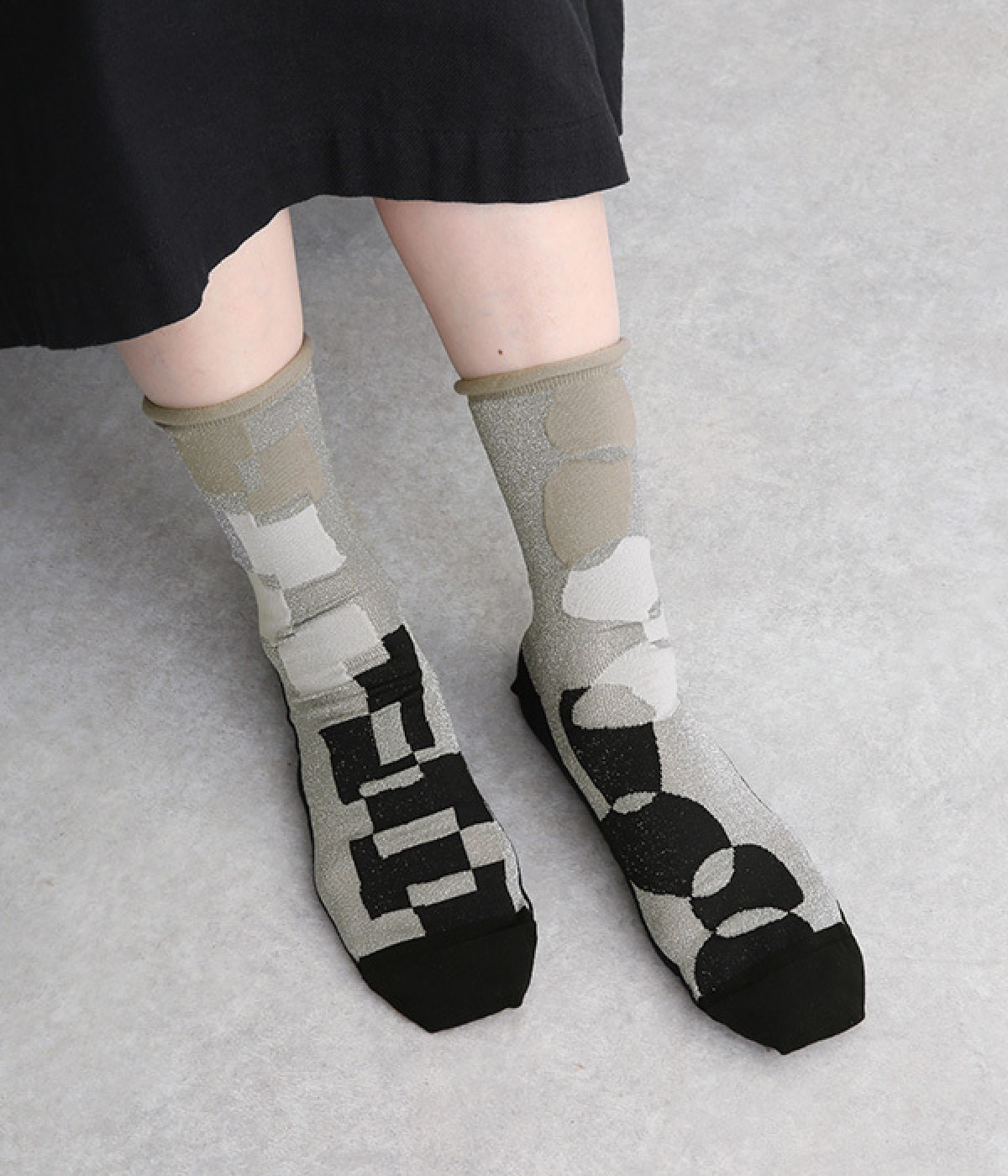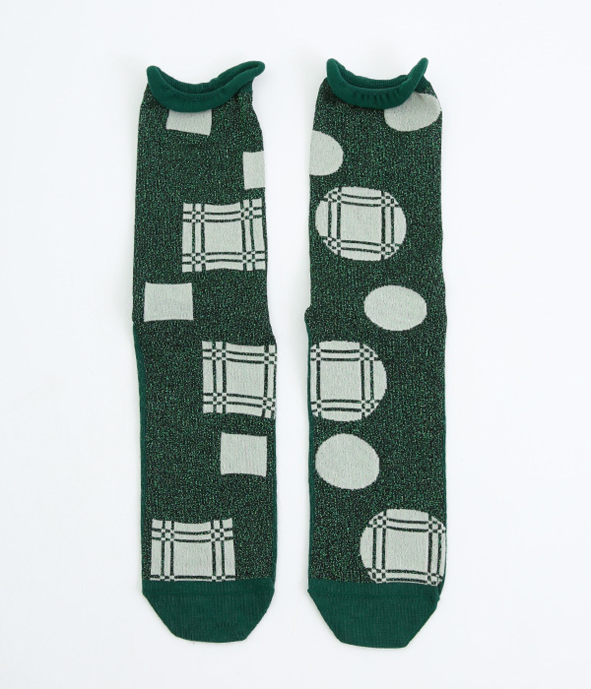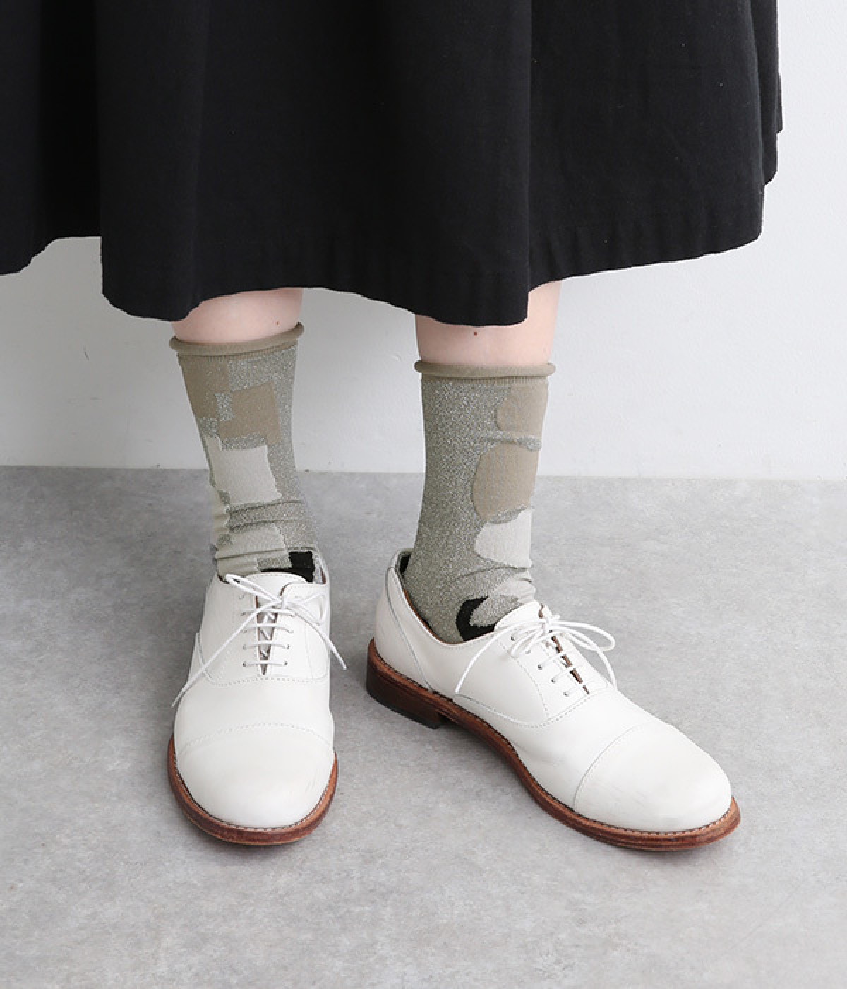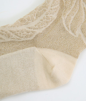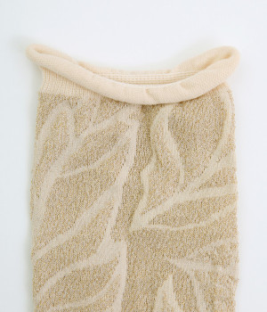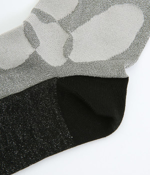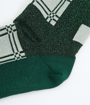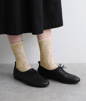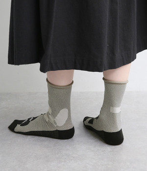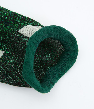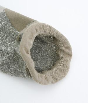 洗練された足元を演出する、きらめくラメ糸を使用したソックス。思わず目移りしてしまいそうな、カラー毎にデザインが異なるアソートタイプです。はいていて負荷がかかりにくいよう、はき口はくるっとロールさせてやわらかなフィットに。スニーカーにもレザー製ローファーにも、さまざまなシューズ合わせがしやすい薄仕立てです。