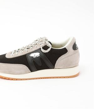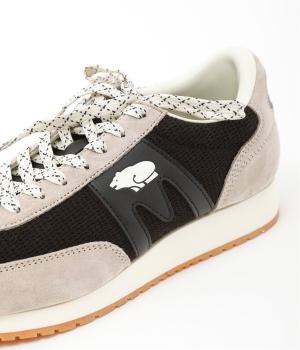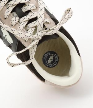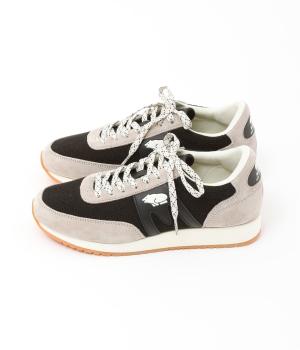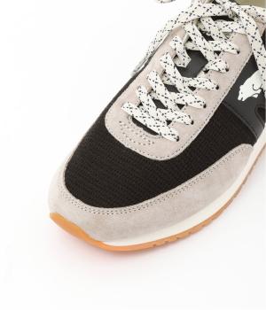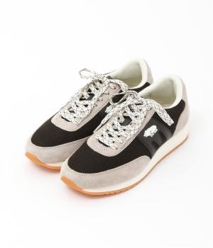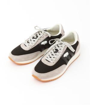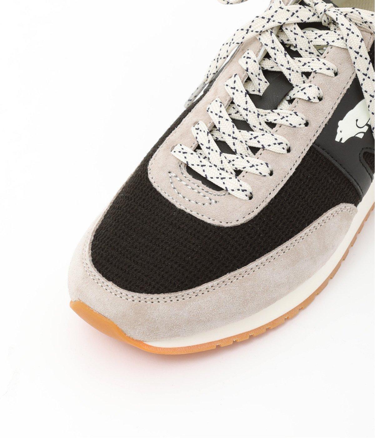 クマのマークと柄を入れたシューレースがポイントのスニーカー。落ち着いた色味となめらかなレザー使いで、カジュアルに転びすぎない上品なムードが漂います。きれいめな装いに、外しアイテムとして取り入れるのもおすすめです。
