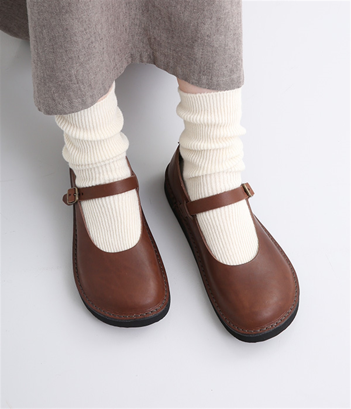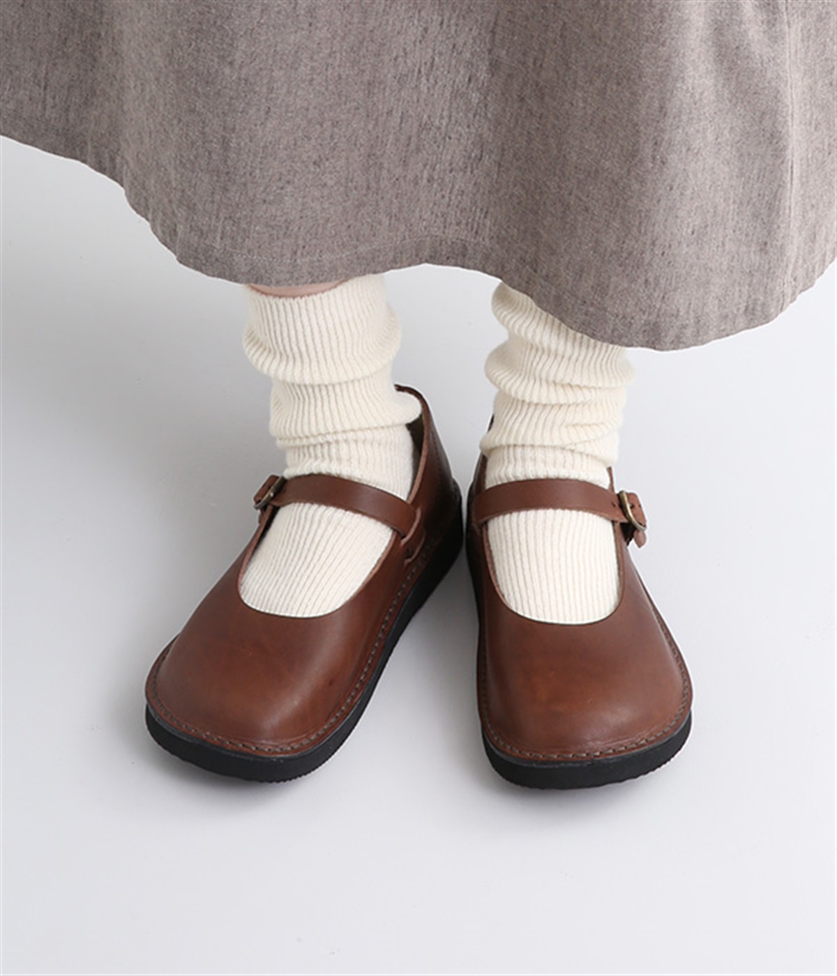 靴下やタイツとの合わせが楽しめるストラップタイプ