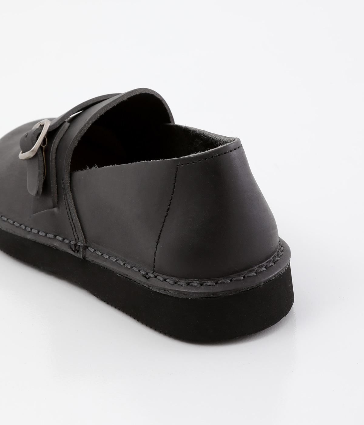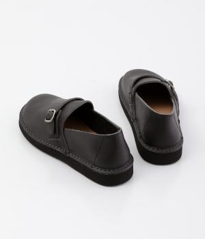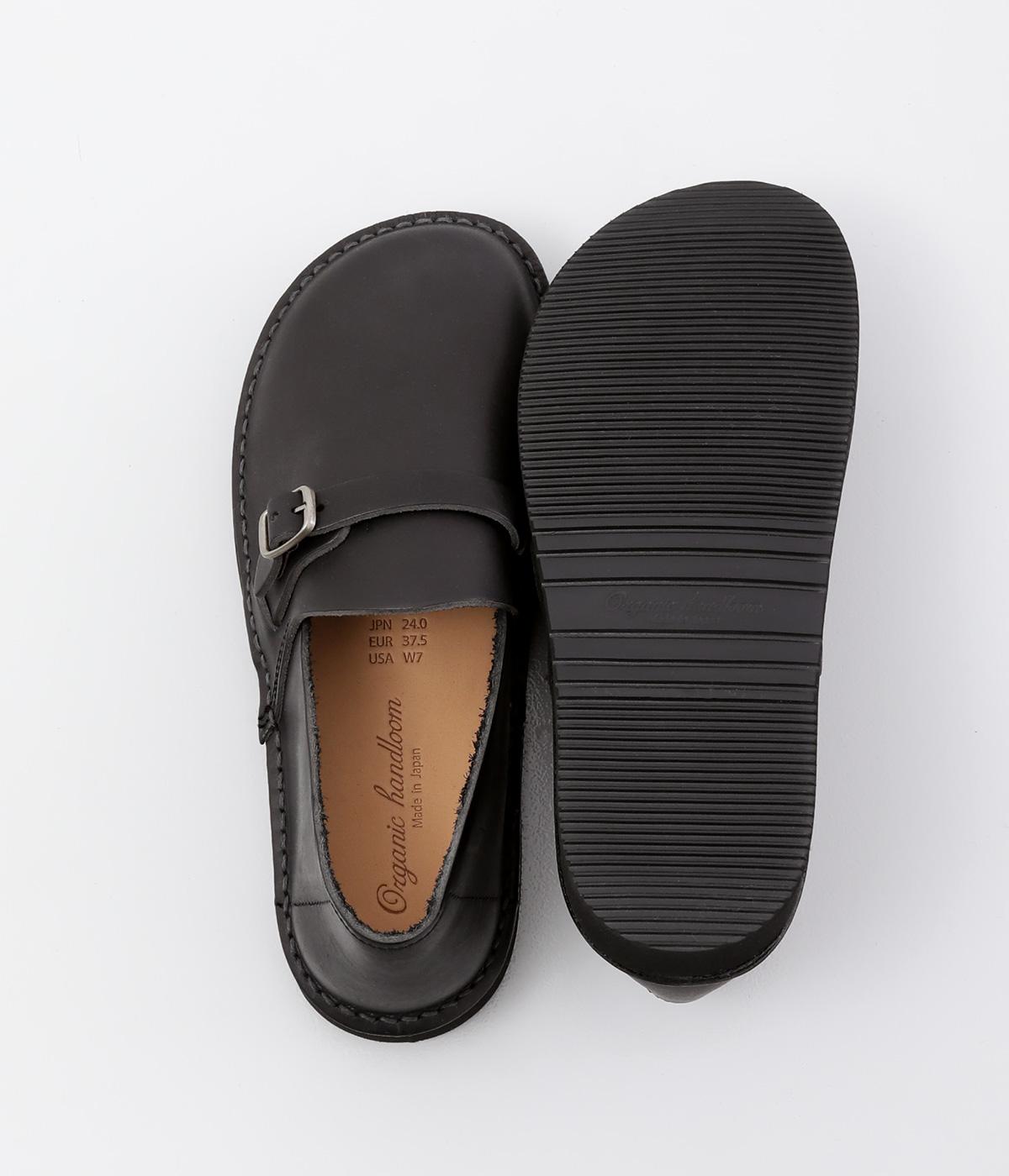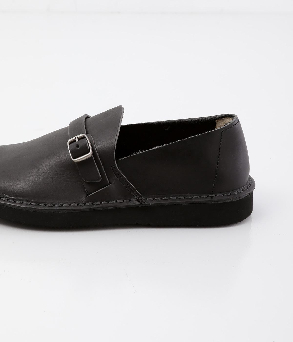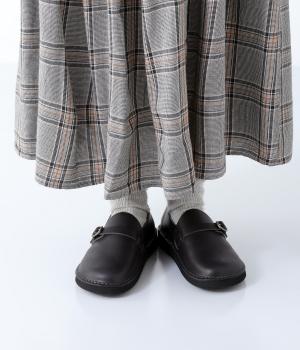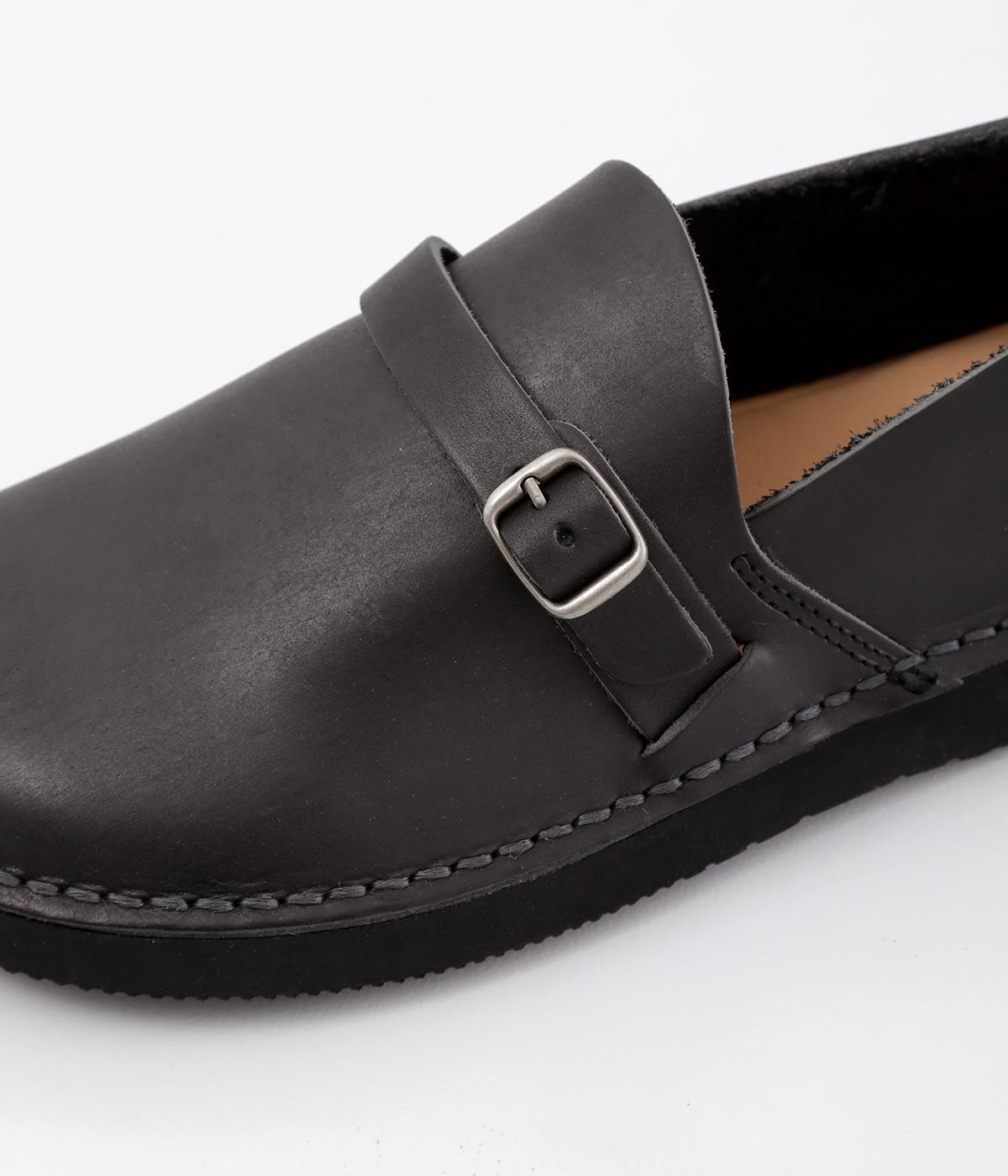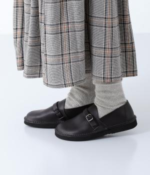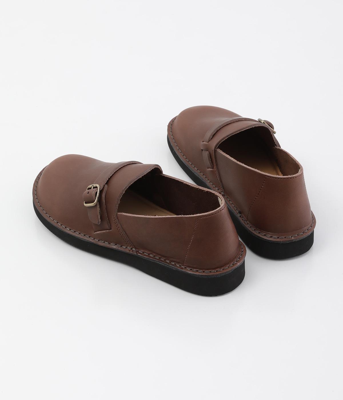 品のよいレザーの質感をいかしたシンプルなスリッポンシューズ。つま先の幅を広めに設定したころんとしたシルエットで履き心地のよさをアップしています。オンオフ問わず、さまざまな装いに合わせやすい一足です。