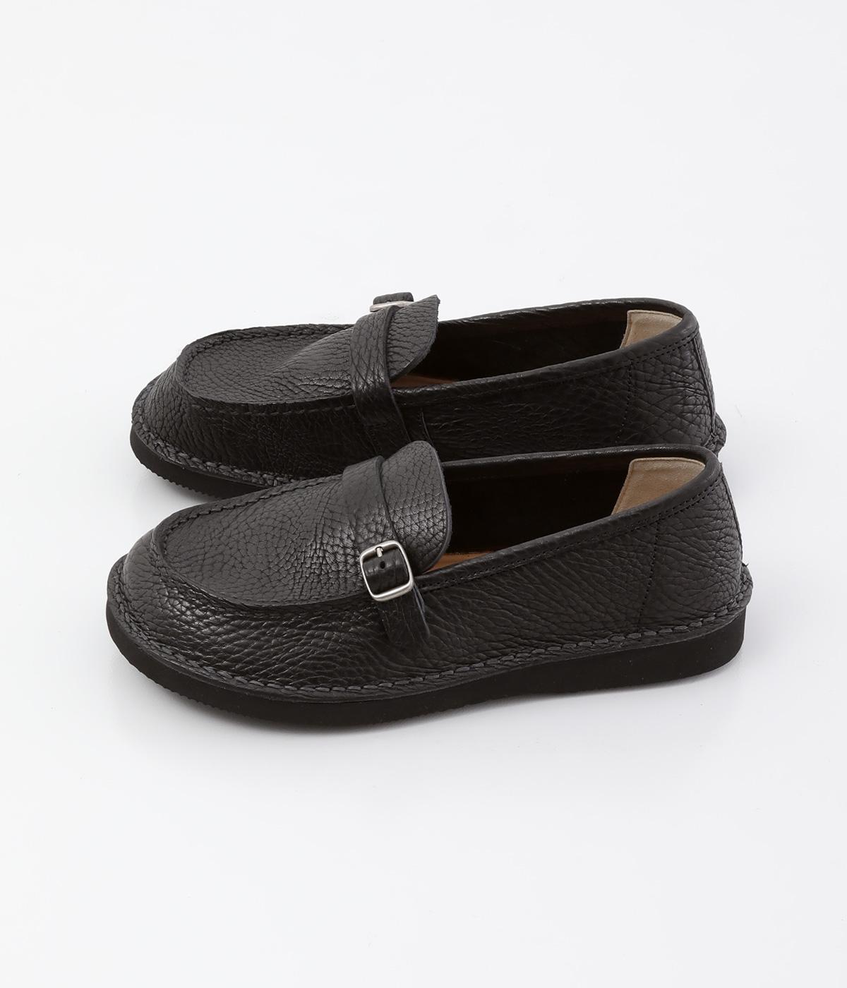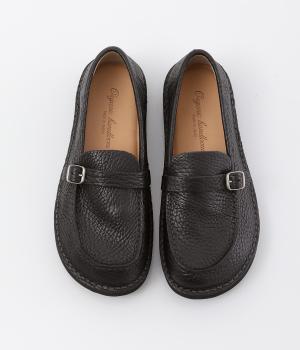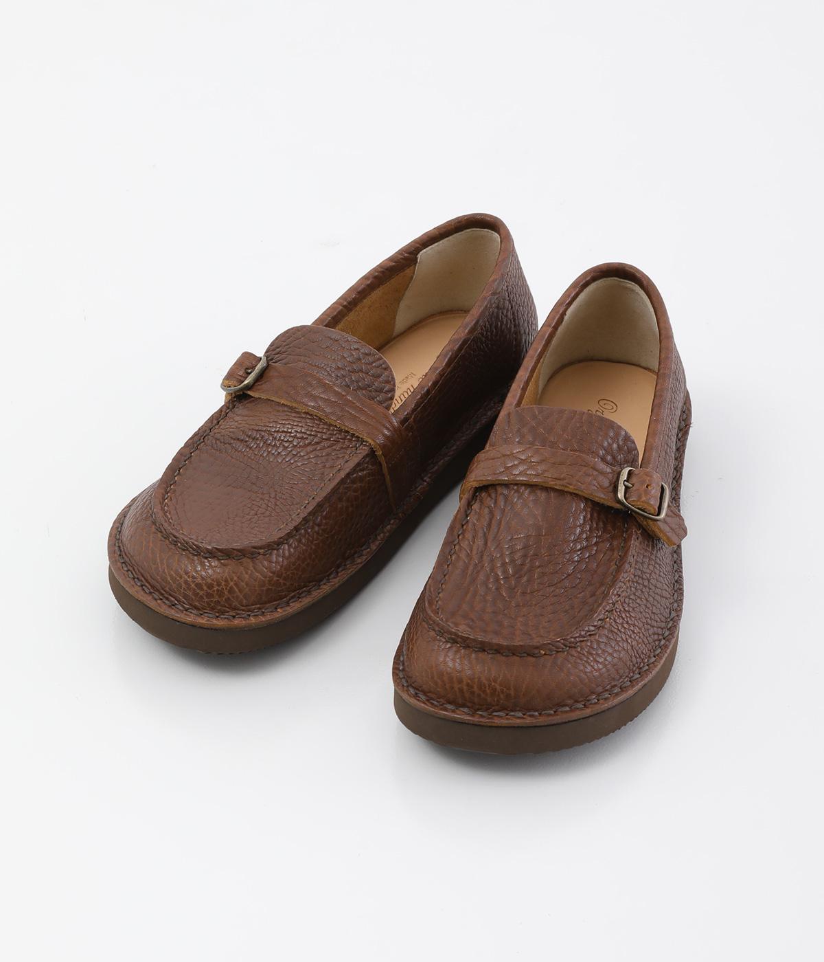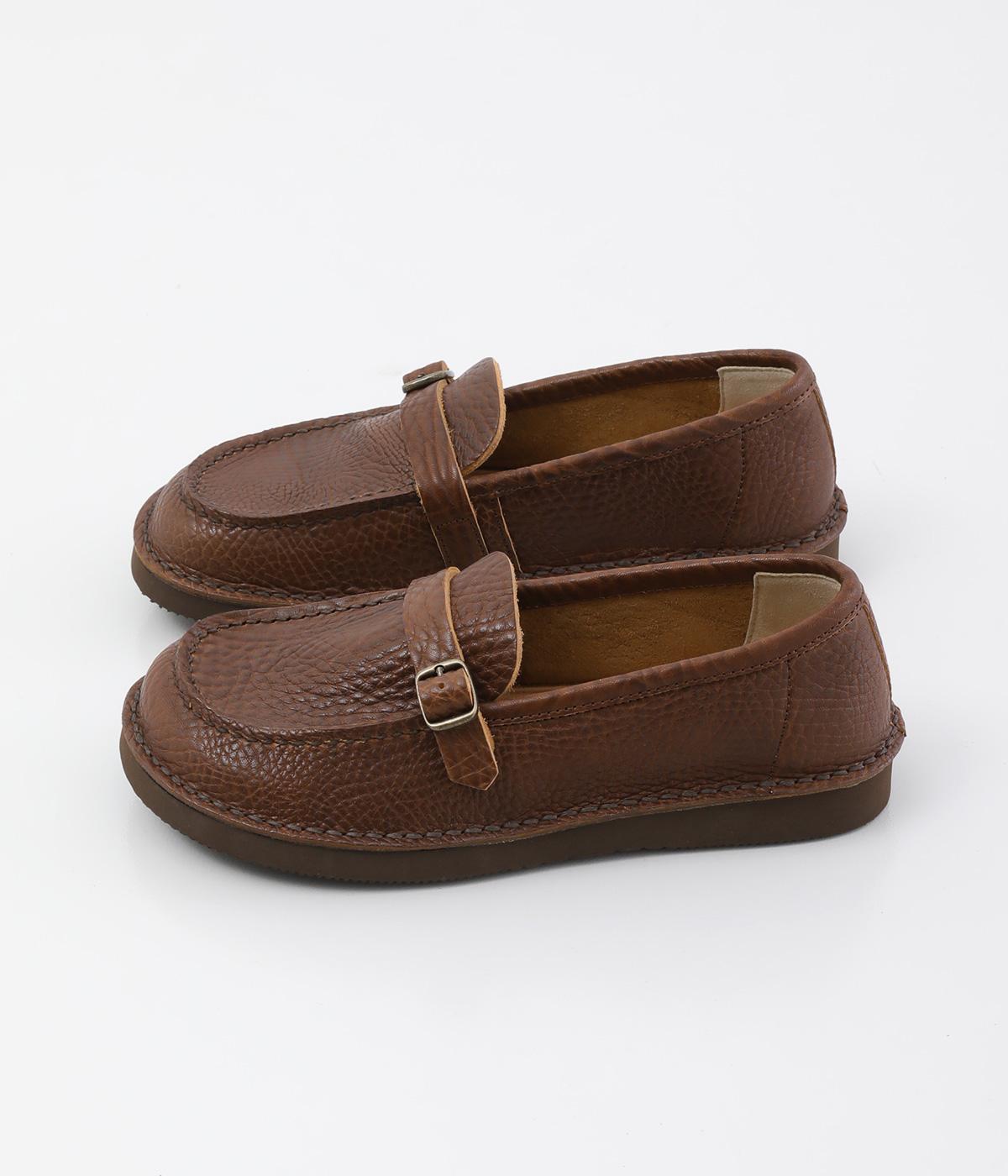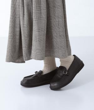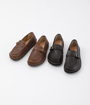 職人さんによって甲部分をU字に縫うモカシン縫いで仕上げられたローファー。つま先を広くした丸みのあるシルエットが愛らしい印象です。見た目よりも軽く、はき心地も◎。カジュアルにもきれいめにもなじむ、気軽にはける一足です。