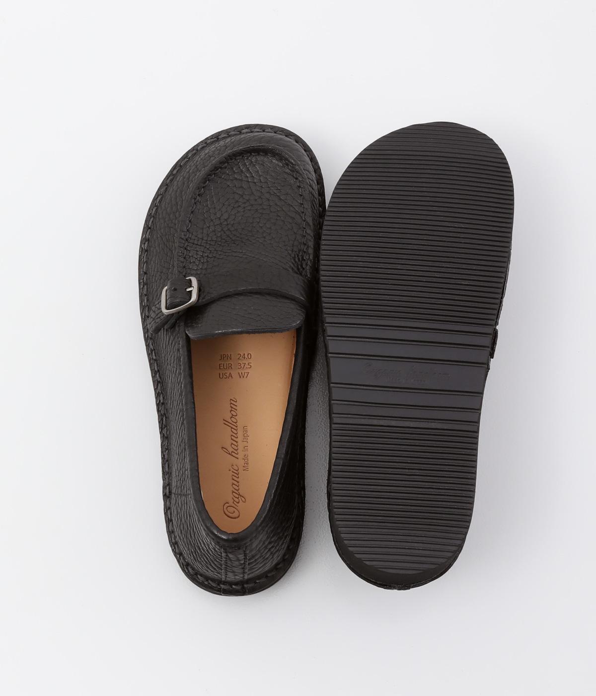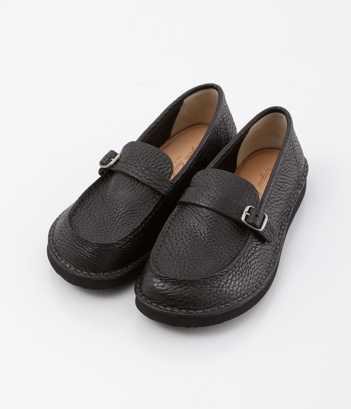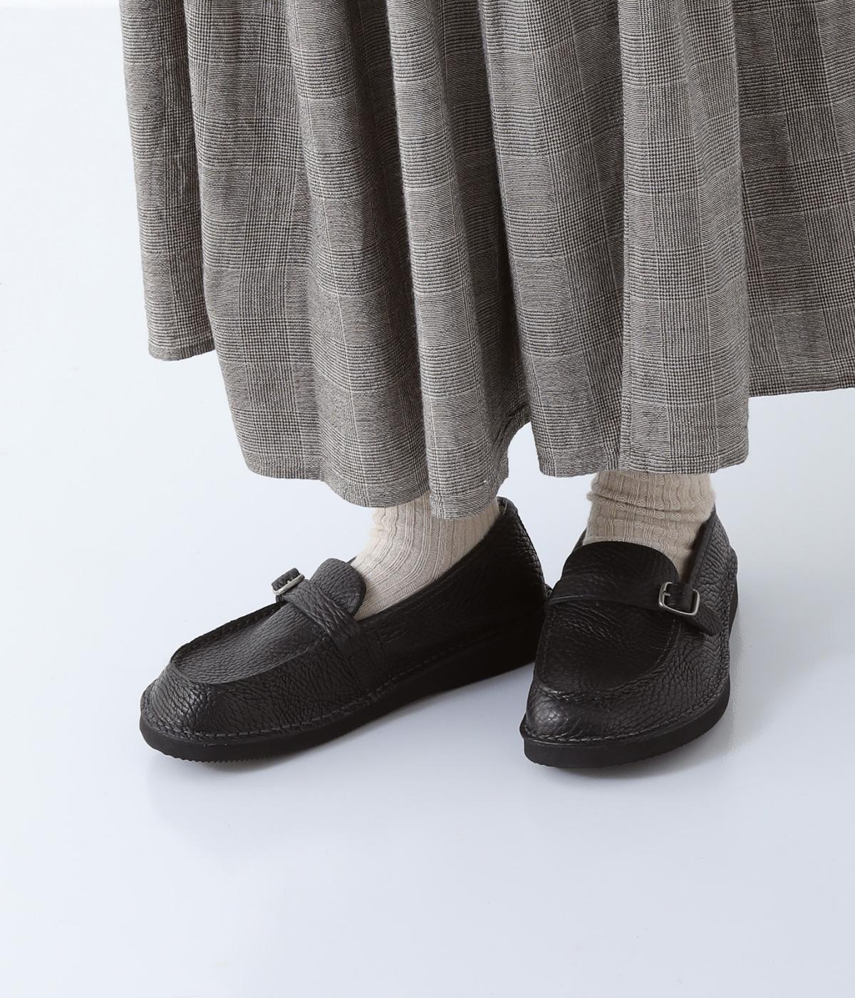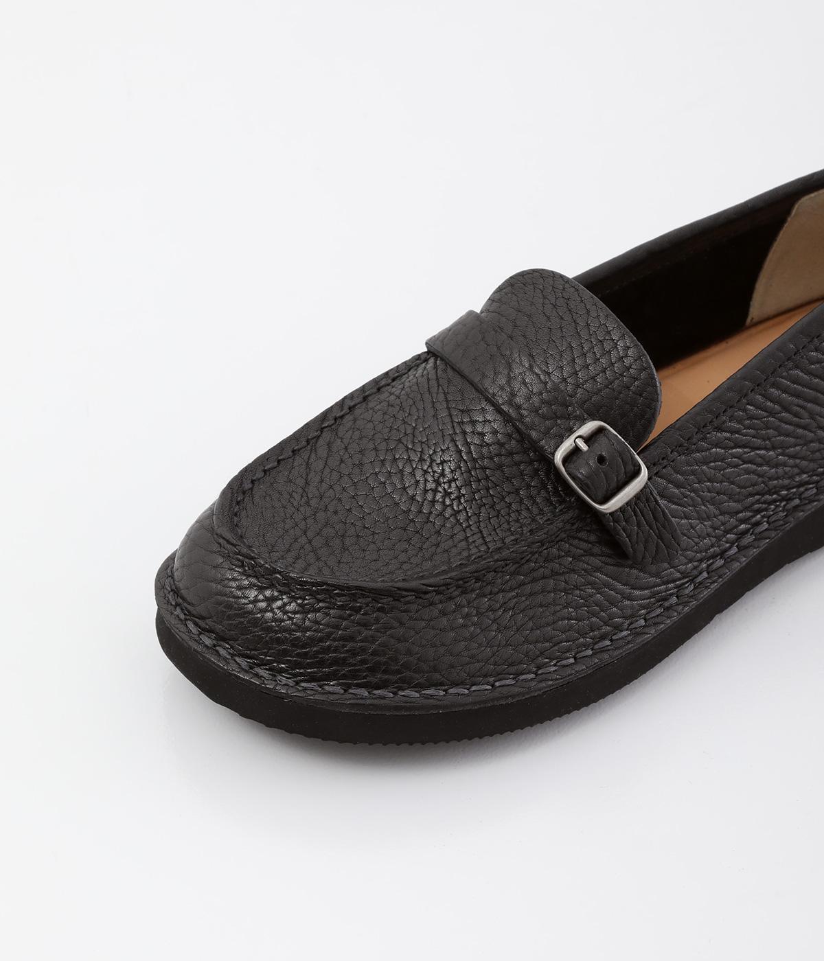 職人さんによって甲部分をU字に縫うモカシン縫いで仕上げられたローファー。つま先を広くした丸みのあるシルエットが愛らしい印象です。見た目よりも軽く、はき心地も◎。カジュアルにもきれいめにもなじむ、気軽にはける一足です。