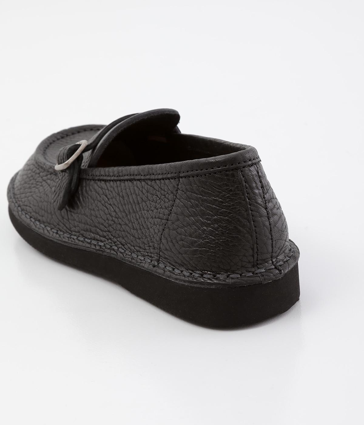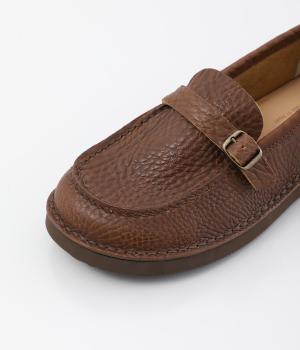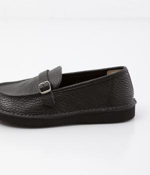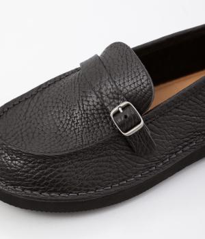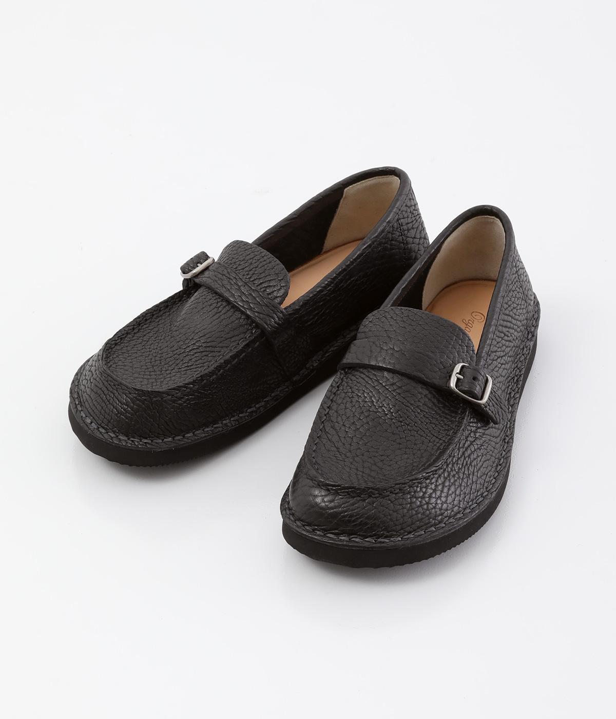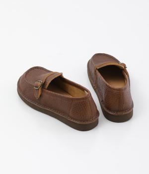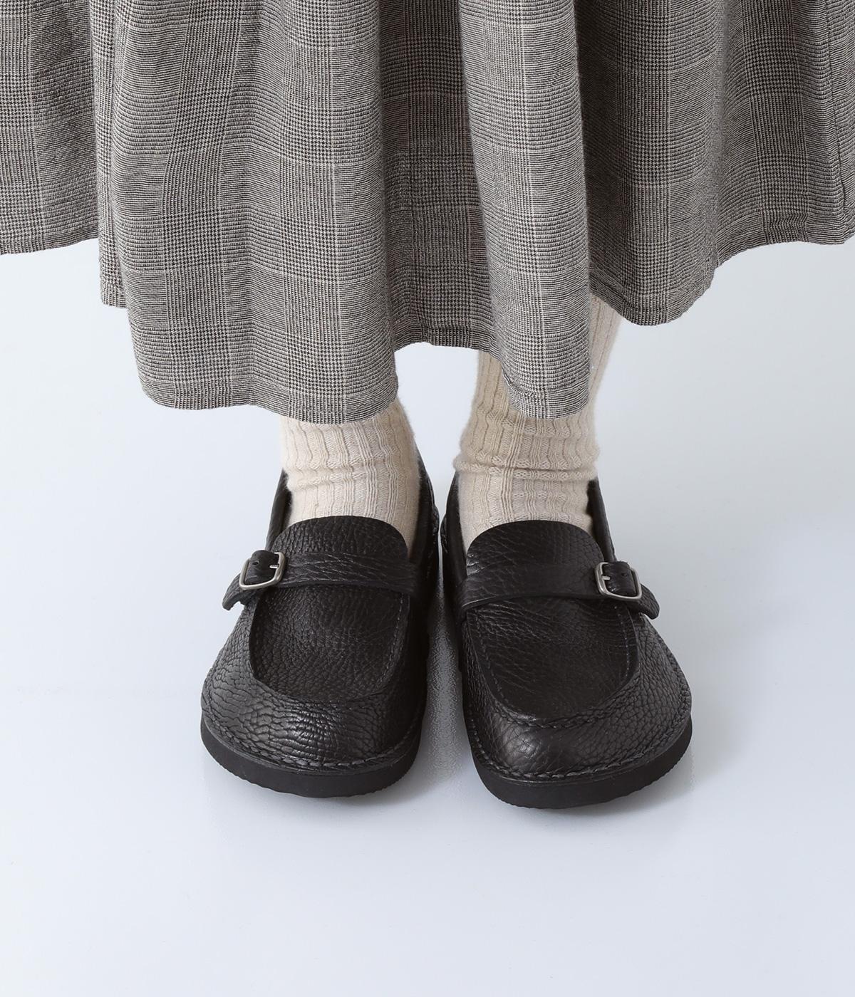 職人さんによって甲部分をU字に縫うモカシン縫いで仕上げられたローファー。つま先を広くした丸みのあるシルエットが愛らしい印象です。見た目よりも軽く、はき心地も◎。カジュアルにもきれいめにもなじむ、気軽にはける一足です。