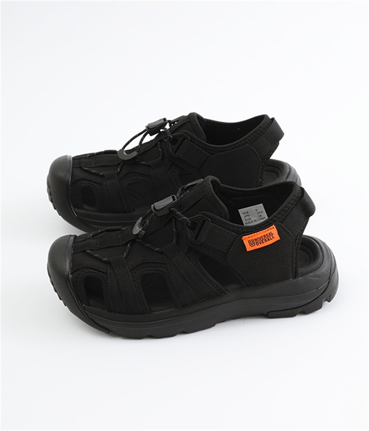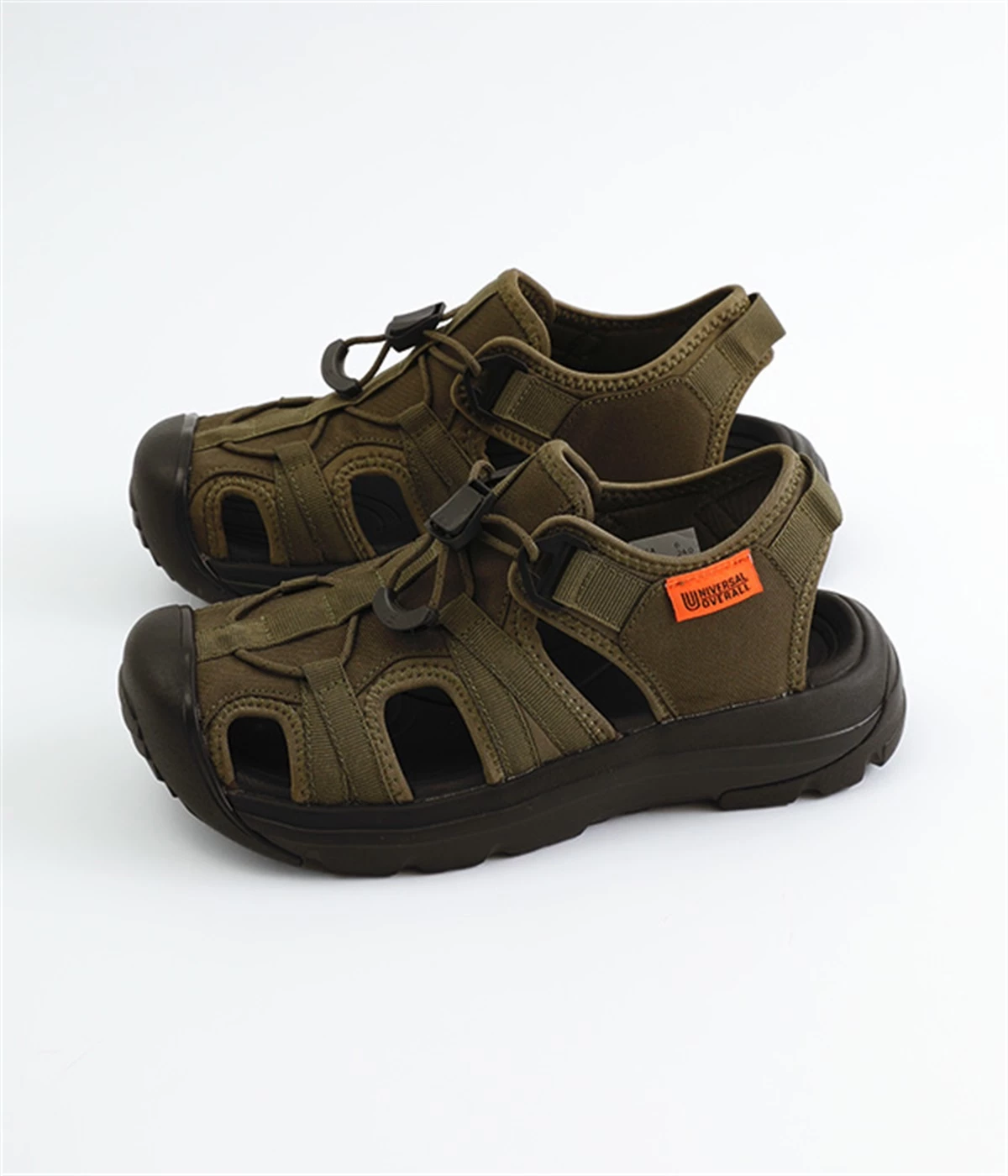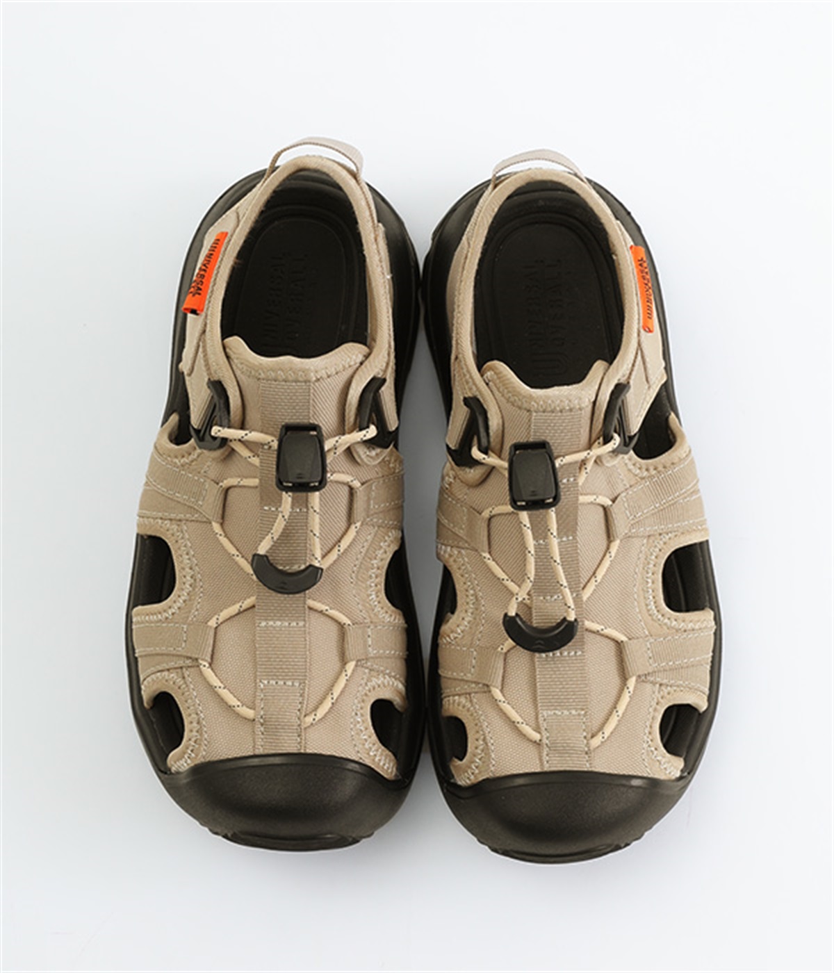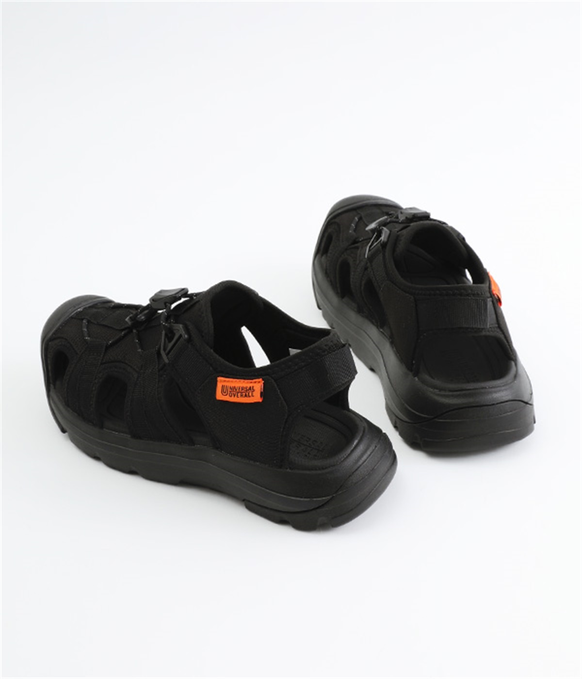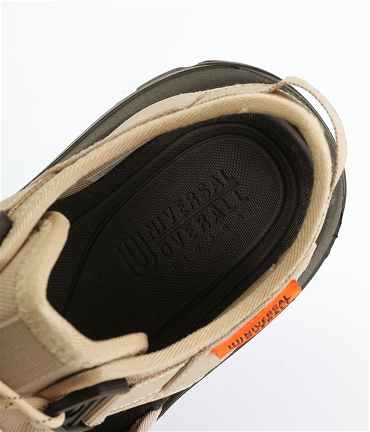 足の甲部分に付いたドローコードで、簡単にフィット感を調整できます。かかと部分のストラップが、足をしっかりとホールドして歩行中のズレを防ぎ、安定感もアップ。ストラップにはリングが付いて、スムーズな着脱をアシストします。