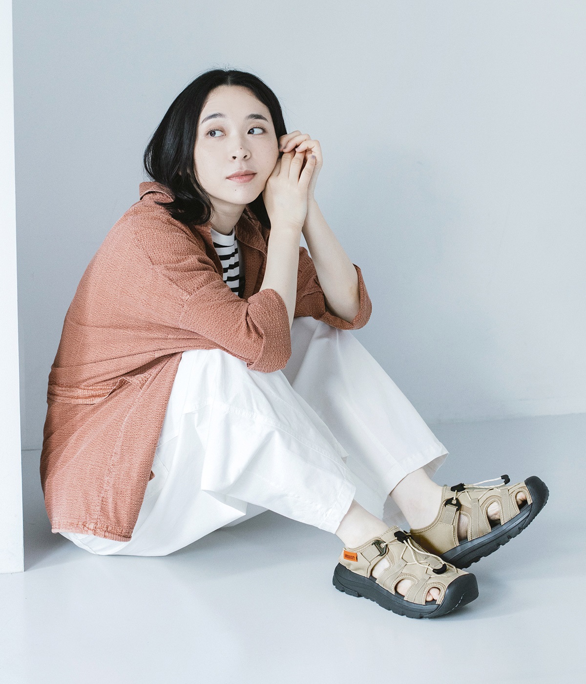 素足はもちろん、靴下と合わせればこなれ感のあるスタイルがお楽しみいただけます。