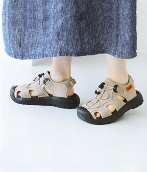しっかりとした厚みながらも、軽量のEVA素材のアウトソール。衝撃吸収性が高く、滑りにくいため長時間の移動にも適しています。