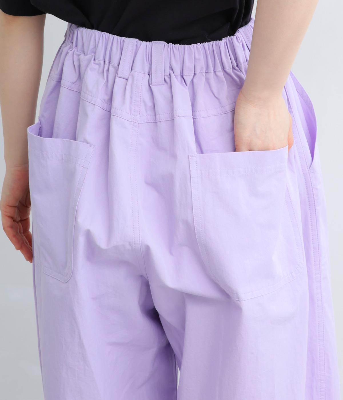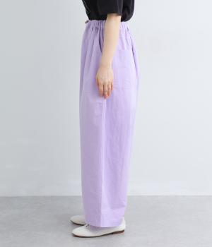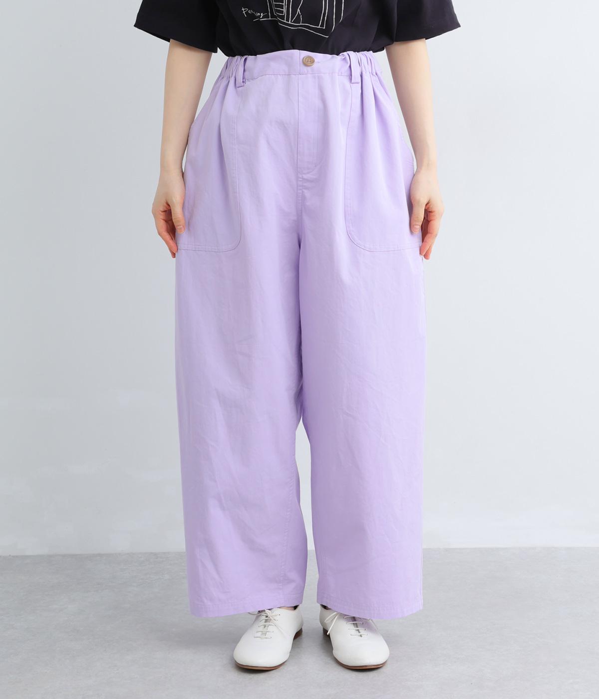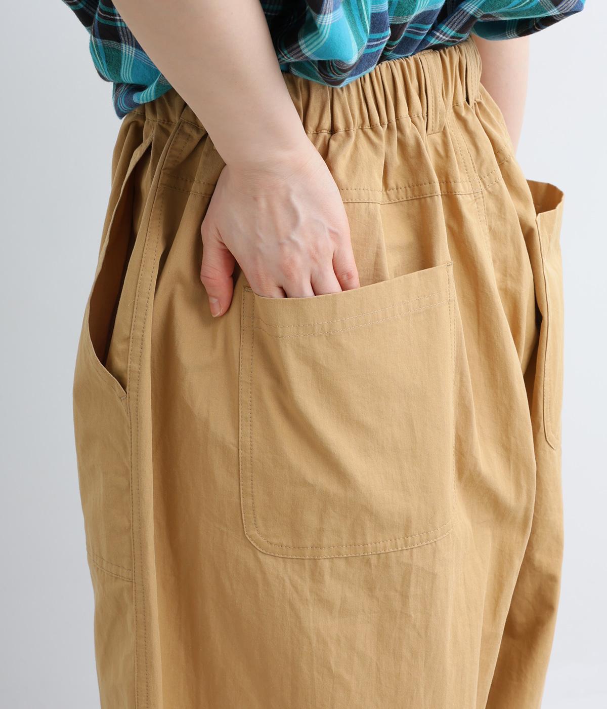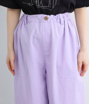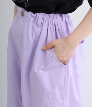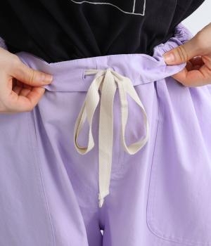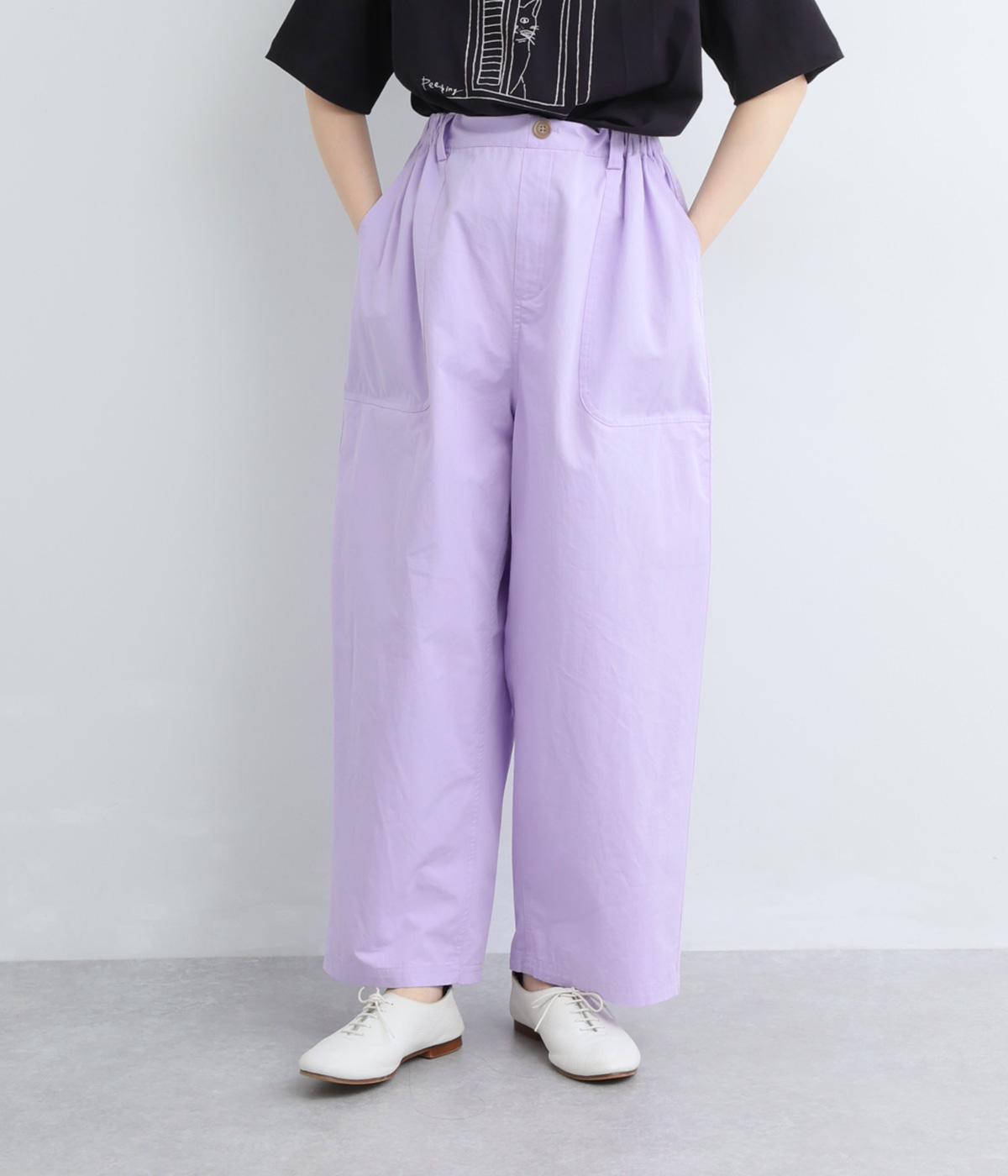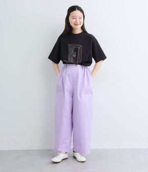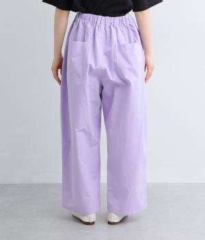 大きなL字型ポケットが目をひくベイカーパンツ風のデザイン。ほどよいワイドストレートが洗練されたシルエットを描きます。背面ゴムと紐仕様で、リラックスした穿き心地ときちんと感のある佇まいを両立させた一本です。