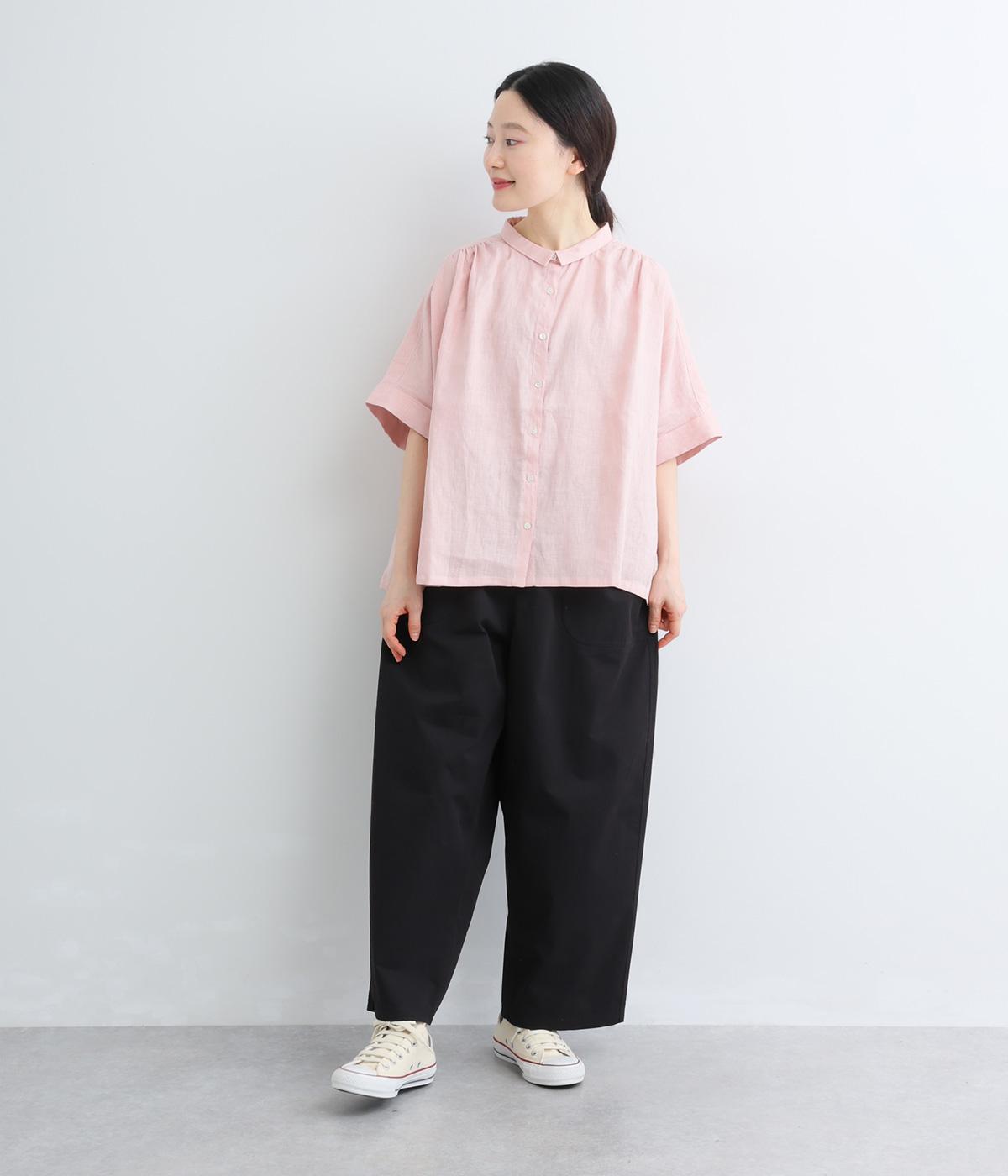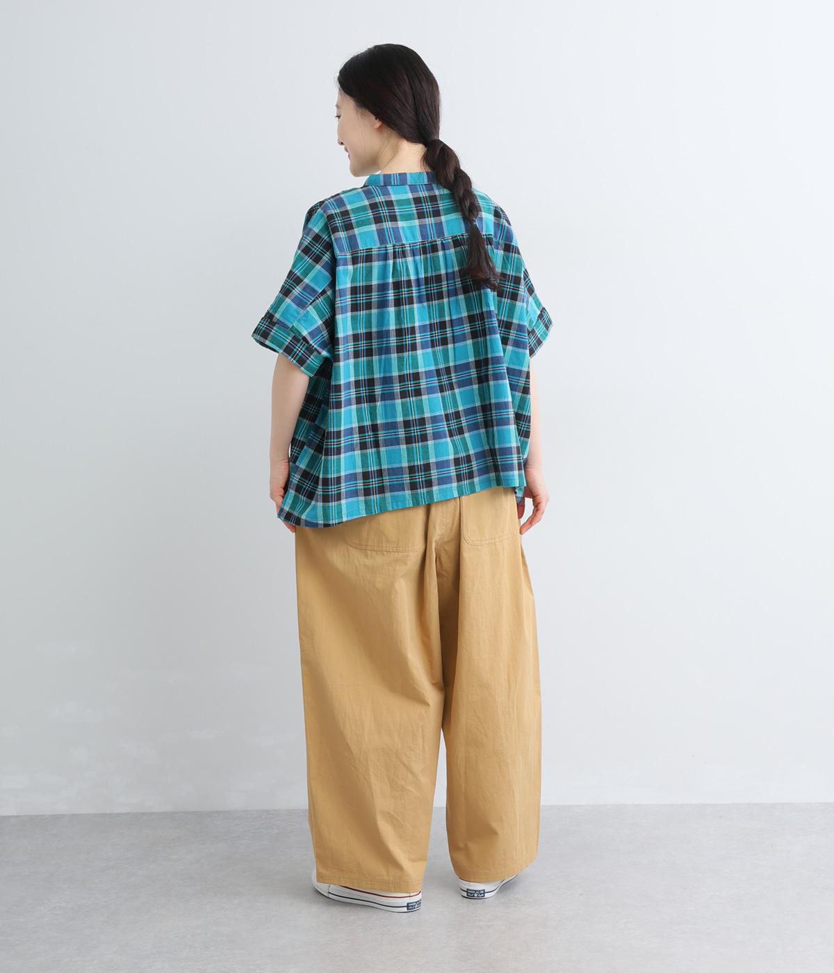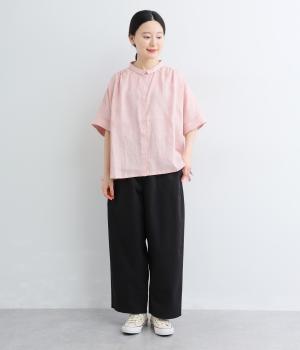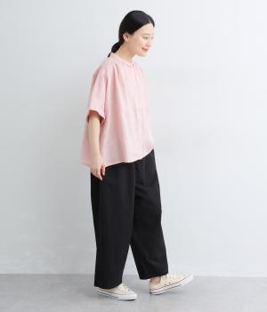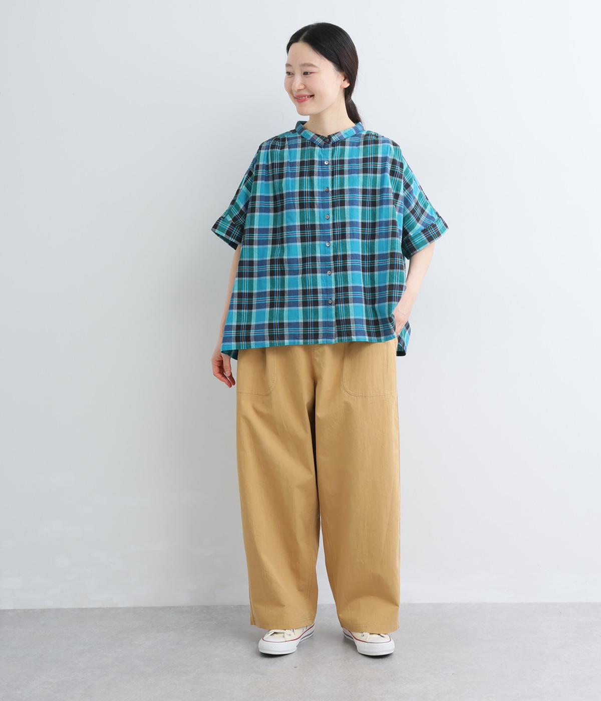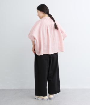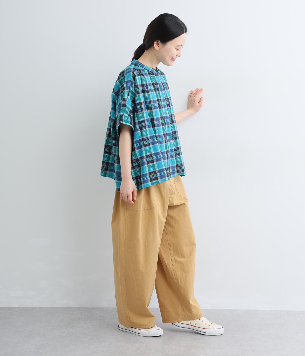大きなL字型ポケットが目をひくベイカーパンツ風のデザイン。ほどよいワイドストレートが洗練されたシルエットを描きます。背面ゴムと紐仕様で、リラックスした穿き心地ときちんと感のある佇まいを両立させた一本です。