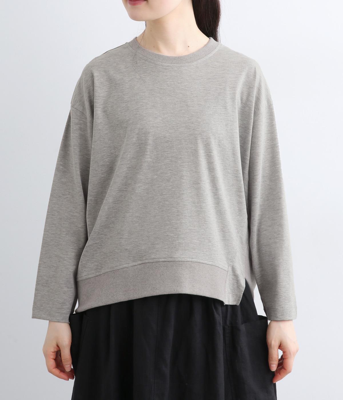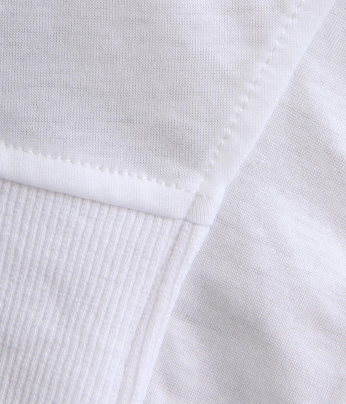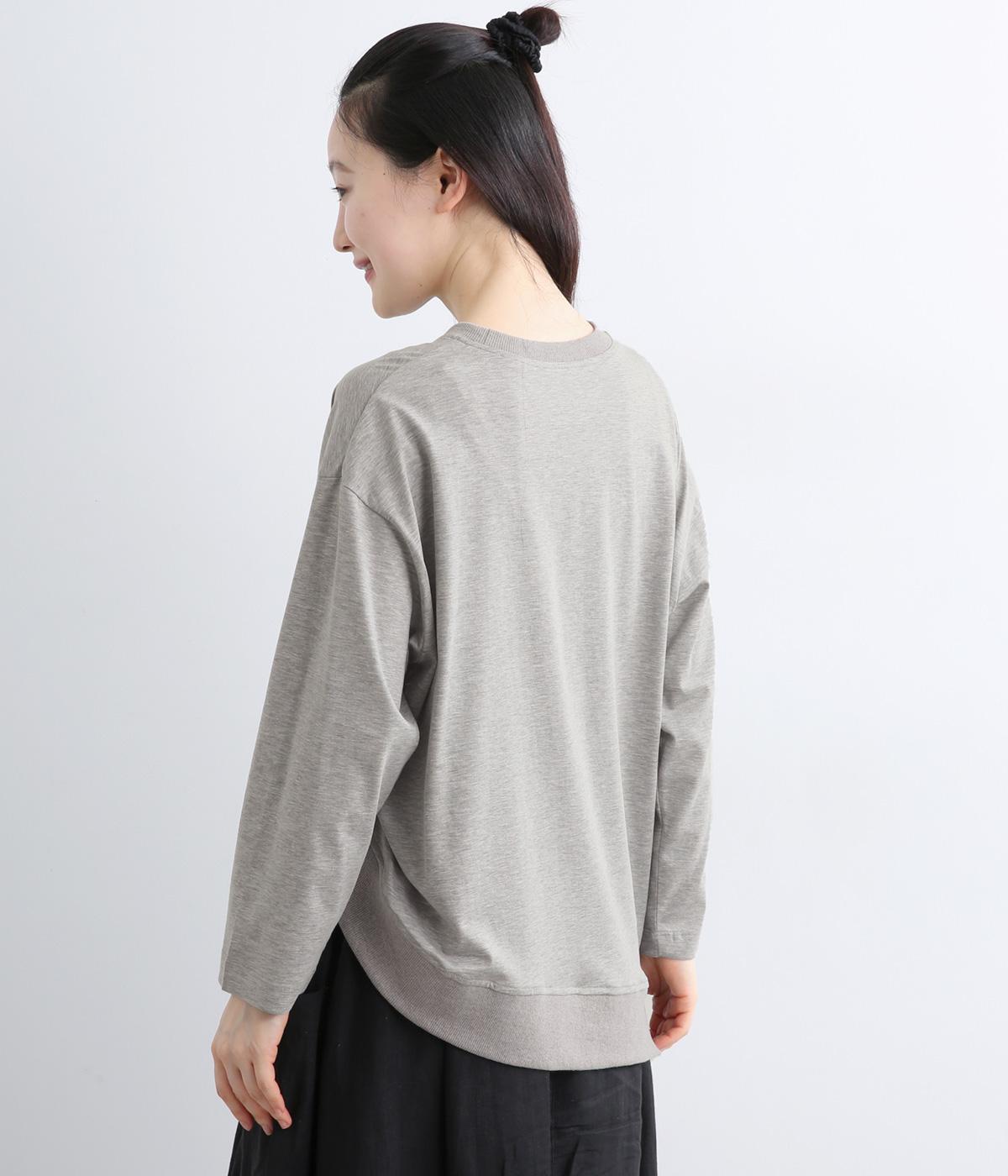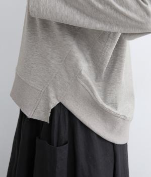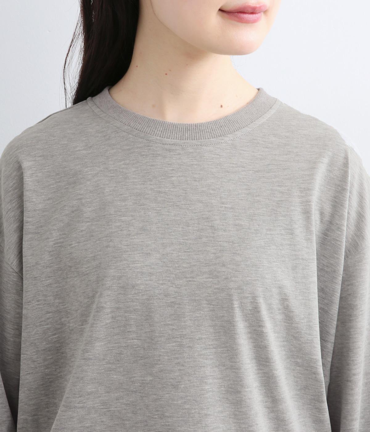 なめらかな表面感と自然な光沢をもつ、シルケット加工のコットン生地を使用。するするとした肌ざわりで心地よく、しなやかにフィットします。伸縮性もあり動きやすく、ほどよい厚みでロングシーズン快適に着られる素材です。