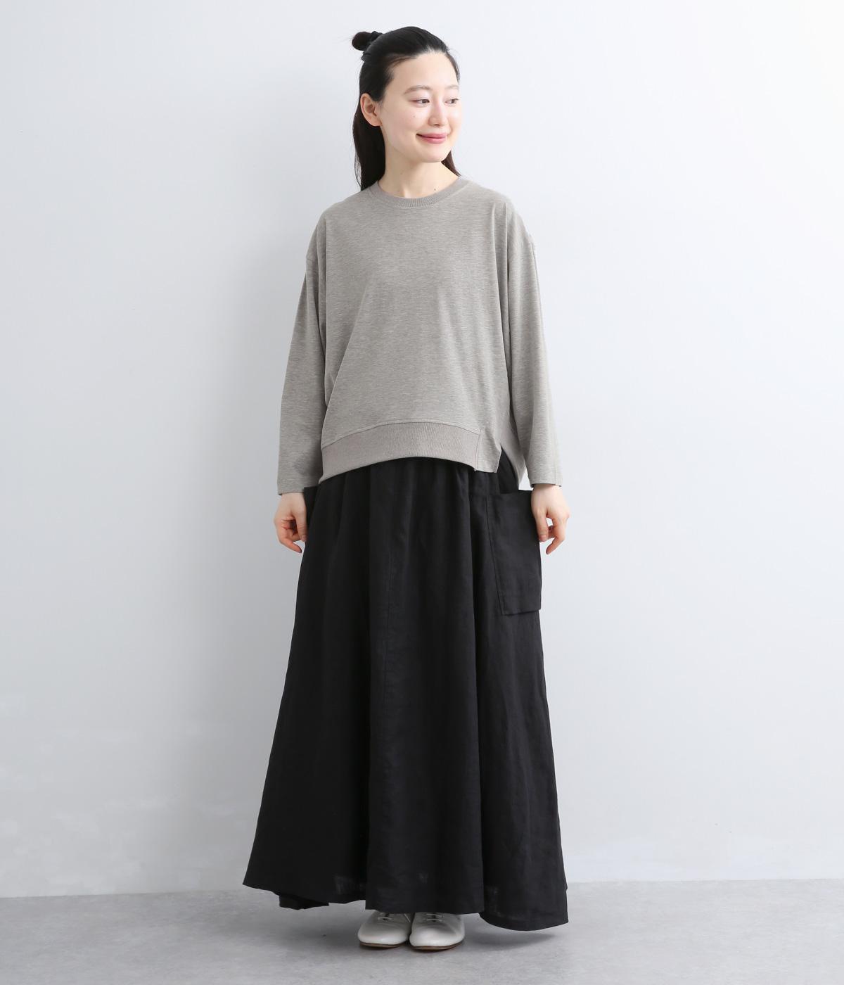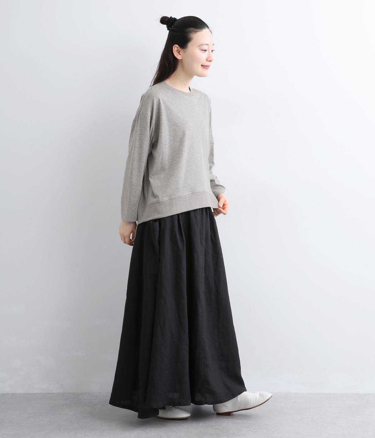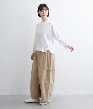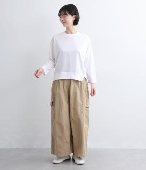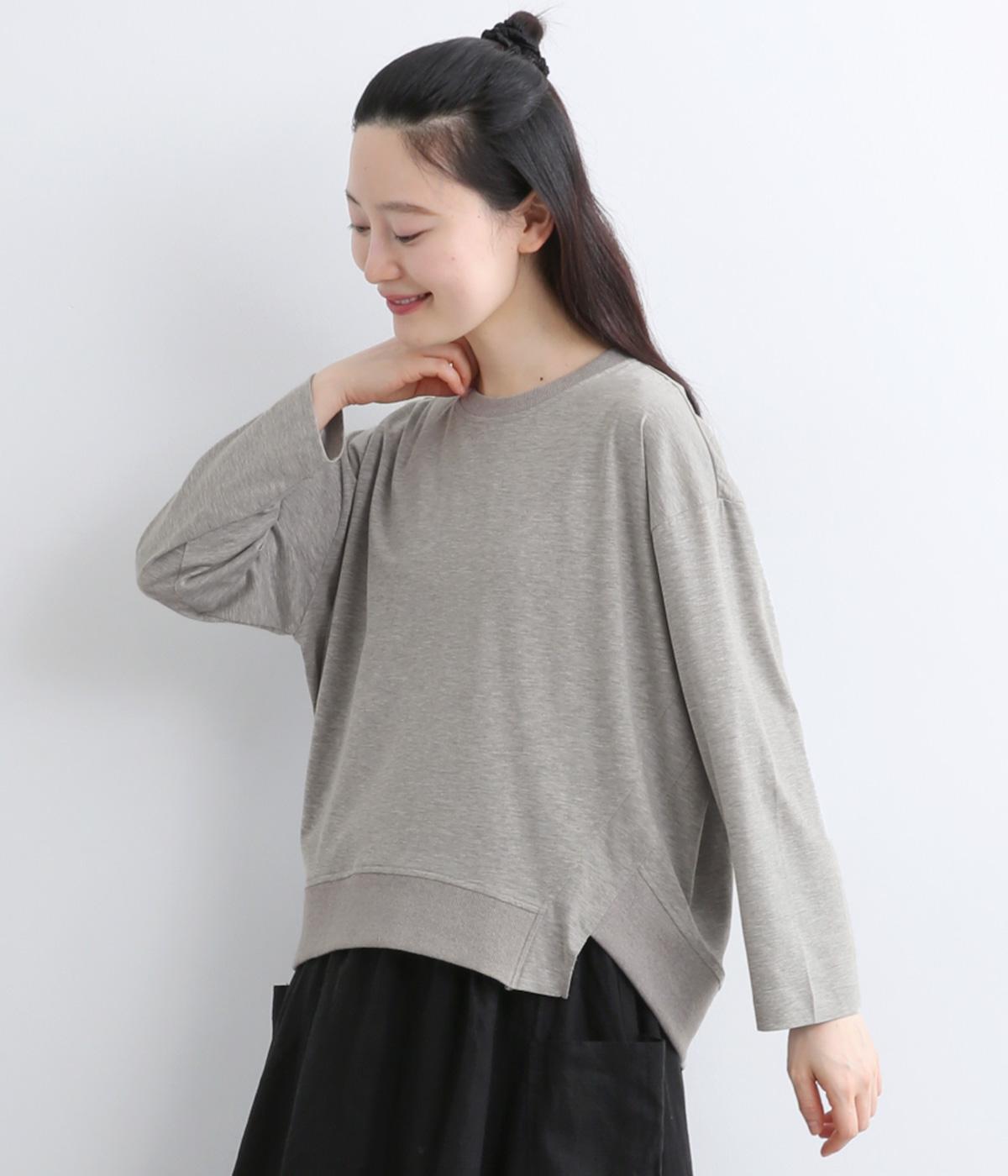 なめらかな表面感と自然な光沢をもつ、シルケット加工のコットン生地を使用。するするとした肌ざわりで心地よく、しなやかにフィットします。伸縮性もあり動きやすく、ほどよい厚みでロングシーズン快適に着られる素材です。