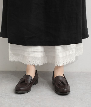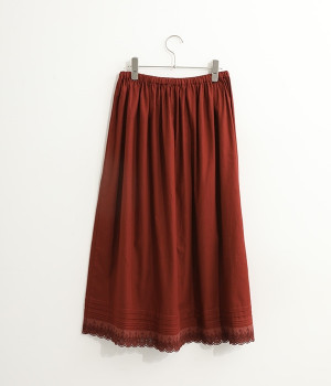 やわらかく繊細な肌当たりが心地良いコットン素材のペチスカートです。裾にはタックとスカラップレースをあしらい、可憐なデコレーションで華やかな見た目に。フィット感を高めるウエストゴムは細幅にし、シルエットも広がりをおさえてスカートやワンピースのインでも着ぶくれしにくいのが特徴。お手持ちのボトムの裾からちらりとレースディテールをのぞかせれば、着慣れたアイテムが新品のように新鮮に映ります。