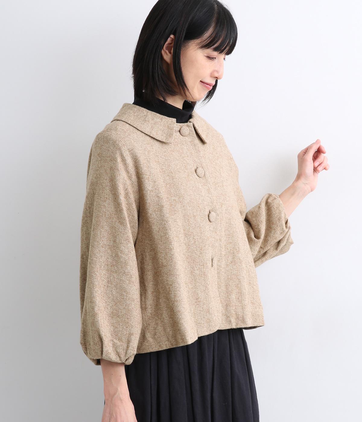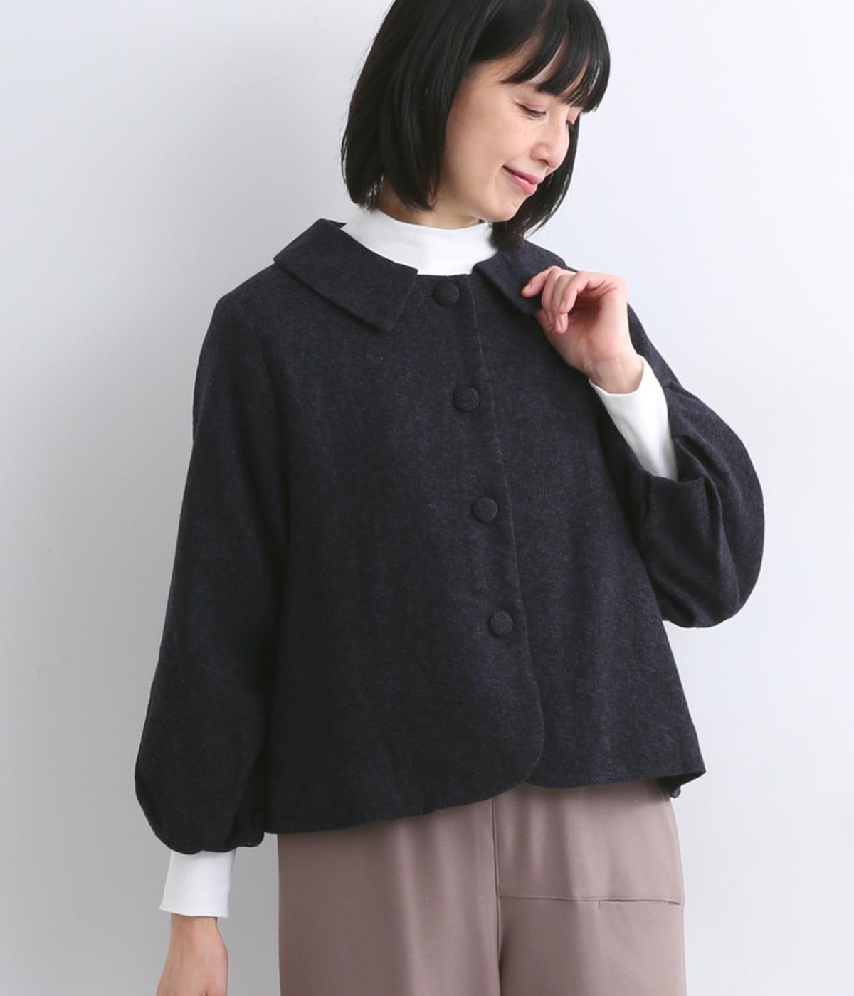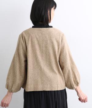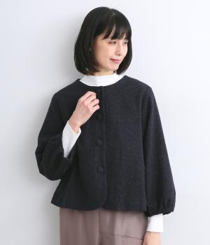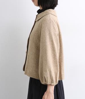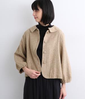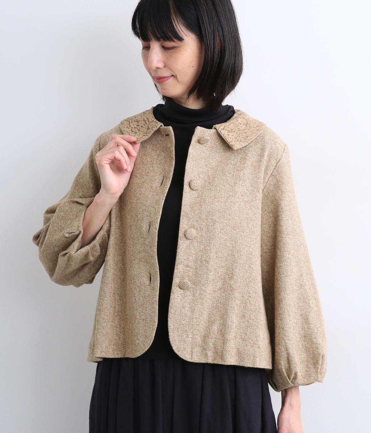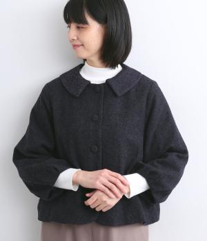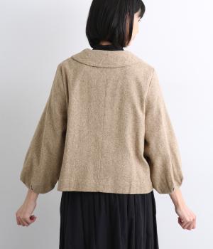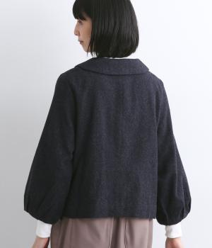 短めに仕上げたバルーン袖が印象的なジャケット。大きめのくるみボタンがかわいらしさを添えます。襟は取り外し可能で、レースをあしらった面に付け替えることができ、その日の気分やお好みに合わせて雰囲気を変えられます。