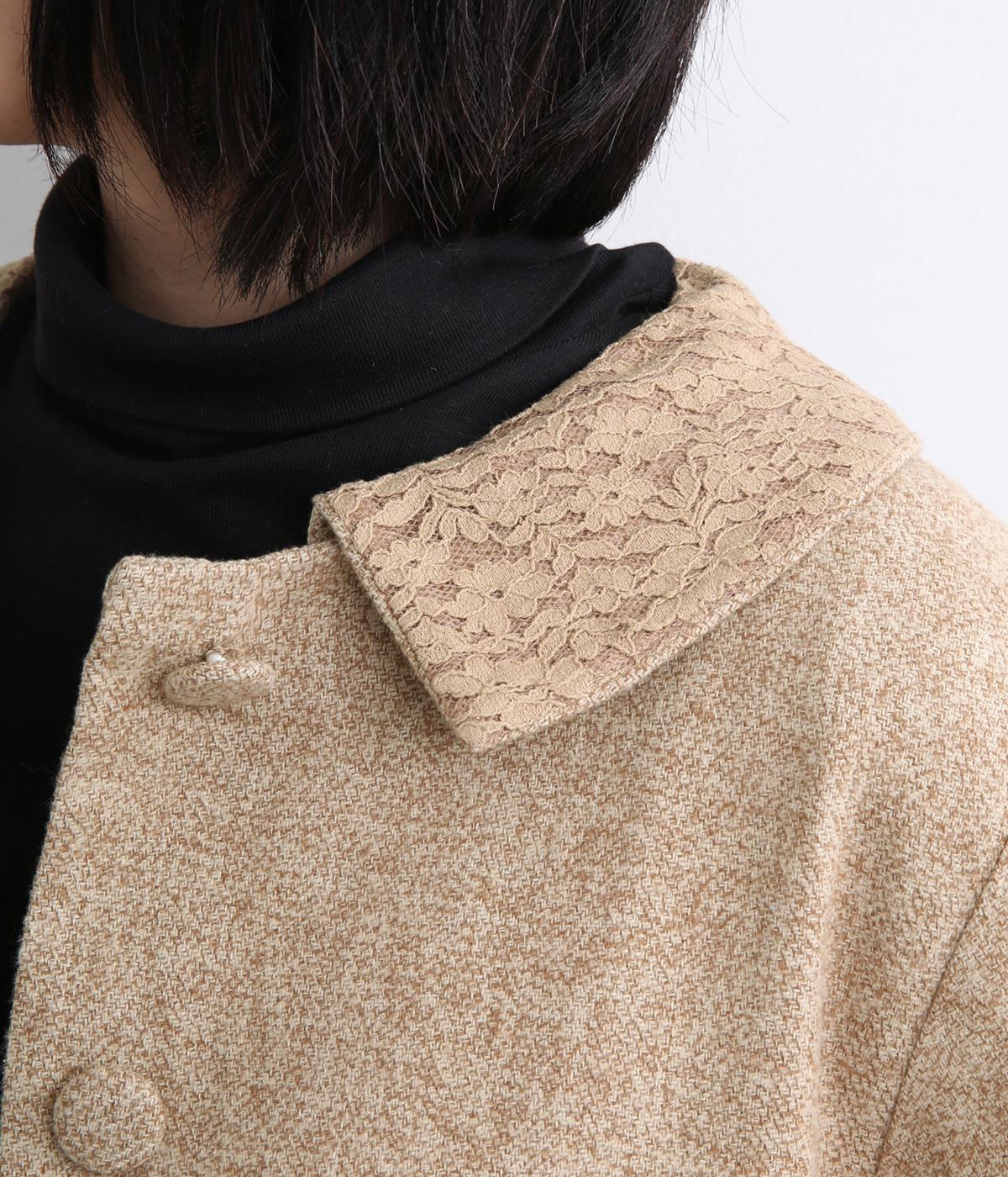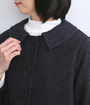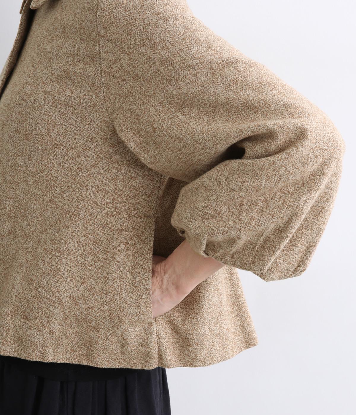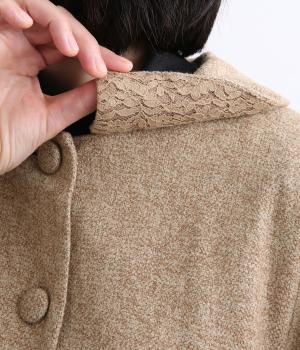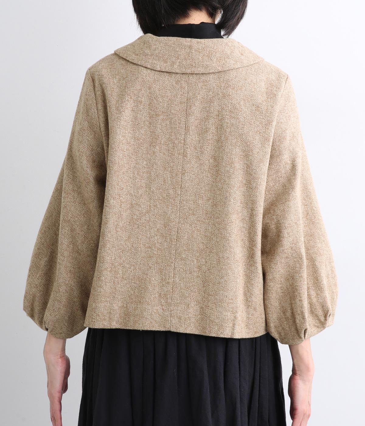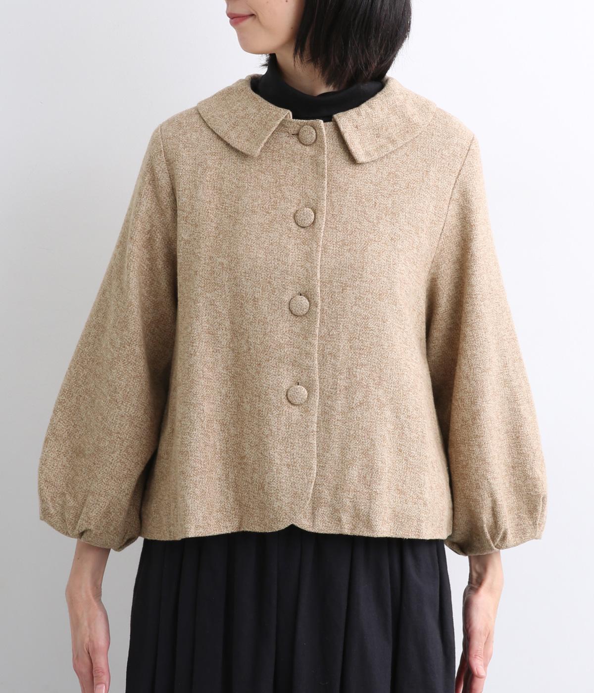 短めに仕上げたバルーン袖が印象的なジャケット。大きめのくるみボタンがかわいらしさを添えます。襟は取り外し可能で、レースをあしらった面に付け替えることができ、その日の気分やお好みに合わせて雰囲気を変えられます。