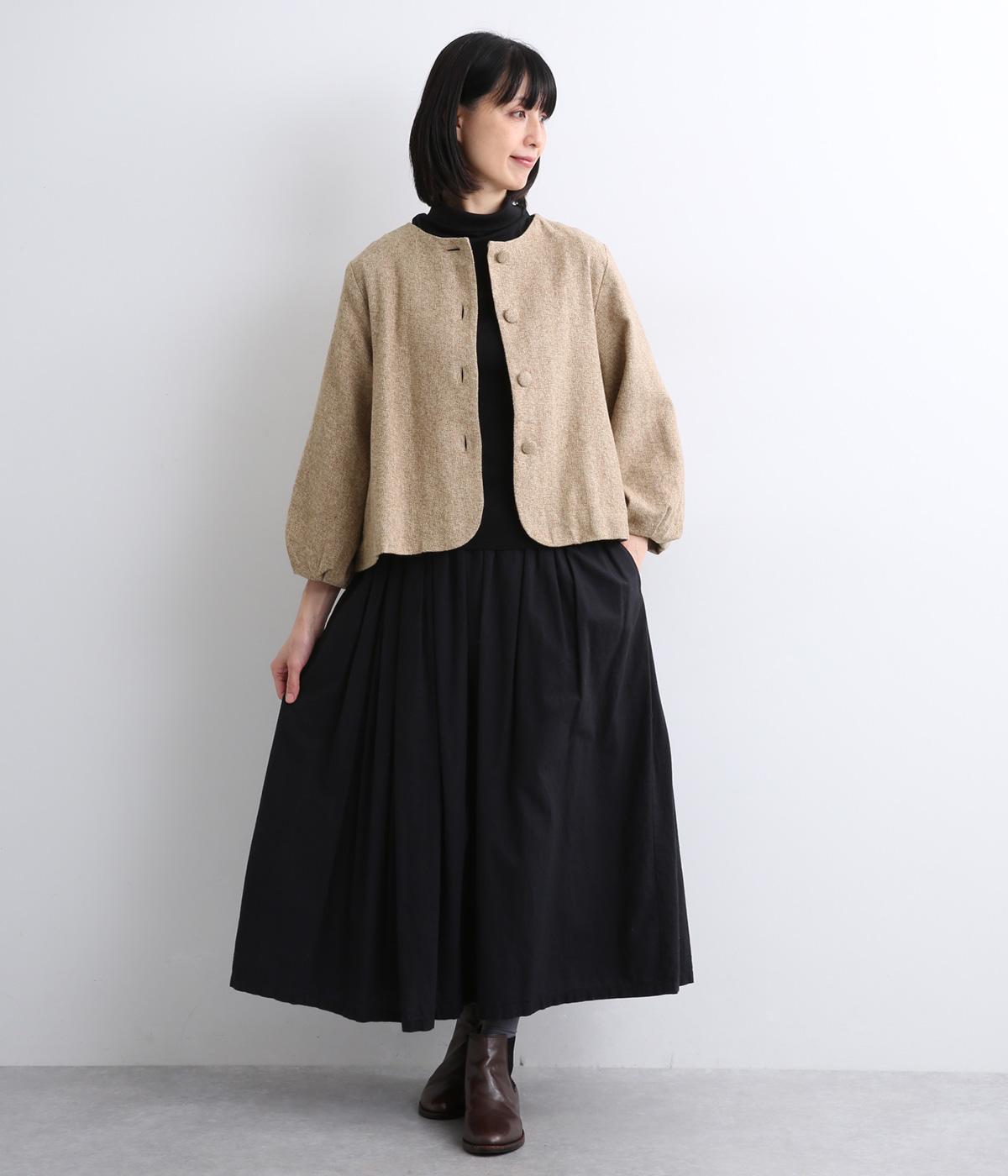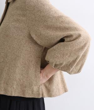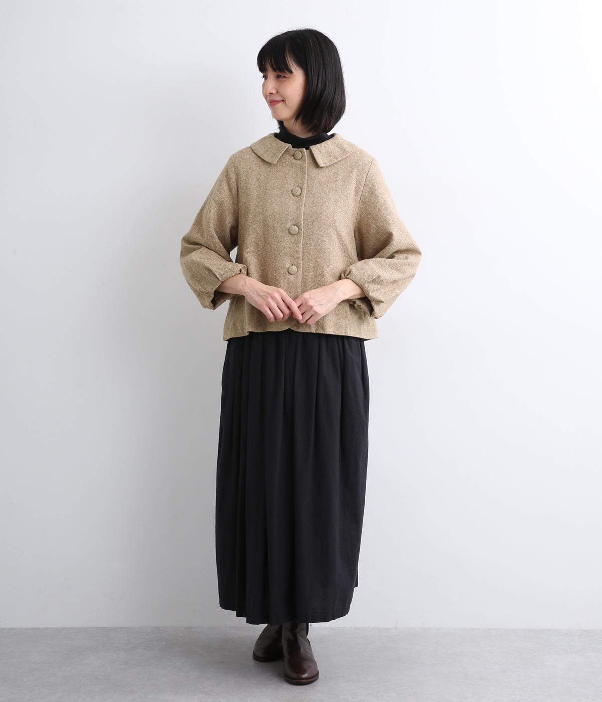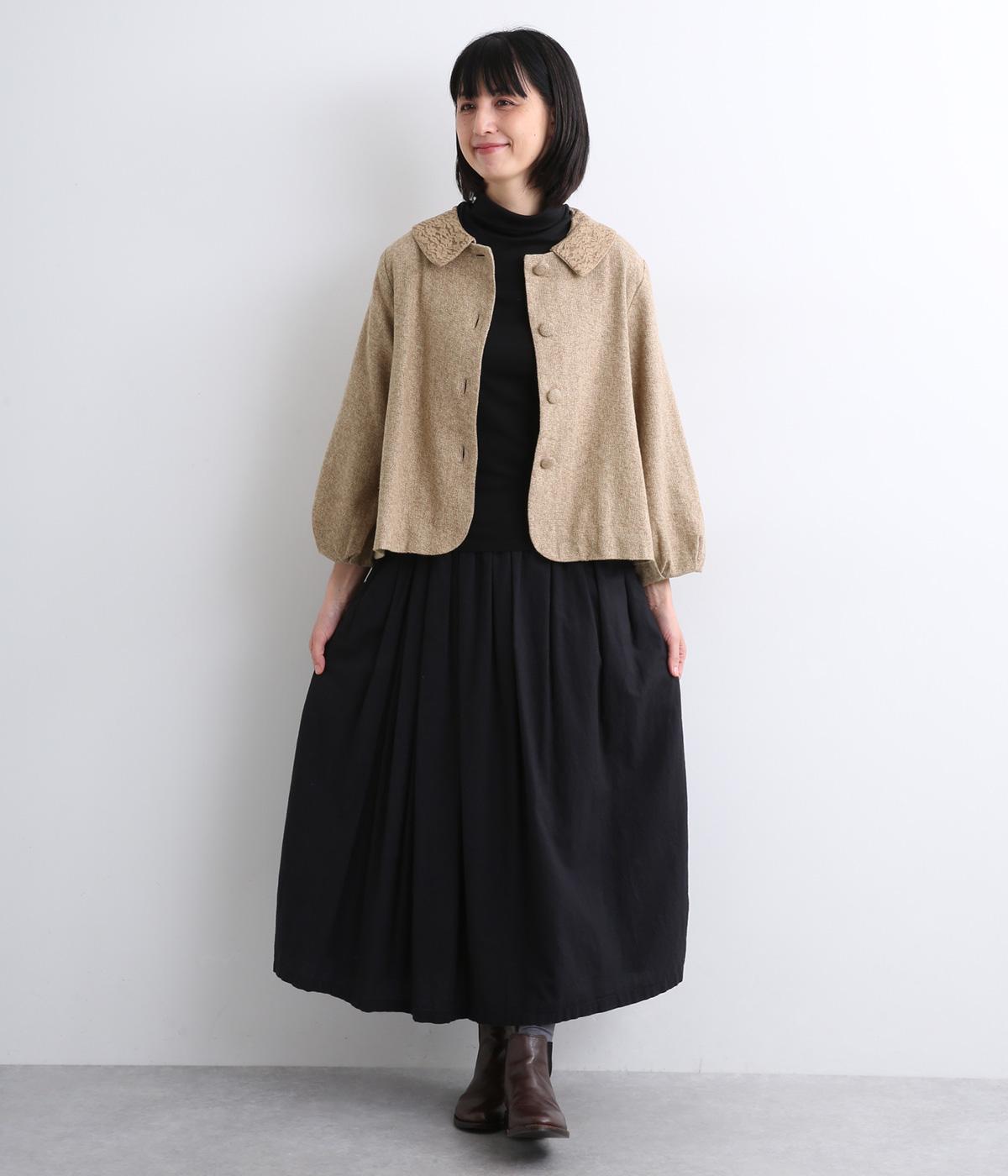 やわらかいコットン素材で起毛感のあるあたたかい雰囲気のツイード生地です。リラックス感がありながら、おでかけにもぴったりな素材感に仕立てました。