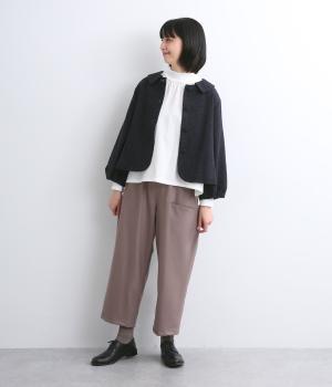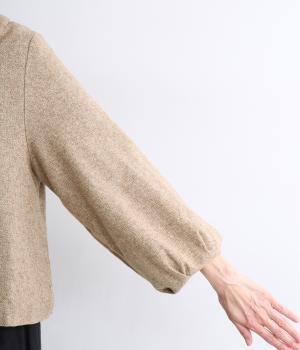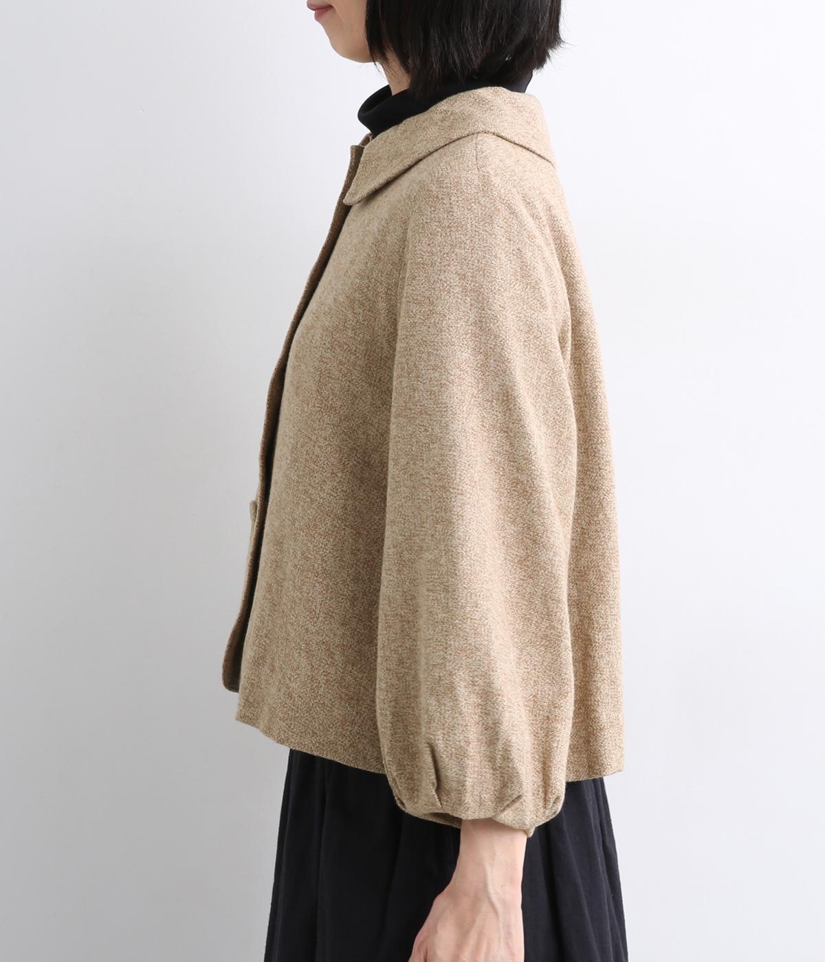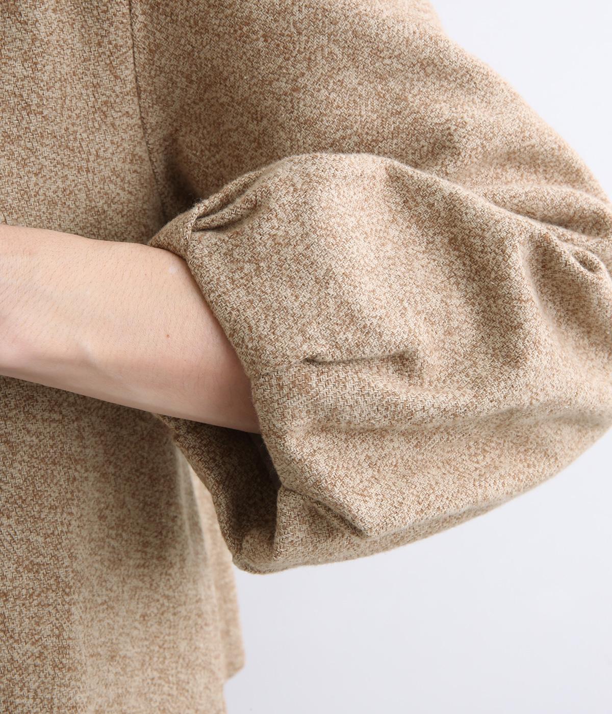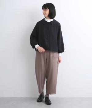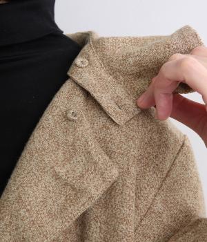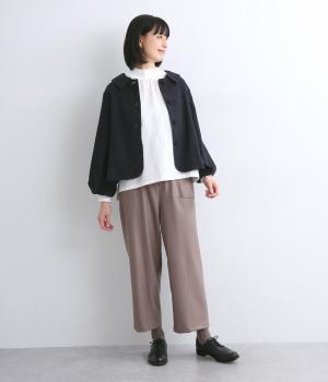 やわらかいコットン素材で起毛感のあるあたたかい雰囲気のツイード生地です。リラックス感がありながら、おでかけにもぴったりな素材感に仕立てました。