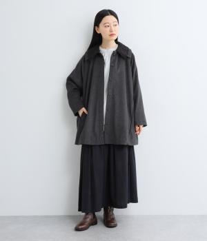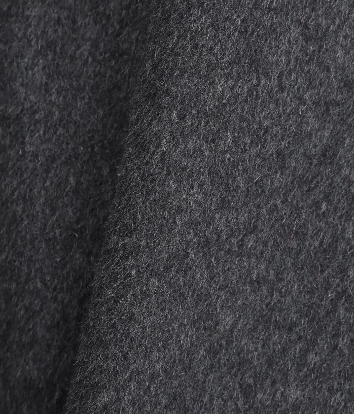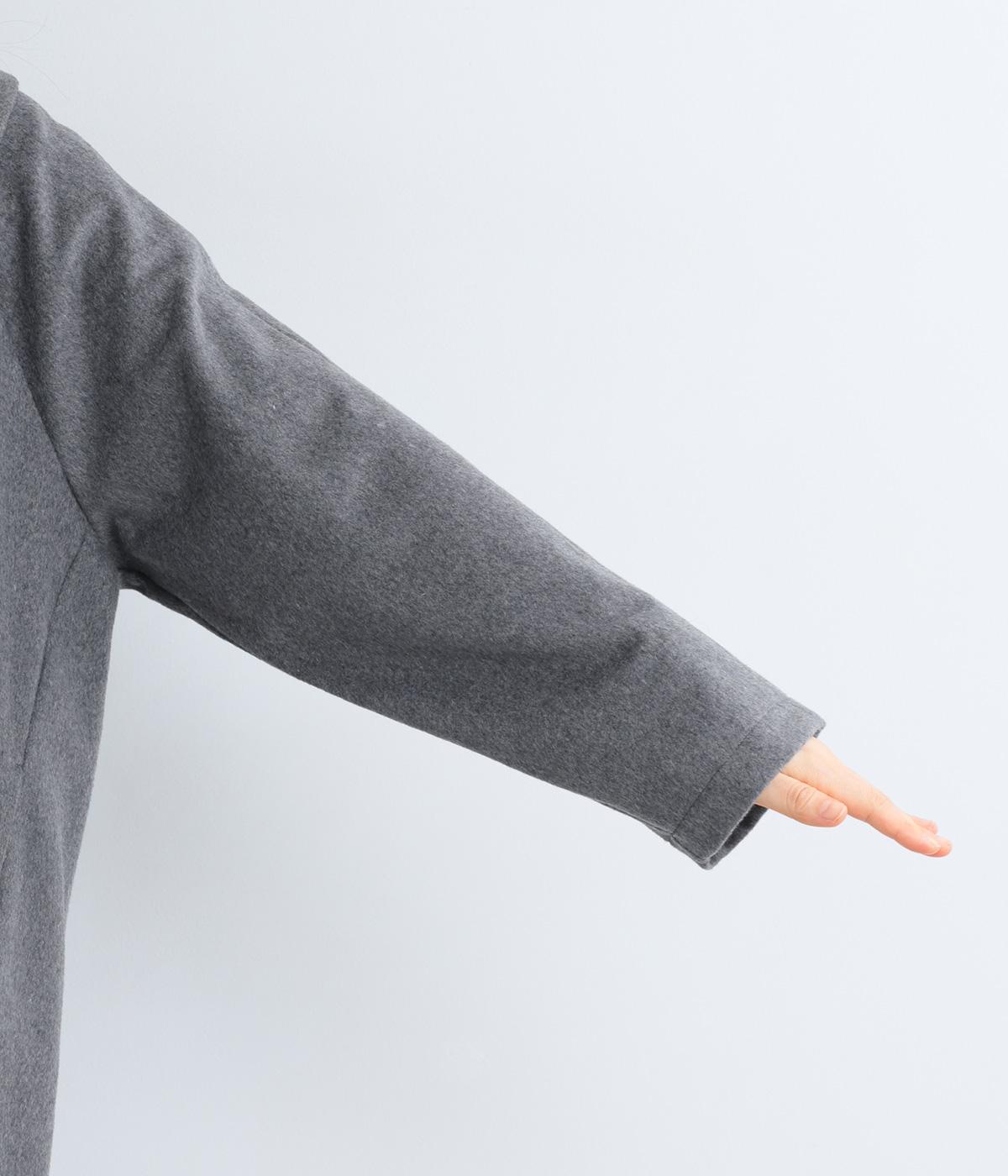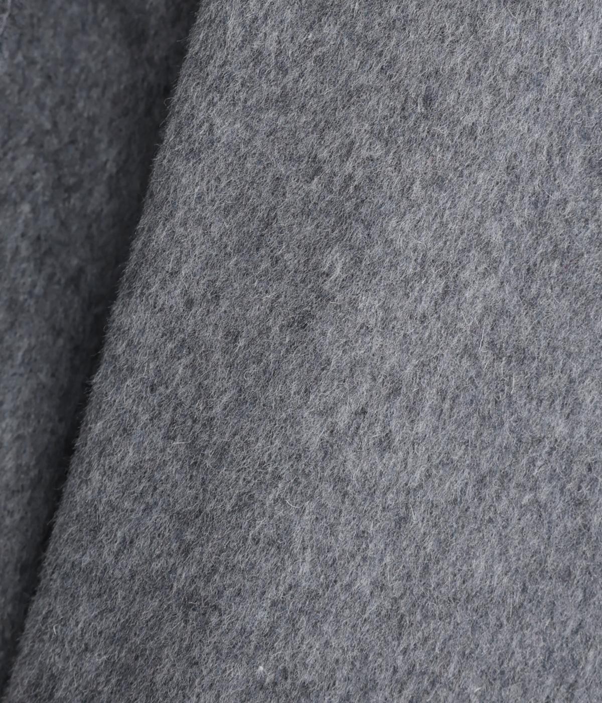 なめらかな肌ざわりで、動きにあわせてほのかな光沢を放つシャギー生地。765gと軽やかに仕立て、襟にはあたりのやわらかなレースを重ねました。裏地付きで着やすさと保温性も確保しました。