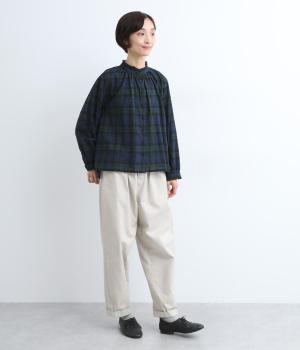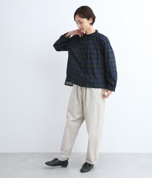 薄手で着心地も軽く、通気性良く快適なコットンクロスを使用。色落ちしにくく深みのある風合いが魅力の先染め仕上げにドット刺しゅうをほどこしました。さまざまなチェック柄のアソート展開です。