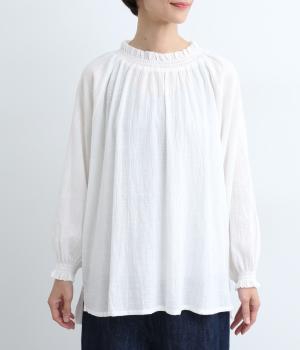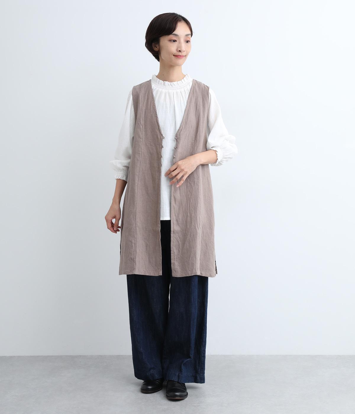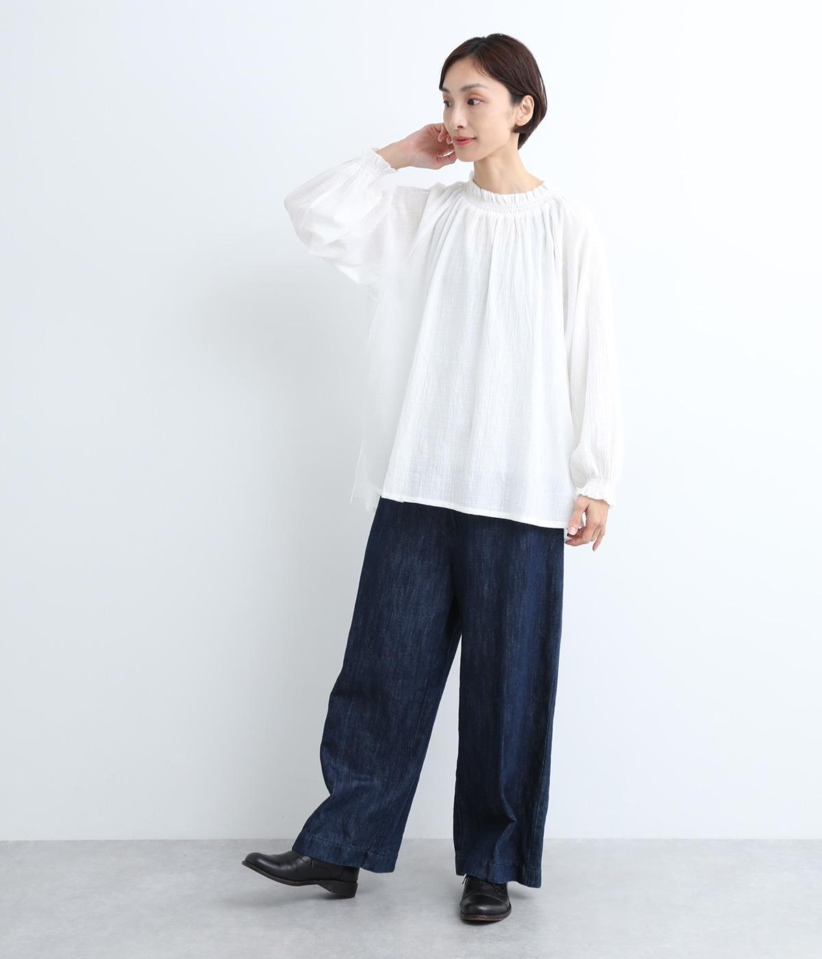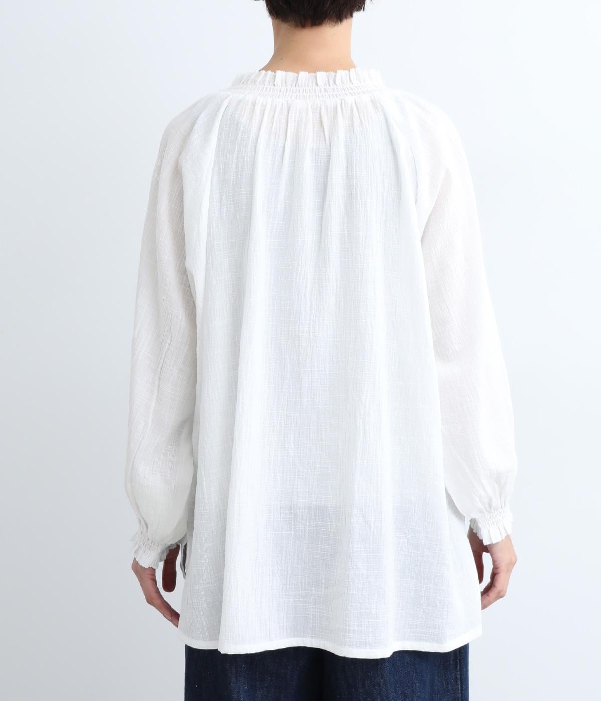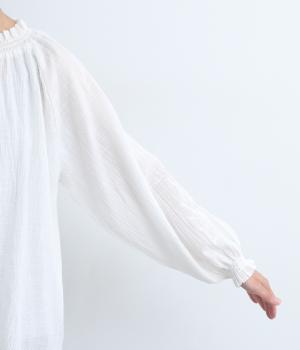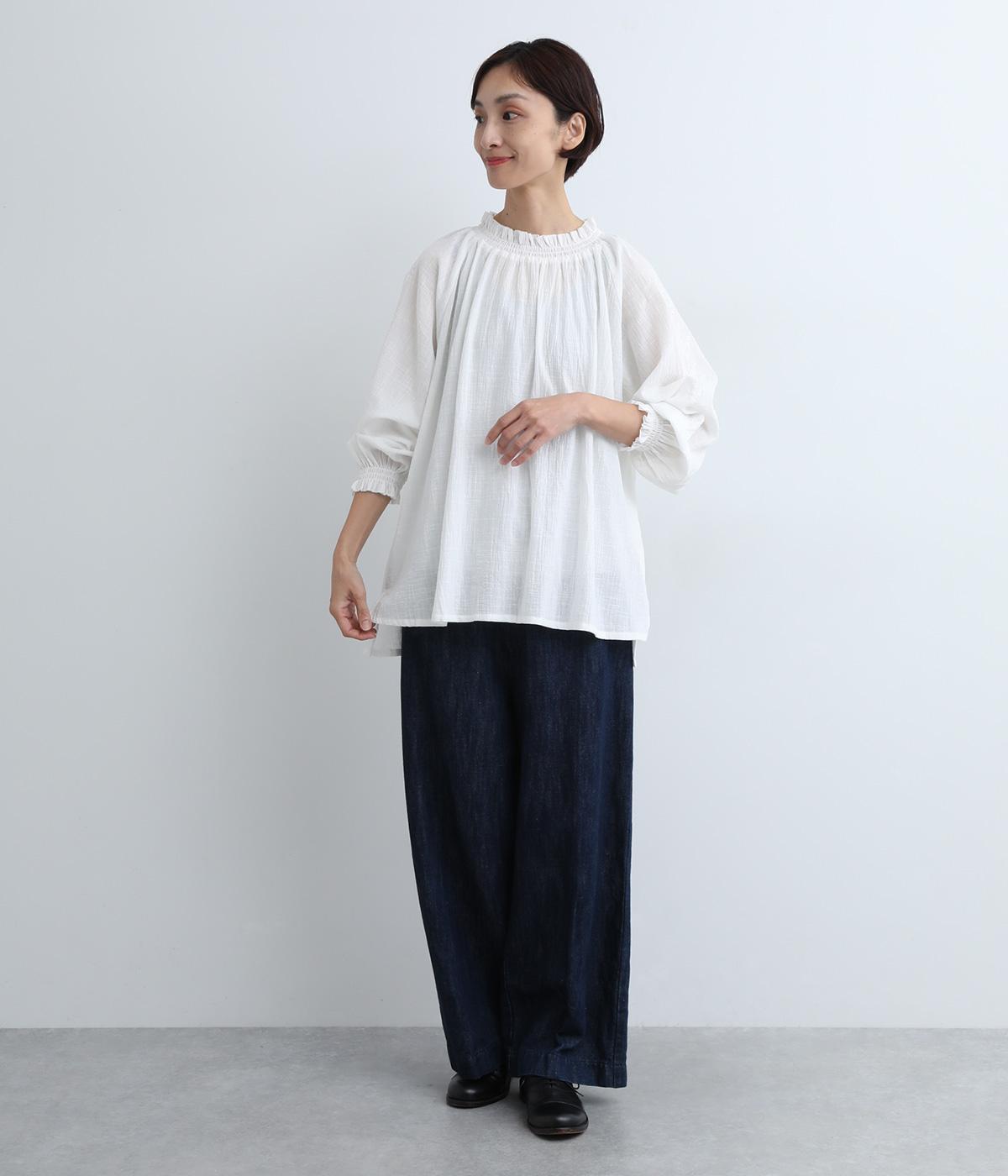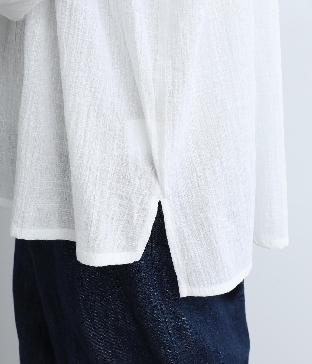 ナチュラルな風合いをより豊かに惹き立てた、ヴィンテージ感が特徴的なコットンスラブのガーゼ生地を使用しています。薄手で繊細さがあり、通気性もよく快適に着用できる生地感です。