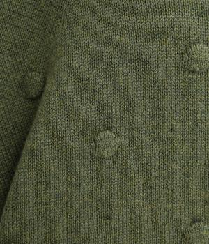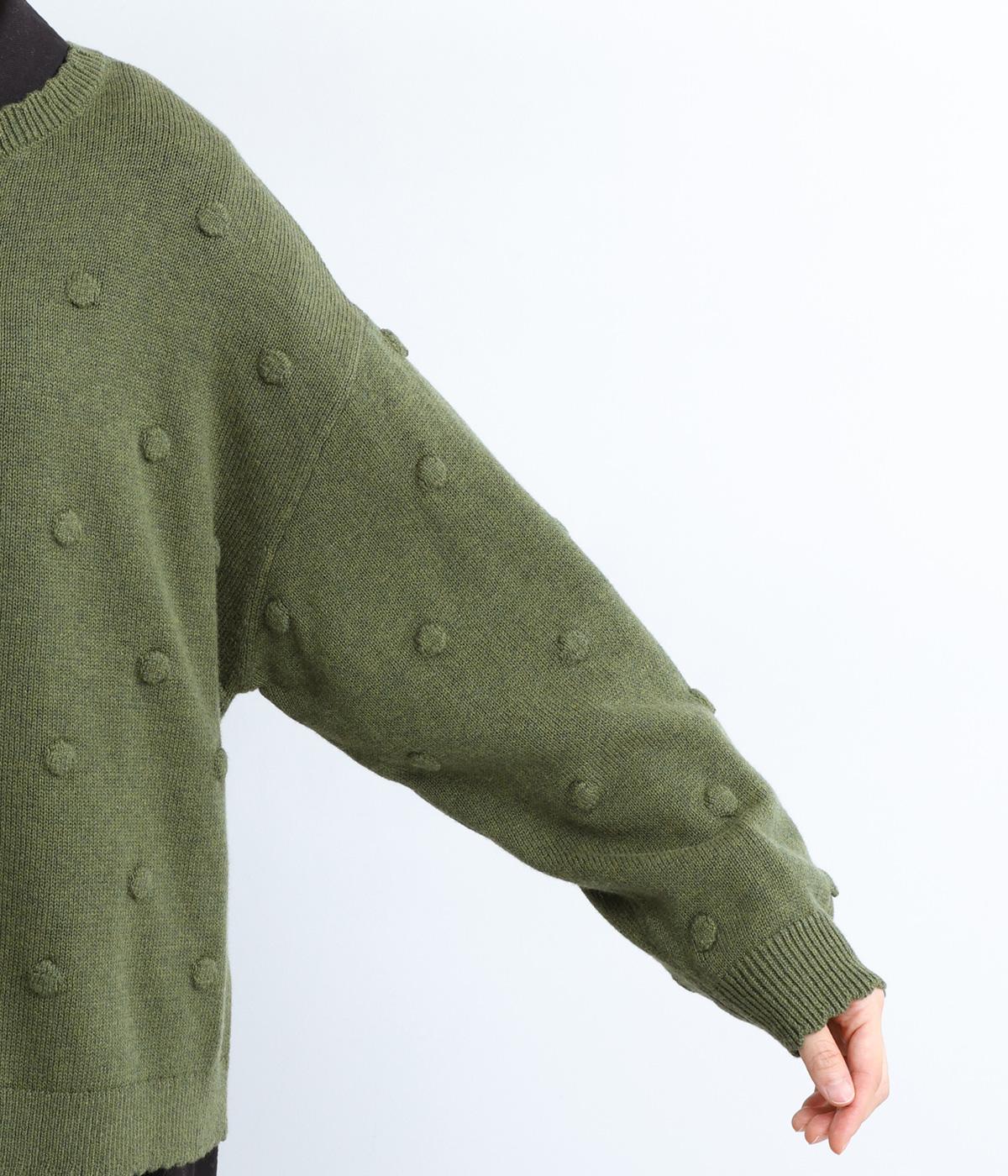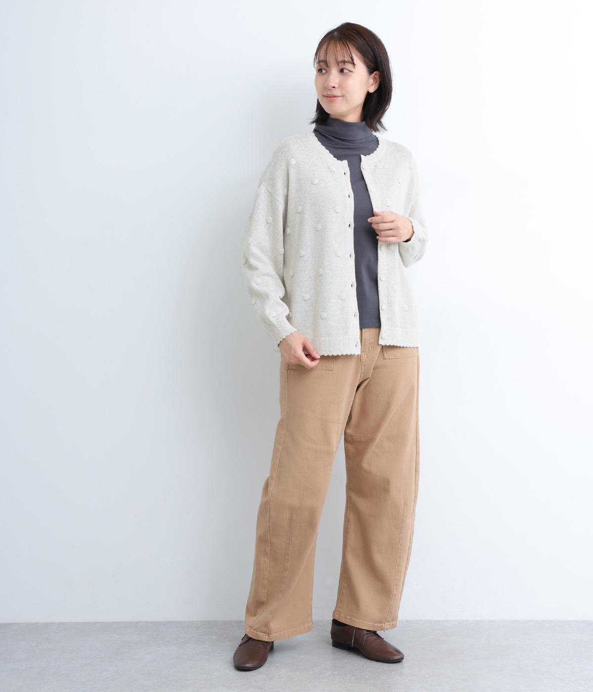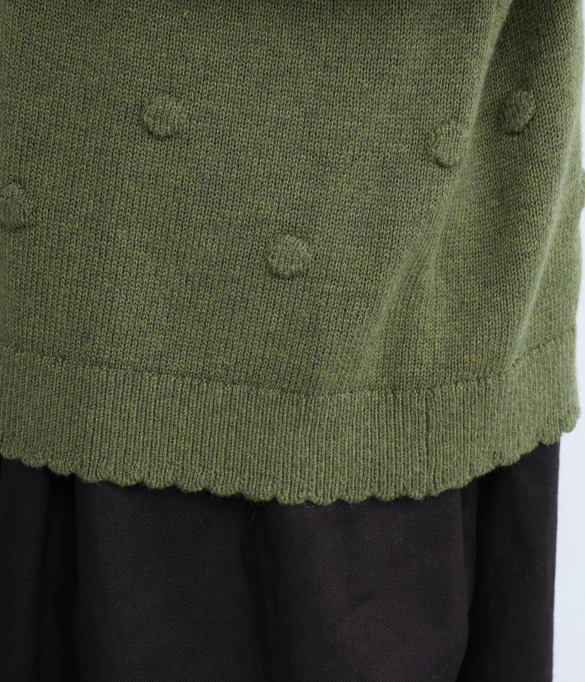 あたたかみがありながらも、やわらかく軽やかな肌ざわりのコットンウール。伸縮性があり、さらっと着やすいのが特徴です。ポコポコと立体的のあるドット柄をほどこしました。