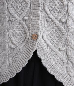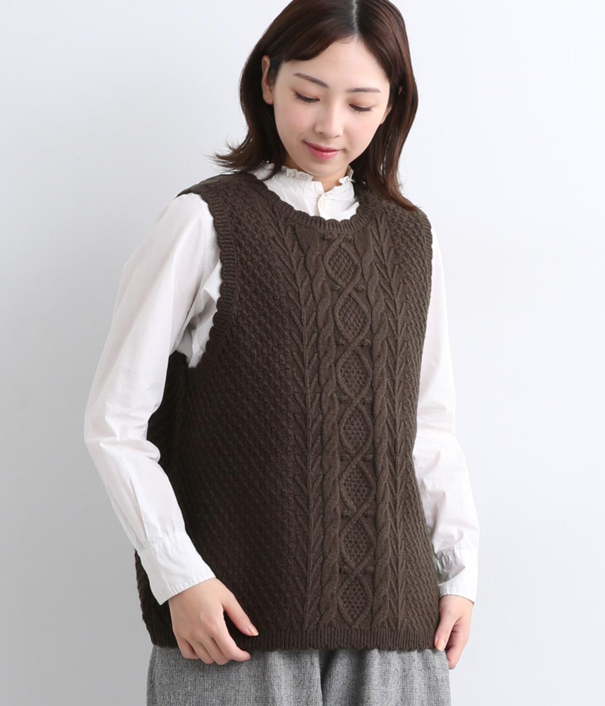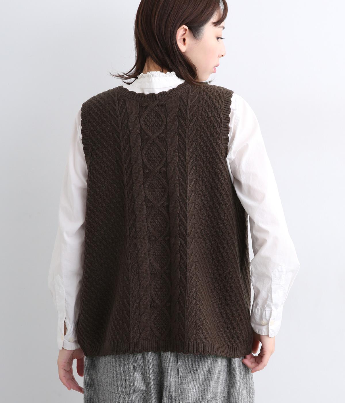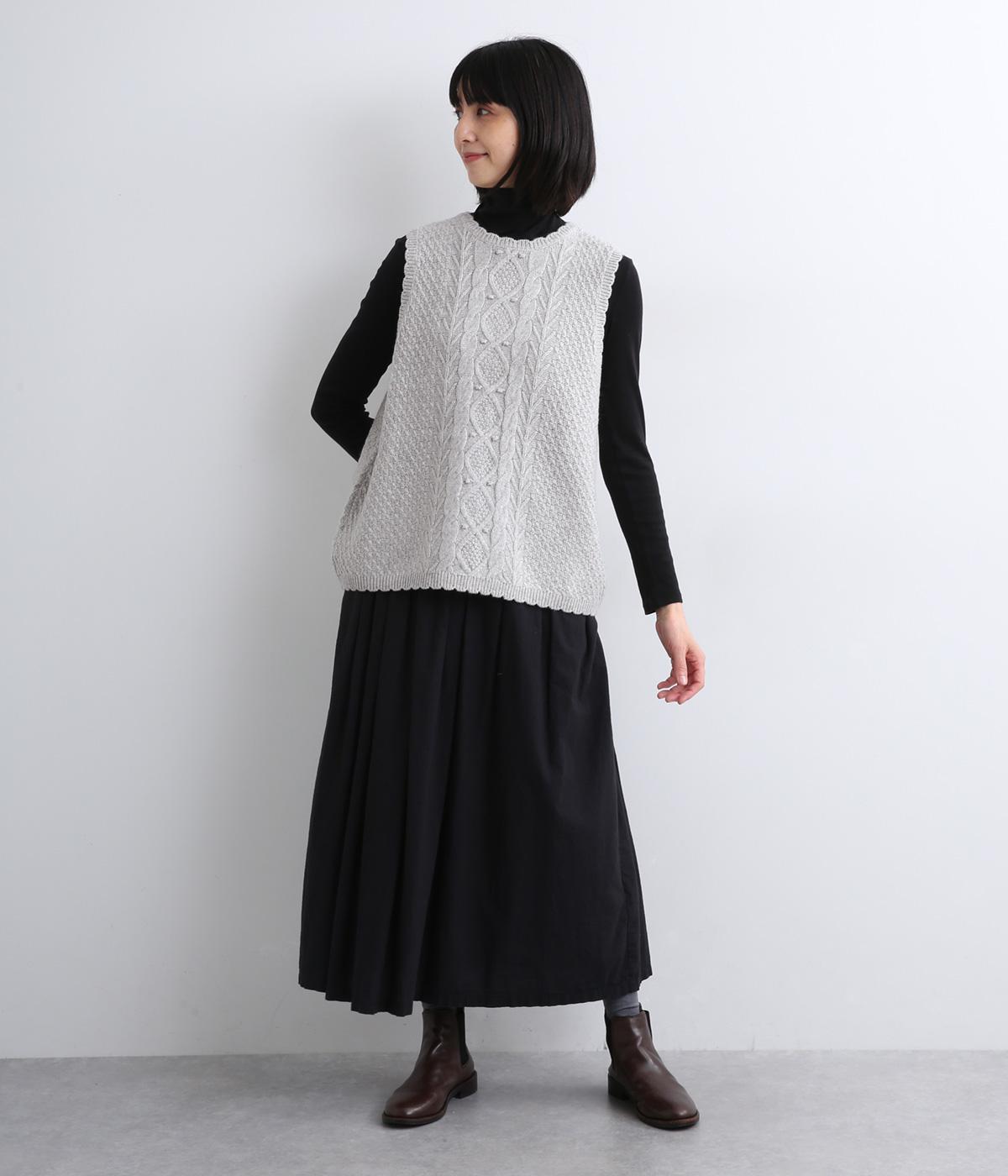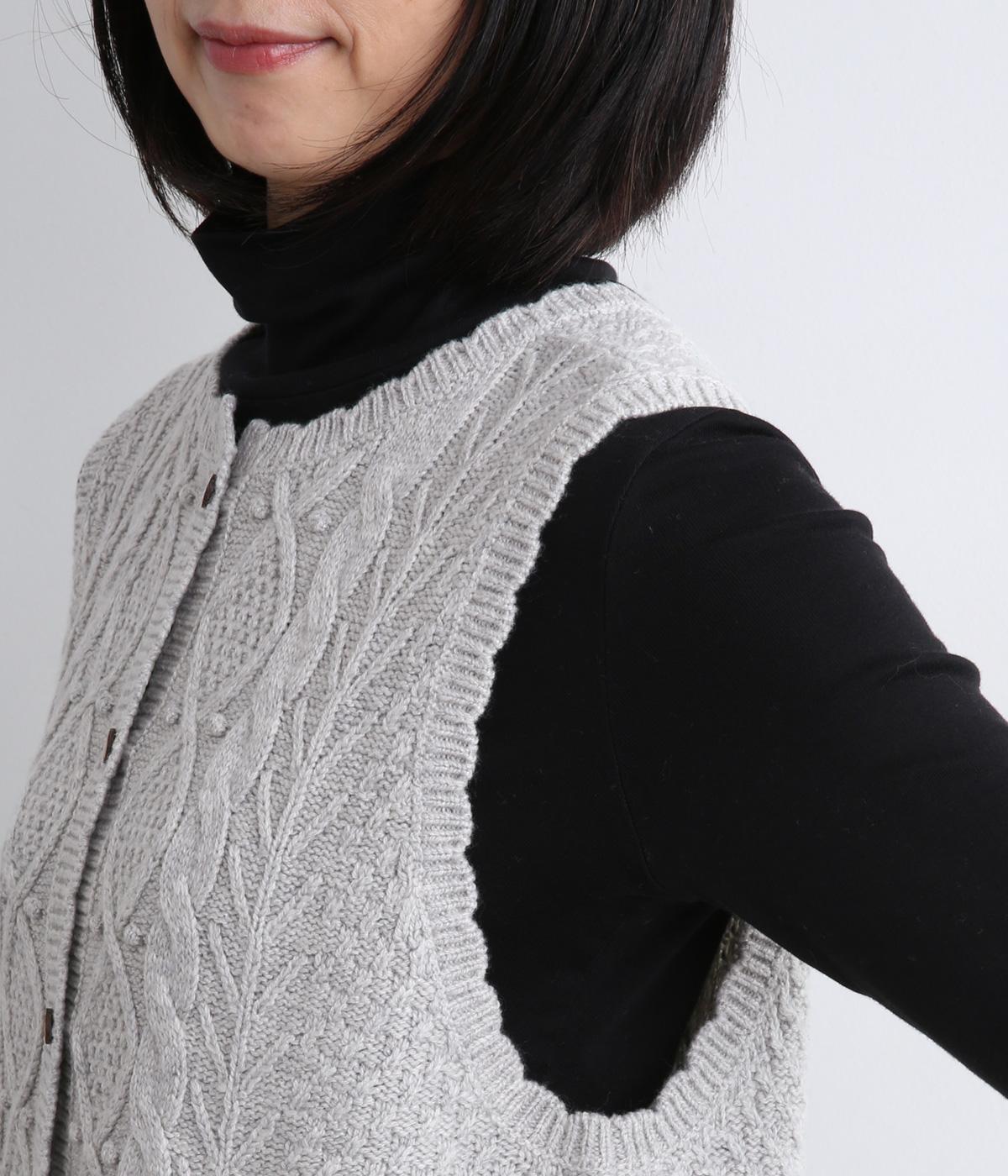 スカラップの縁取りがポイントの愛らしいベスト。前開きでもプルオーバーでも着られる2wayデザインです。丸く仕立てた前開きの裾がやさしい印象を与え、羽織るだけでコーディネートに奥行きをプラスします。