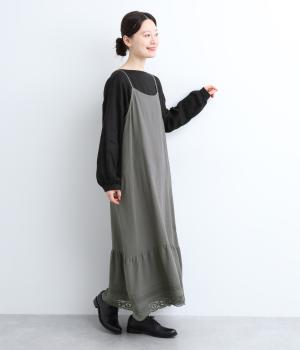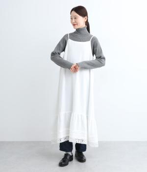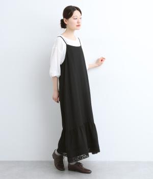 ゆるやかなAラインシルエットのキャミソールワンピース。裾にタックやレースなどガーリーなディテールを盛り込み、主役にもインナー使いにも対応できる万能な一着に。肩紐はアジャスターで長さ調整も可能です。