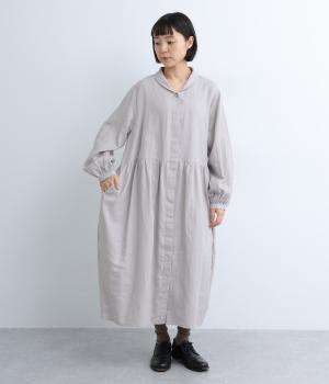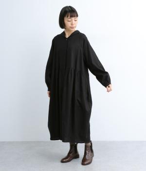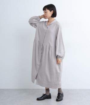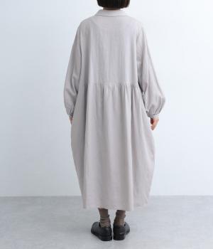 丸みのあるコクーンシルエットがかわいらしいワンピース。ウエストからのタックで自然な落ち感がうまれ、すっきりと見せてくれます。前立ては比翼仕立てで洗練された印象に。袖口のギャザーがかわいらしさを引き立てます。