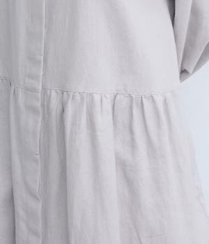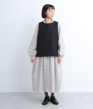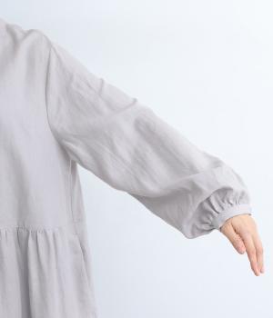 ほどよいハリ感のあるリネン綾織生地を使用し、シルエットをきれいにキープします。自然な風合いとさらりとした肌ざわりで、やさしく体になじみます。