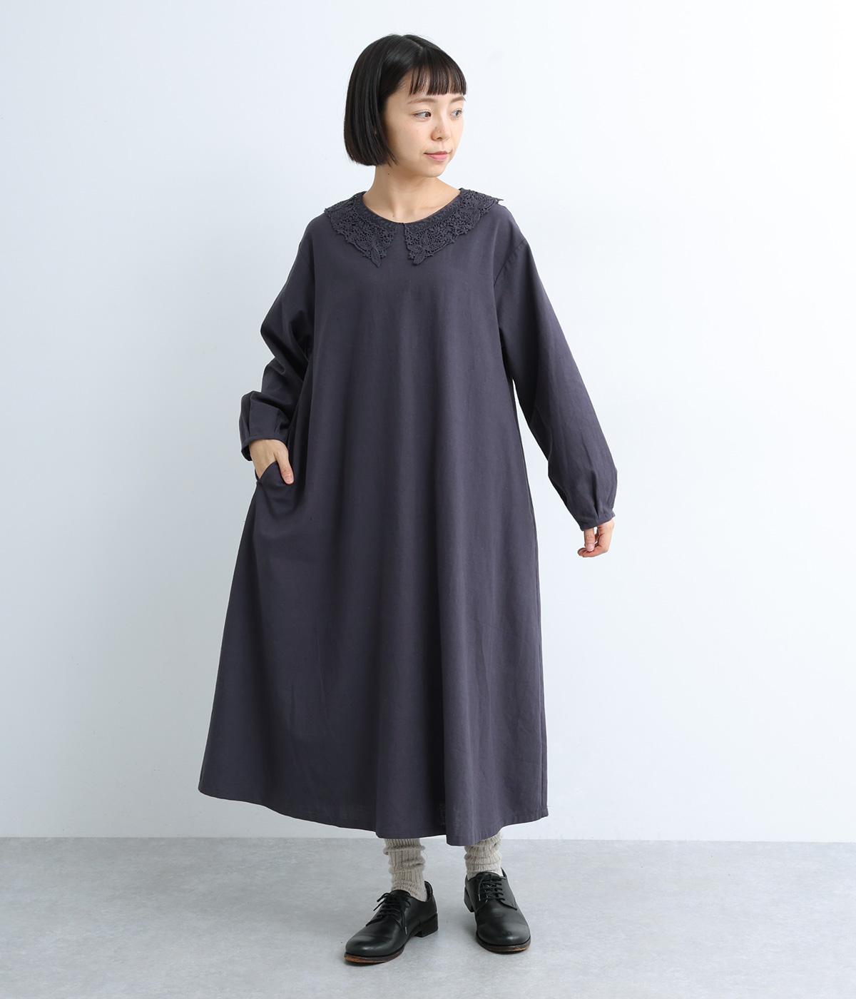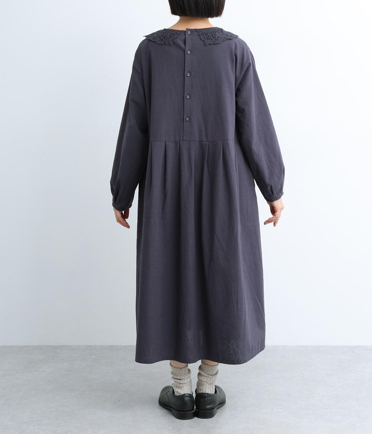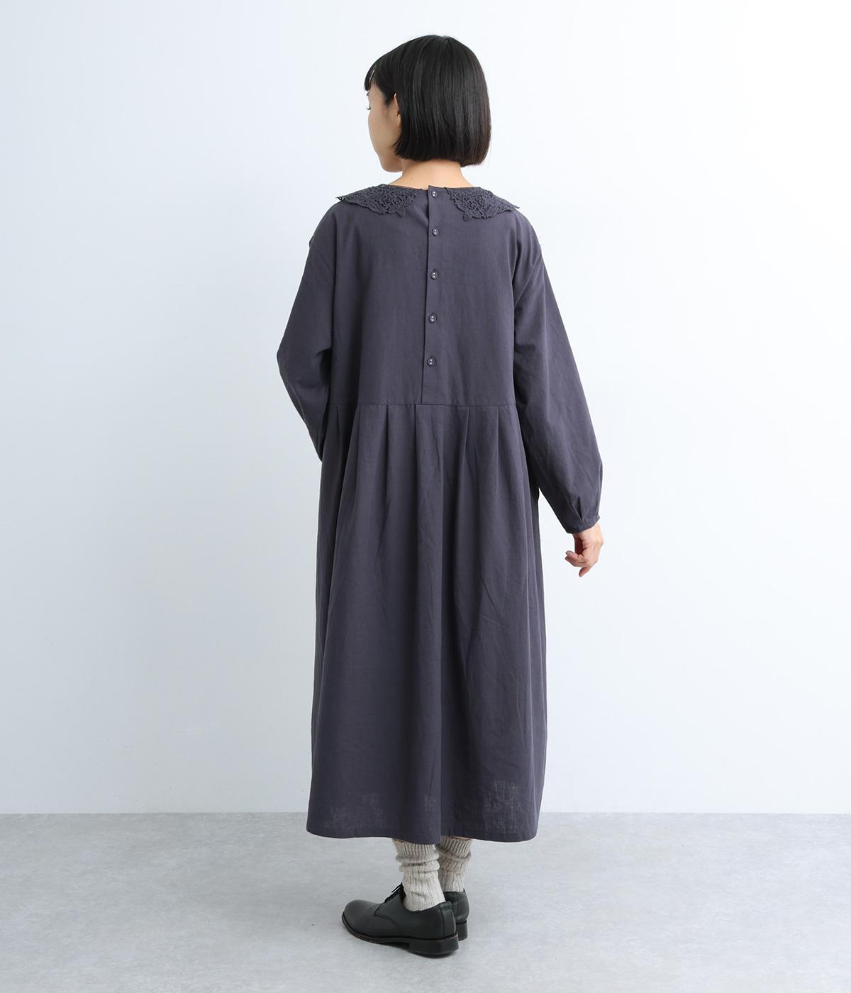 レースカラーがクラシカルでかわいらしい印象のワンピースです。背面はボタン留めで、腰部分のタックがきれいな落ち感を生み出します。ボトムスや羽織ものと合わせて重ね着も◎。スタイリングの幅が広がる一枚です。