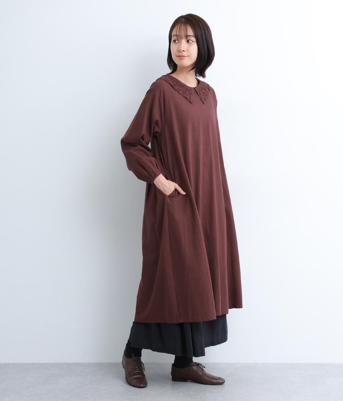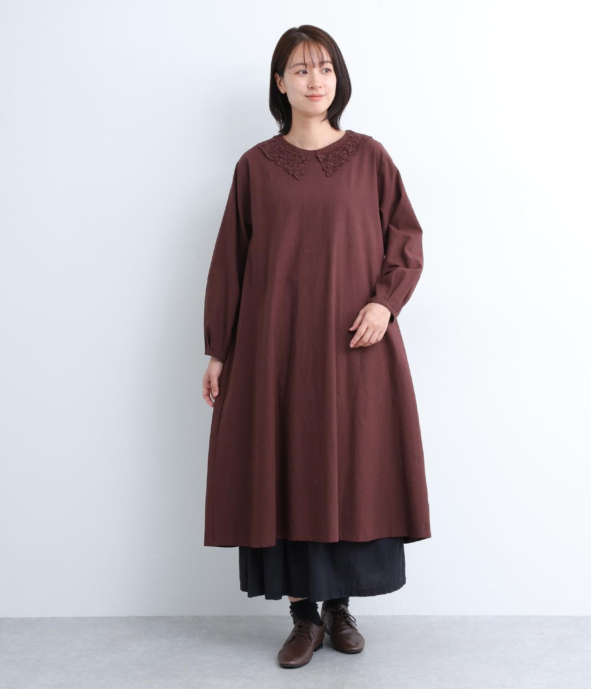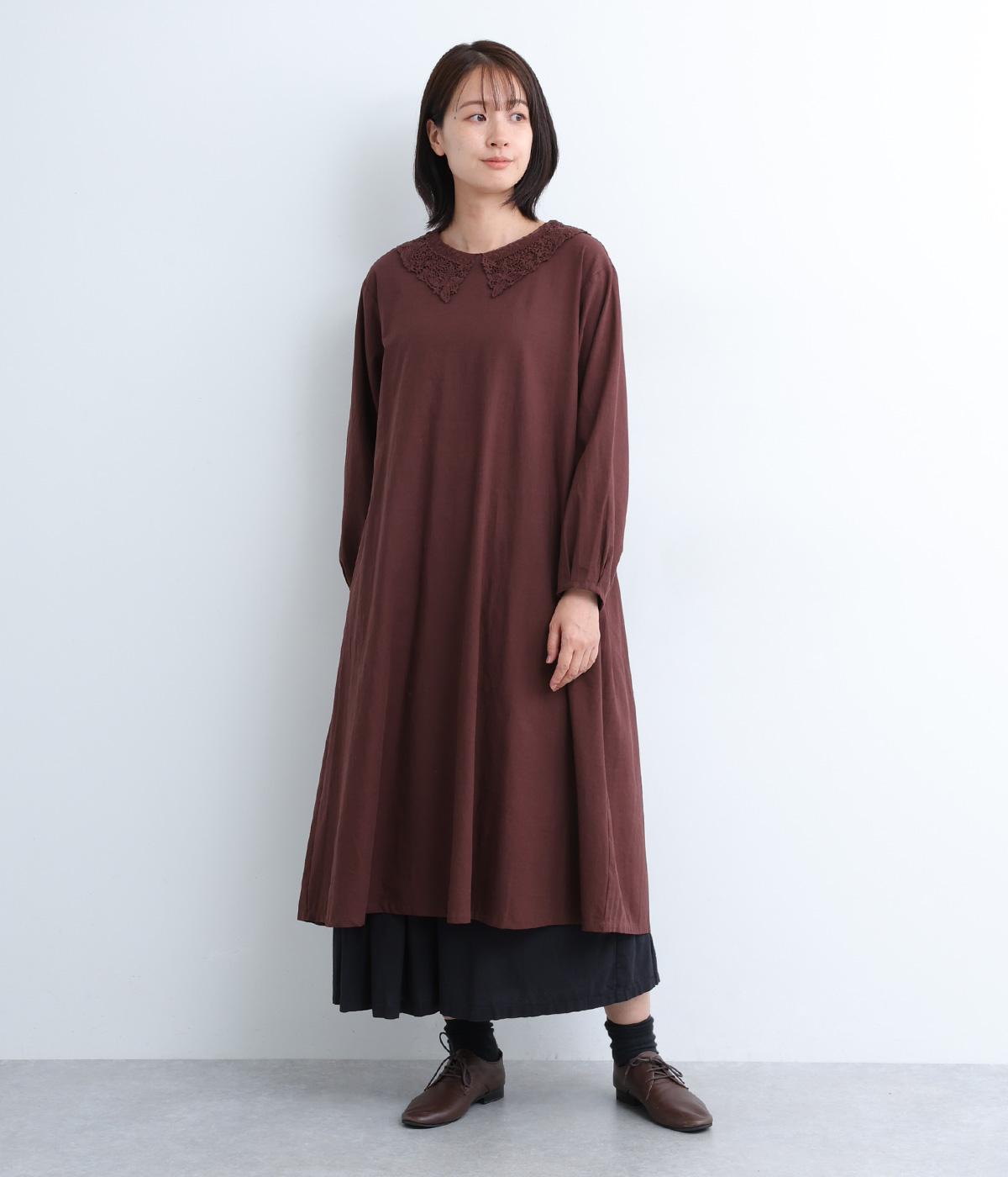 レースカラーがクラシカルでかわいらしい印象のワンピースです。背面はボタン留めで、腰部分のタックがきれいな落ち感を生み出します。ボトムスや羽織ものと合わせて重ね着も◎。スタイリングの幅が広がる一枚です。