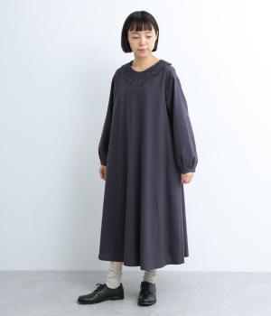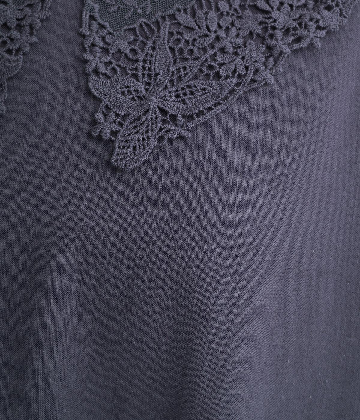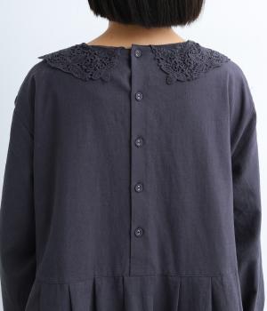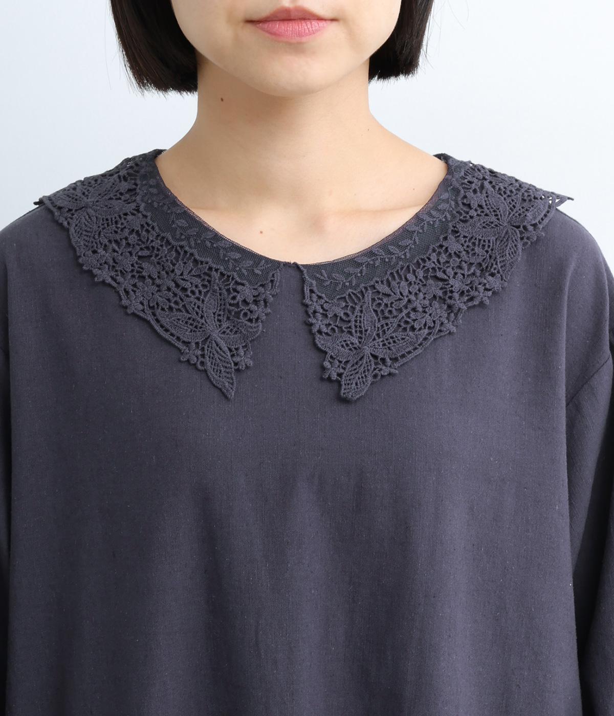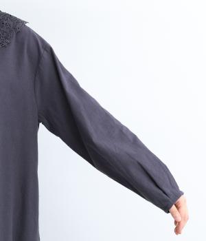 (本体)麻55% コットン45% (衿レース部分/刺繍)コットン100% (衿レース部分/チュール) ナイロン100%