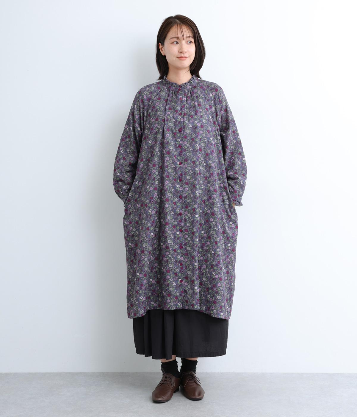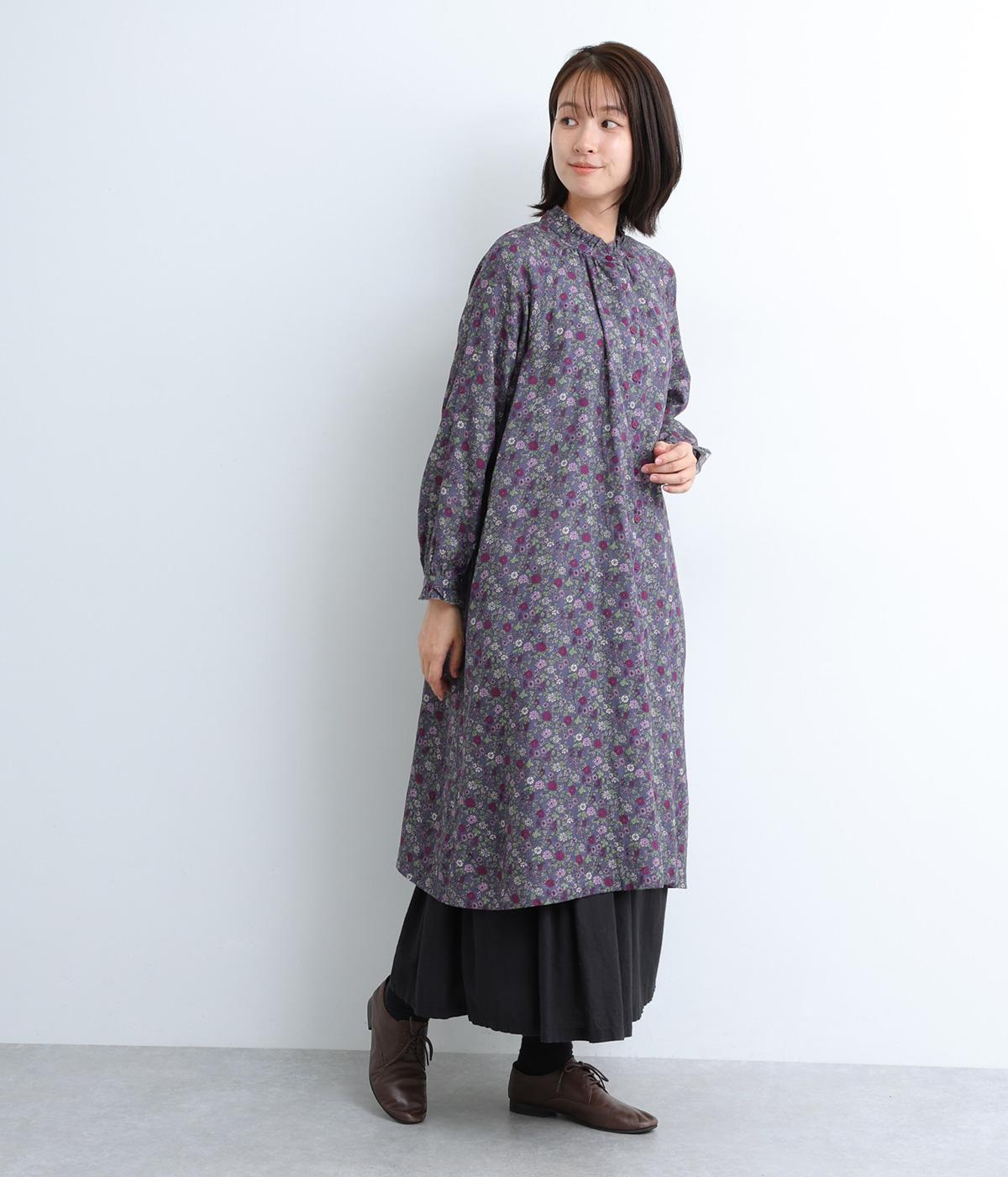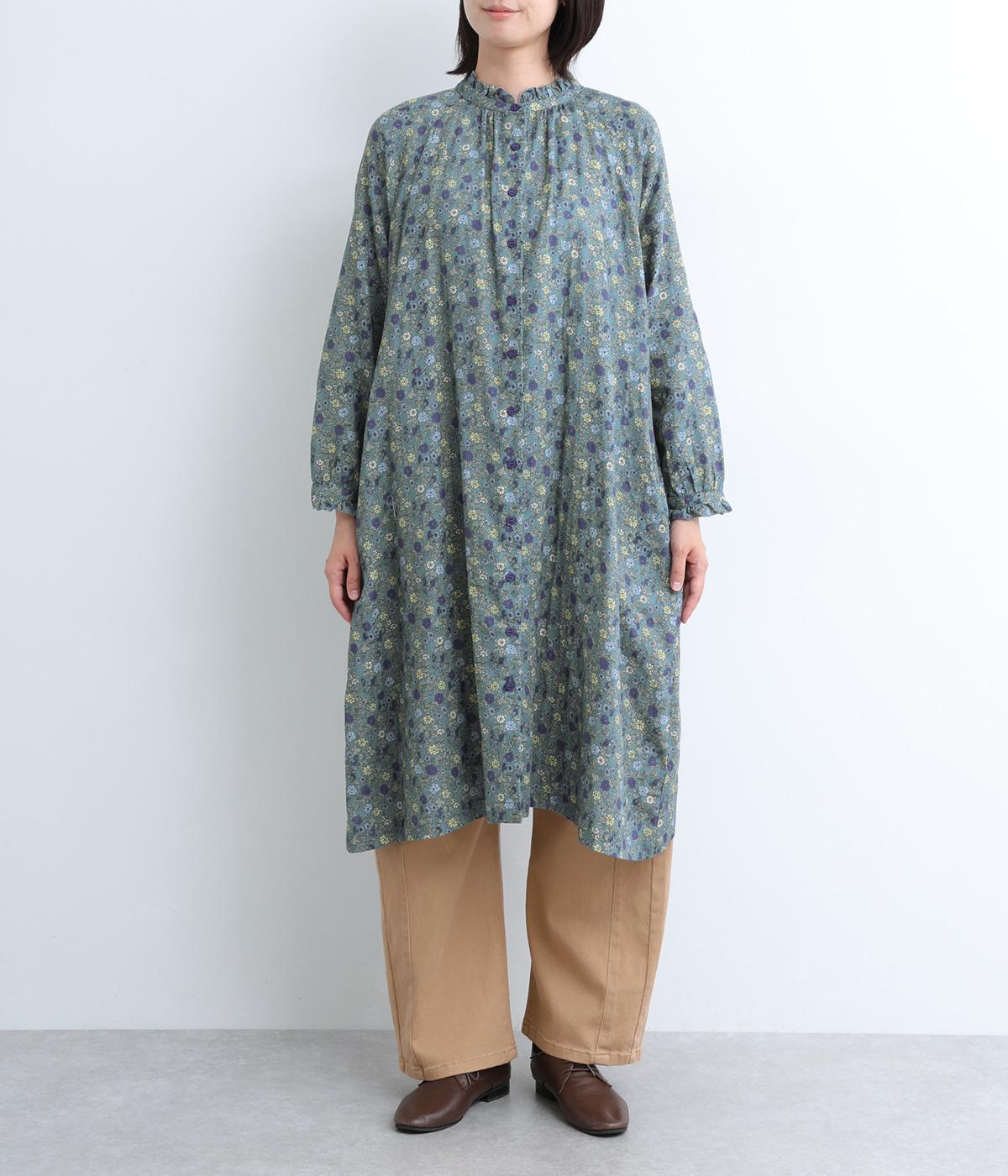 スタンドカラーと袖口のフリルが甘い印象のワンピース。ラグランスリーブがほどよい抜け感を演出します。一枚で着るのはもちろん、サッと羽織るだけでもサマになります。デニムやチノパンなどカジュアルなアイテムとの合わせも◎。
