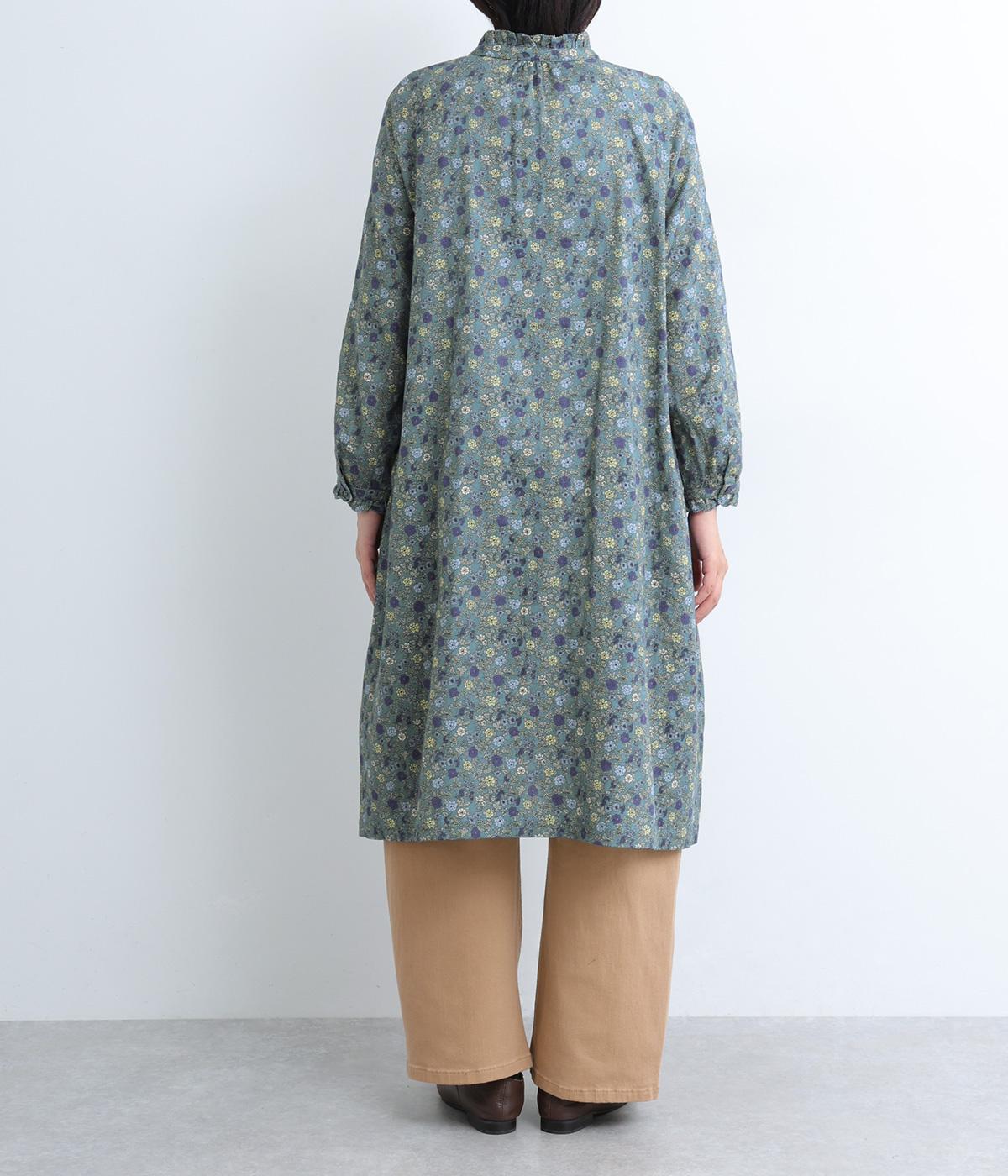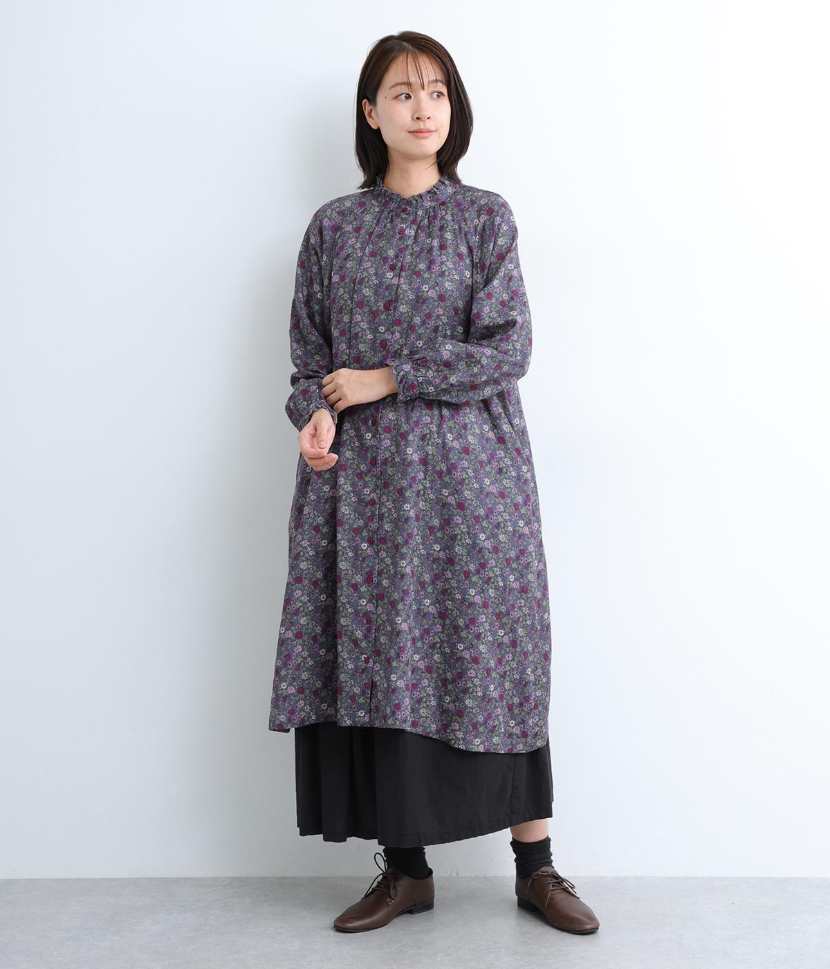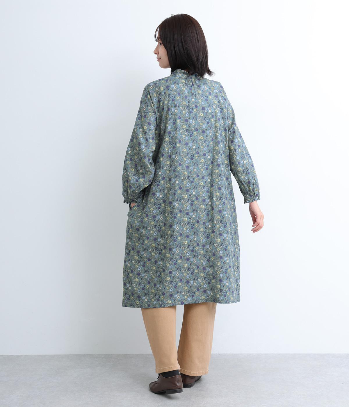 スタンドカラーと袖口のフリルが甘い印象のワンピース。ラグランスリーブがほどよい抜け感を演出します。一枚で着るのはもちろん、サッと羽織るだけでもサマになります。デニムやチノパンなどカジュアルなアイテムとの合わせも◎。