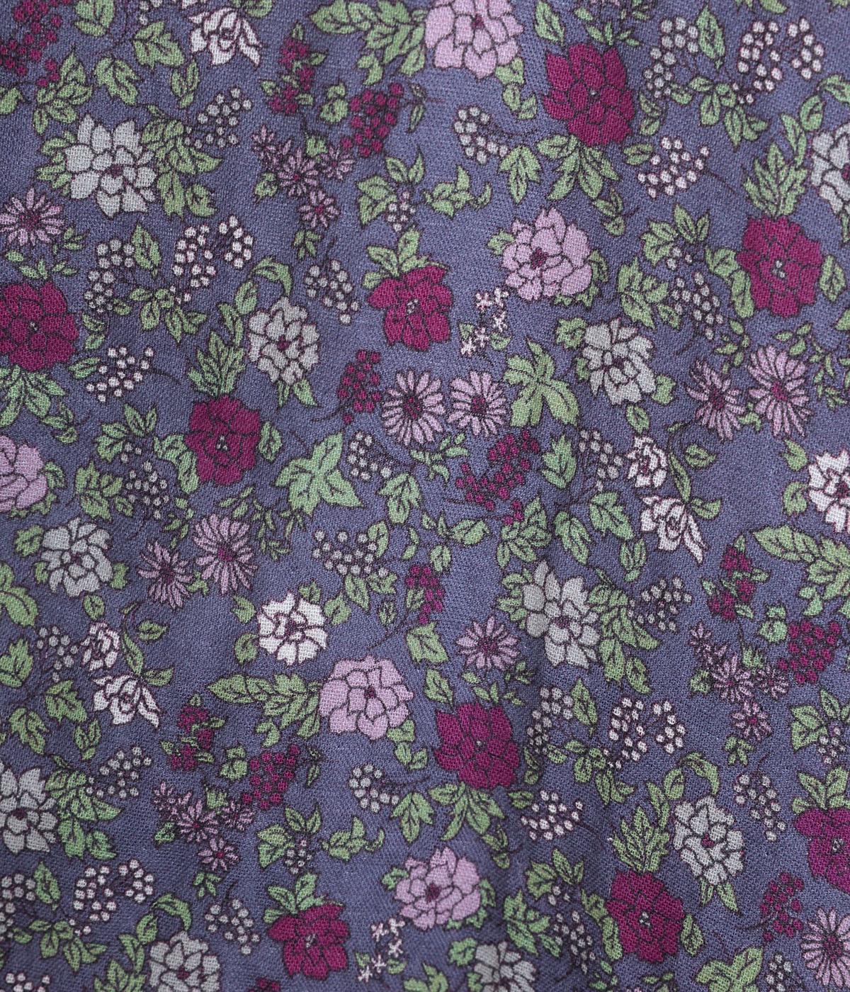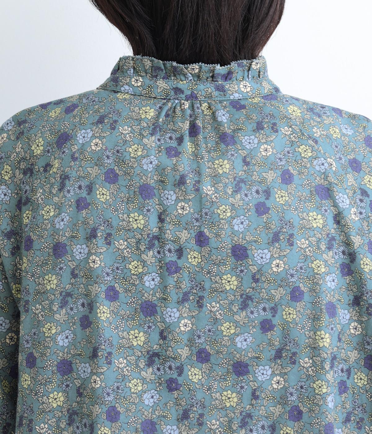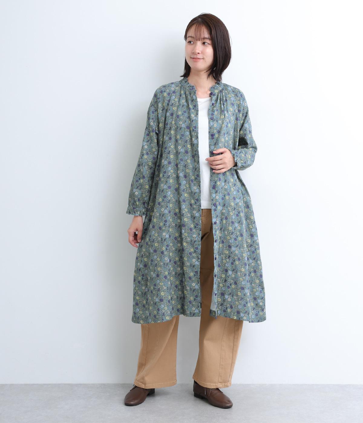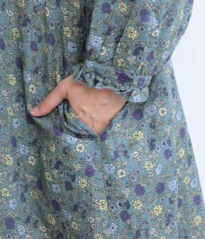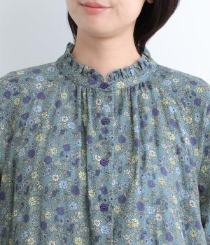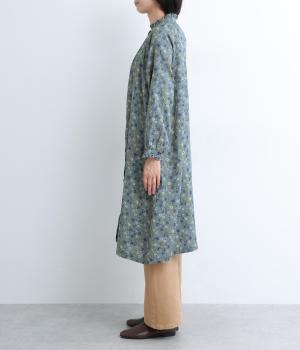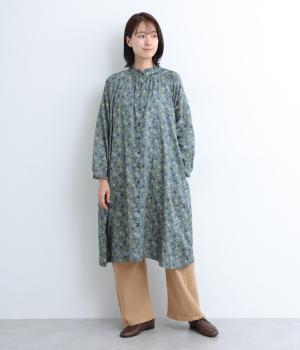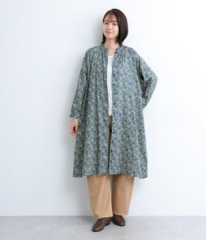 やわらかい肌触りが魅力のコットンガーゼ生地を使用しました。ナチュラルな風合いに小花柄のプリントをほどこし、シックな雰囲気に仕上がりました。