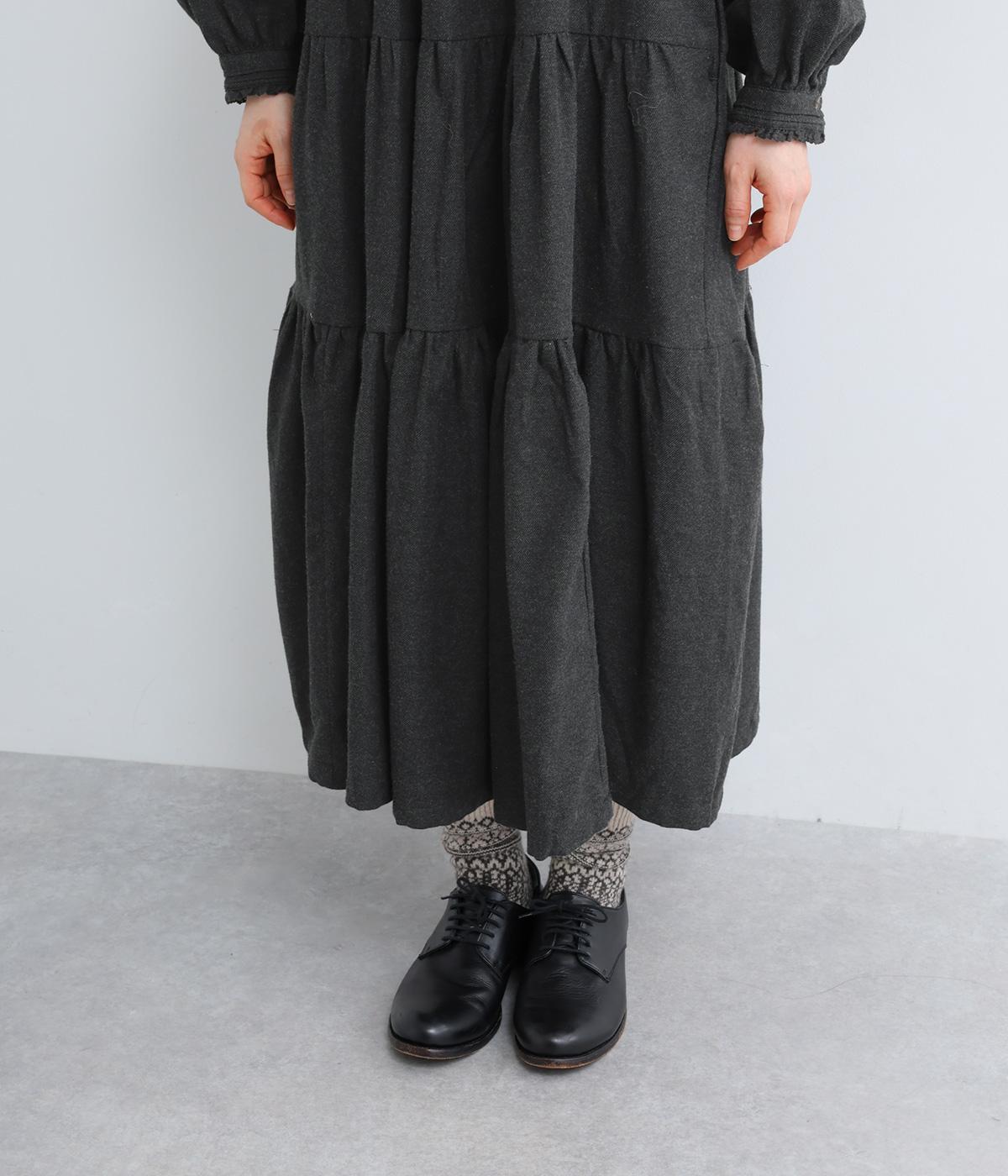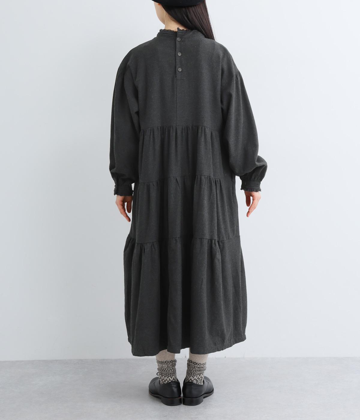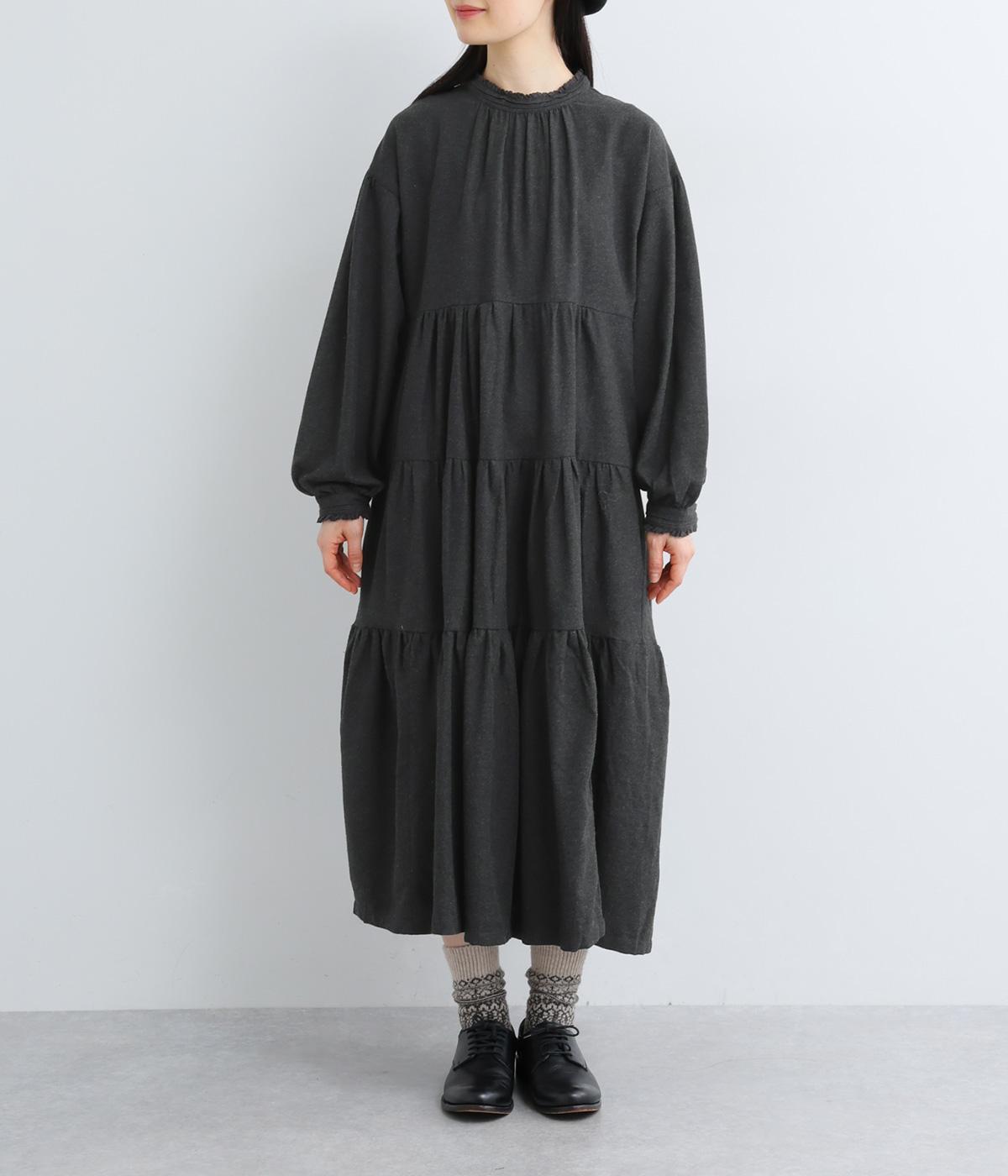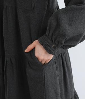 大人かわいい雰囲気漂うティアードワンピースです。首元と袖口にはさりげないフリルを添えて、ほんのり可憐なアクセントに。たっぷりの生地感が優雅なドレープをつくり、上品な印象に仕上げています。