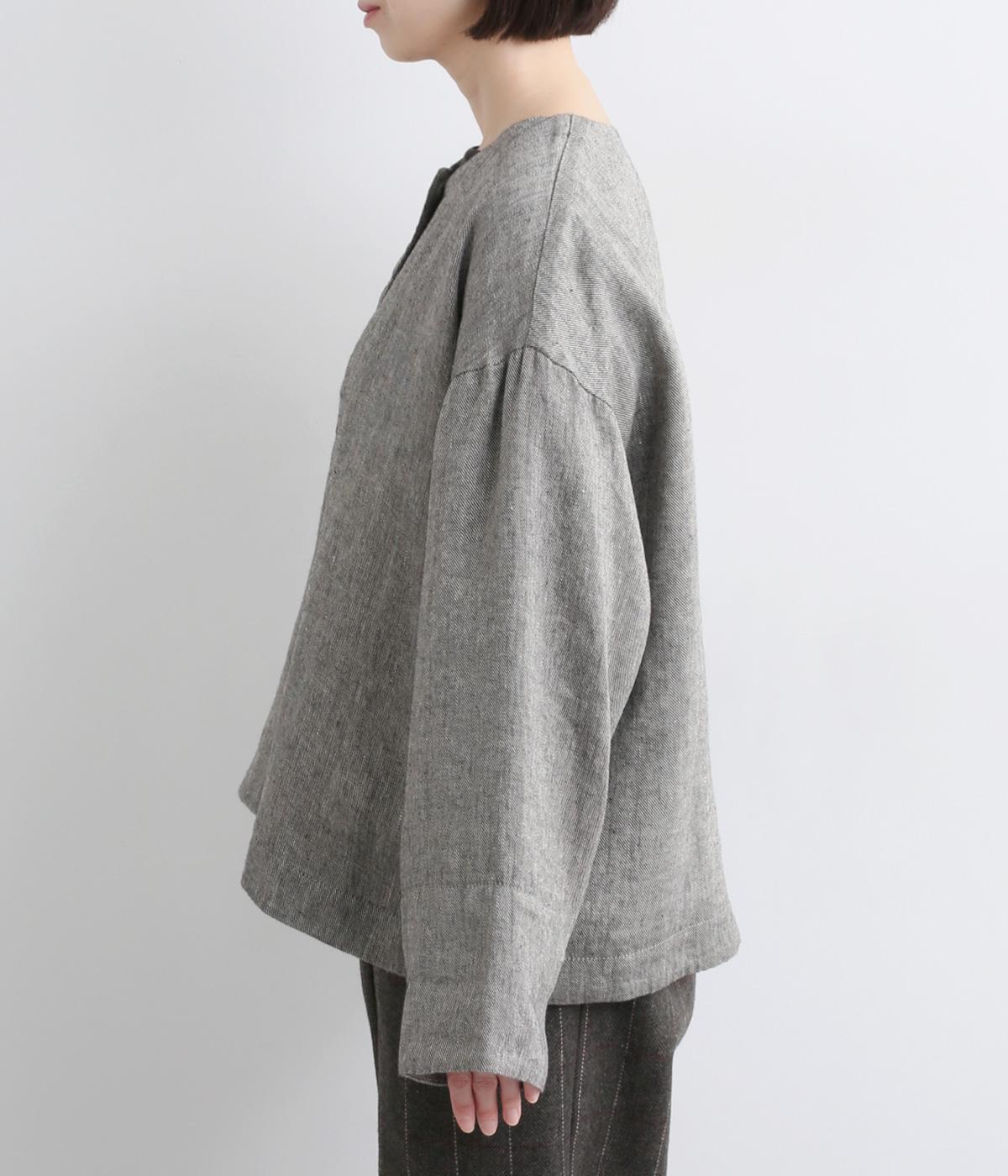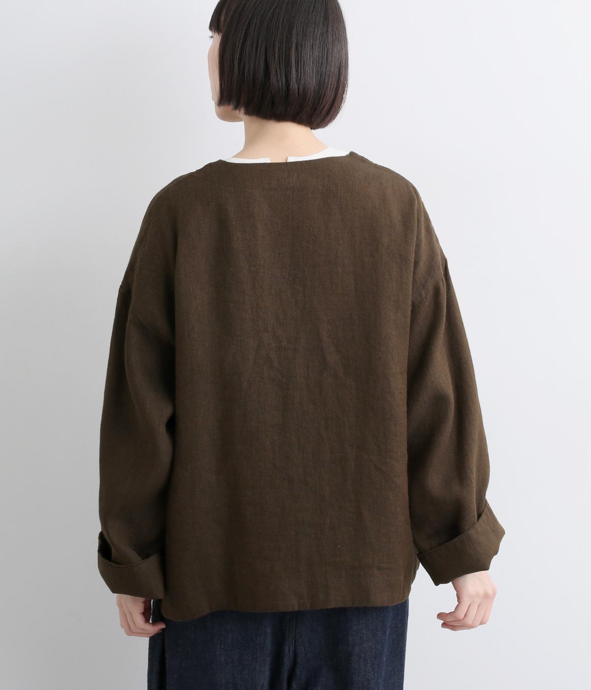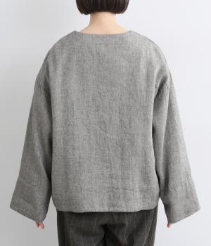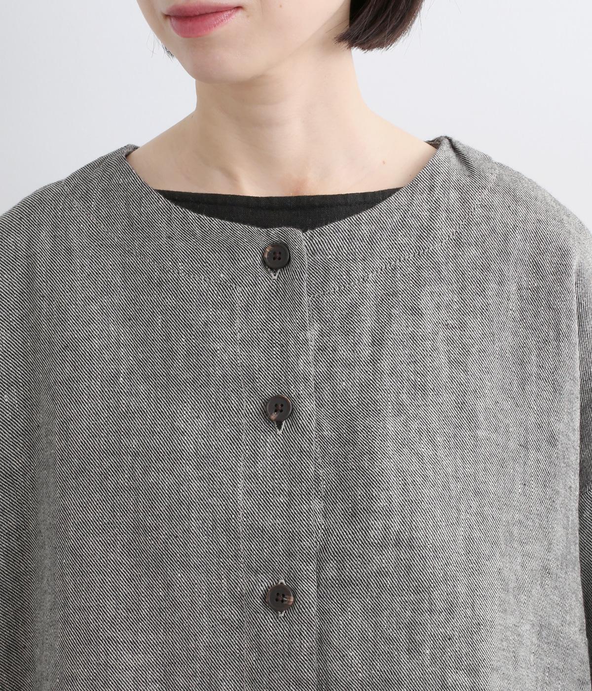 リネンのシャリ感とネップのあるナチュラルな表情が魅力の生地を使用しました。ラフな表情できれいめになり過ぎない雰囲気の素材感に仕上がりました。