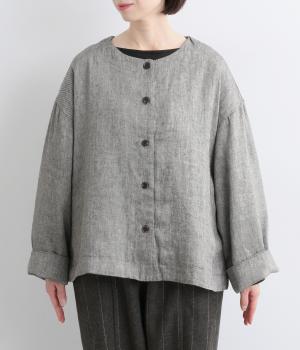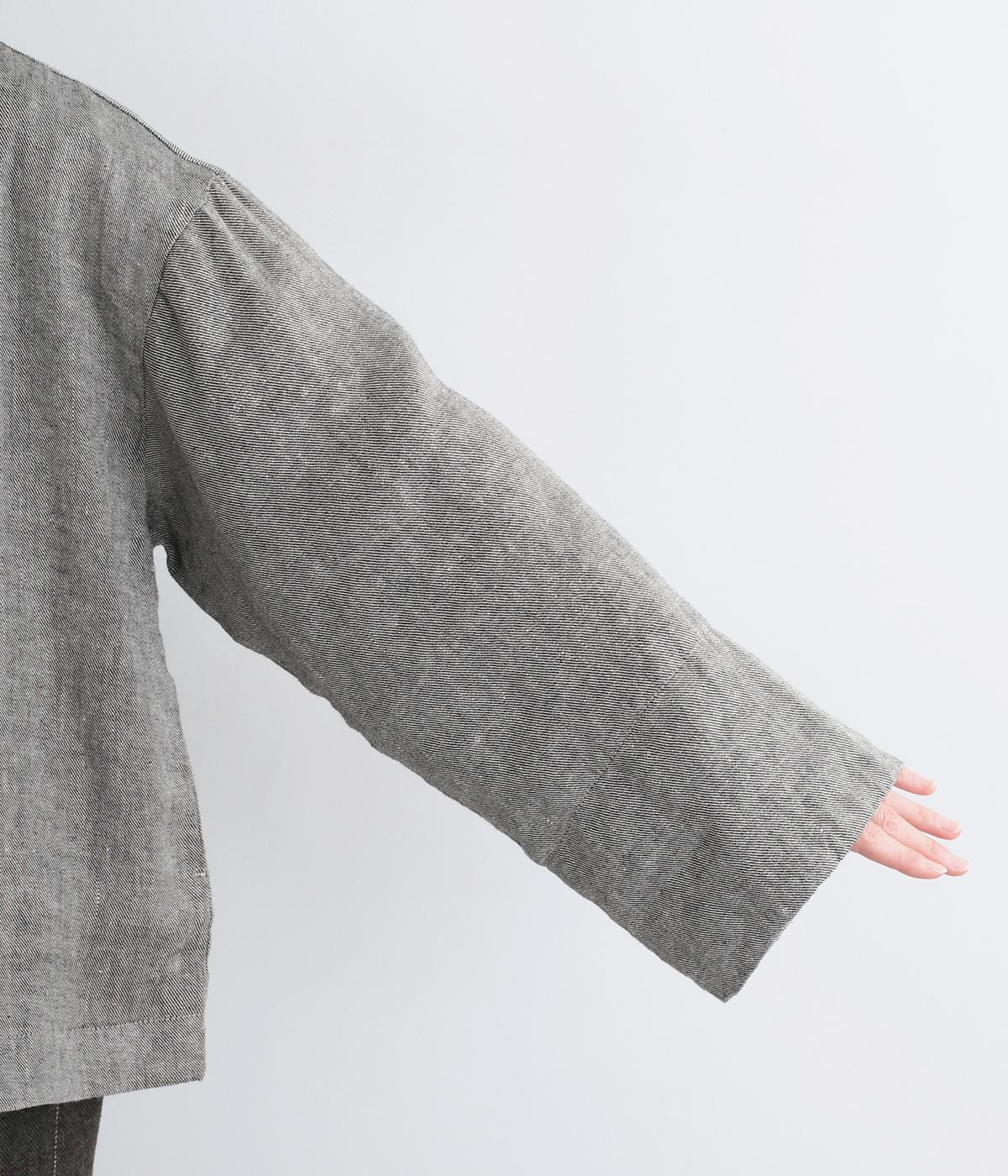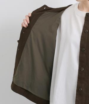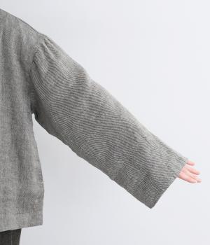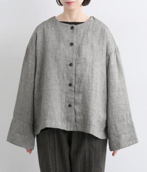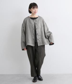 ノーカラーとワイドな袖のバランスがこなれ感のあるジャケット。サッと羽織るだけでスタイリングにニュアンスが生まれます。ゆったりした身幅でインナーも合わせやすく、裏地付きもうれしいポイントです。
