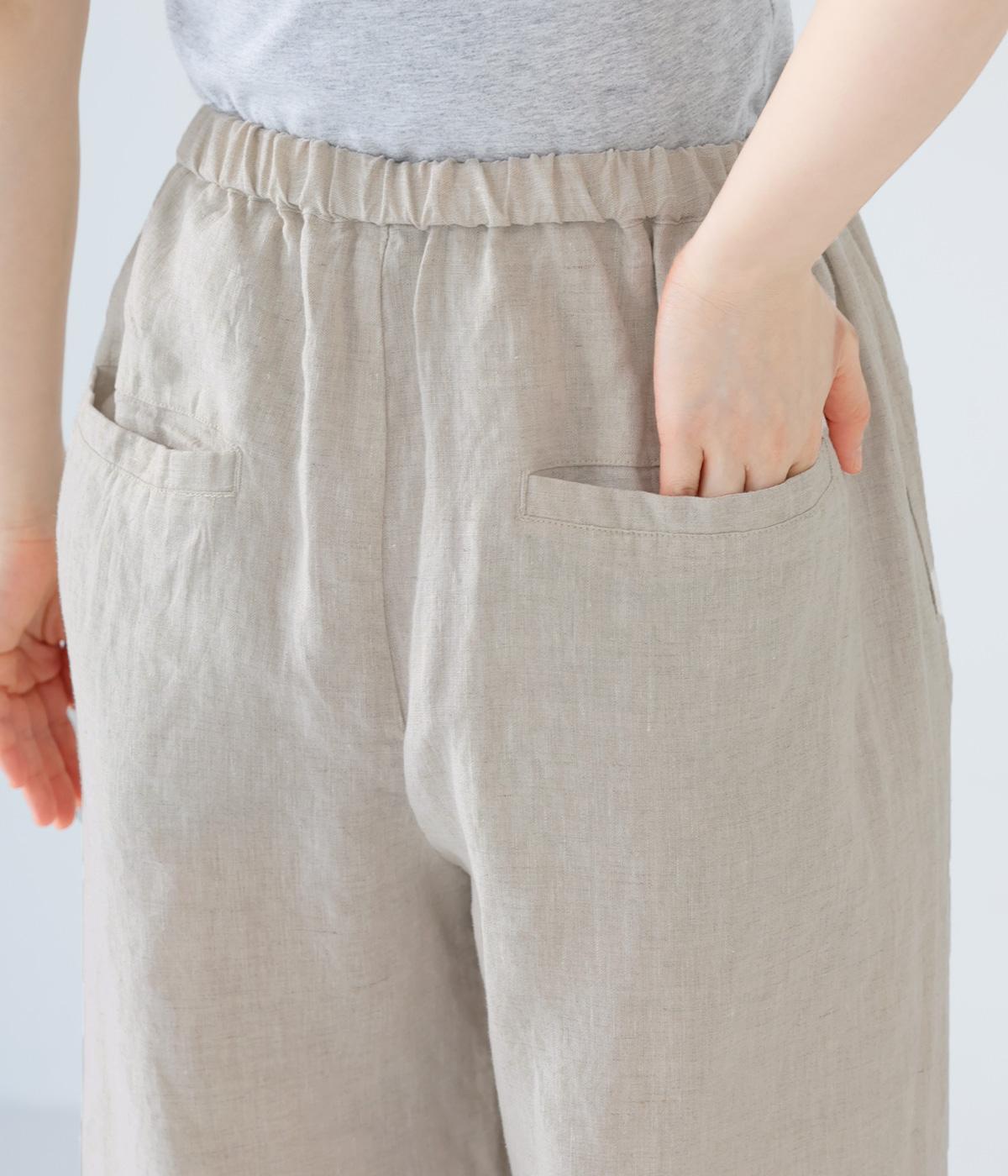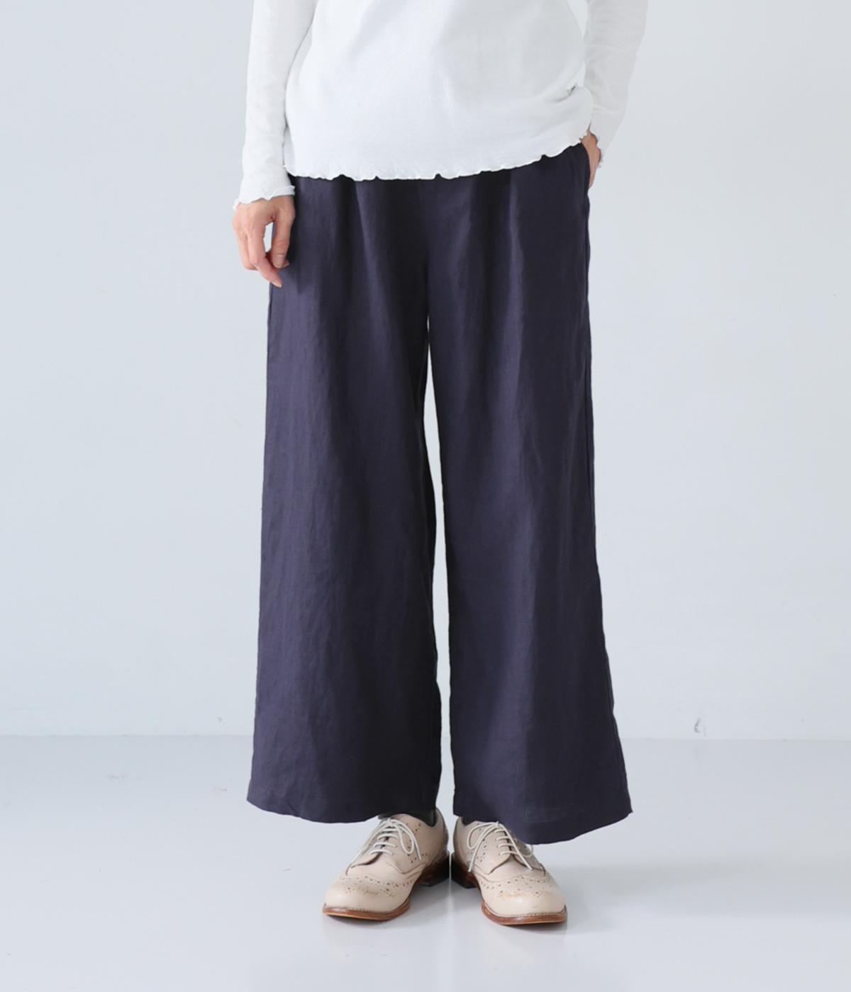 適度なゆとりとすっきりとしたラインが特徴的なストレートパンツ。シンプルな仕立てで、素材の持ついい雰囲気が惹き出されています。後ろウエストゴムに内紐入りでフィット感も◎。フロントファスナーで脱ぎはきもイージーです。