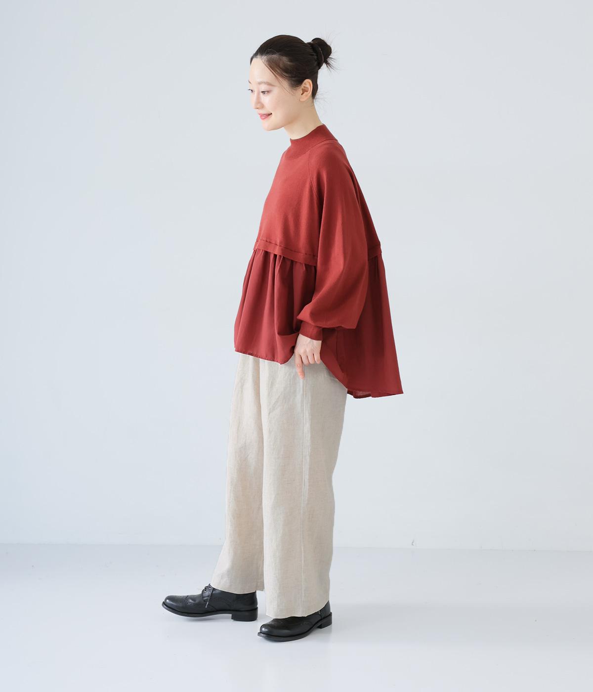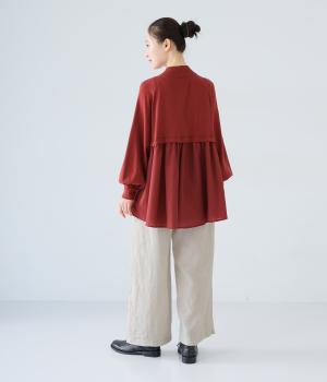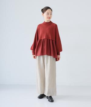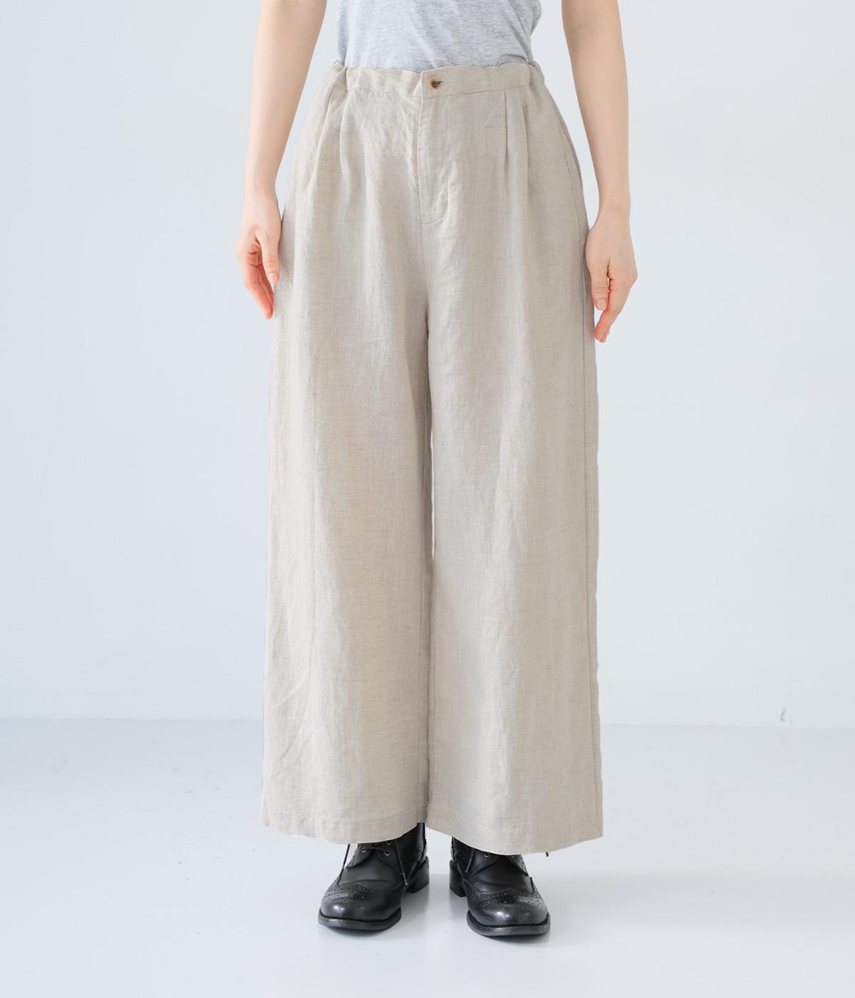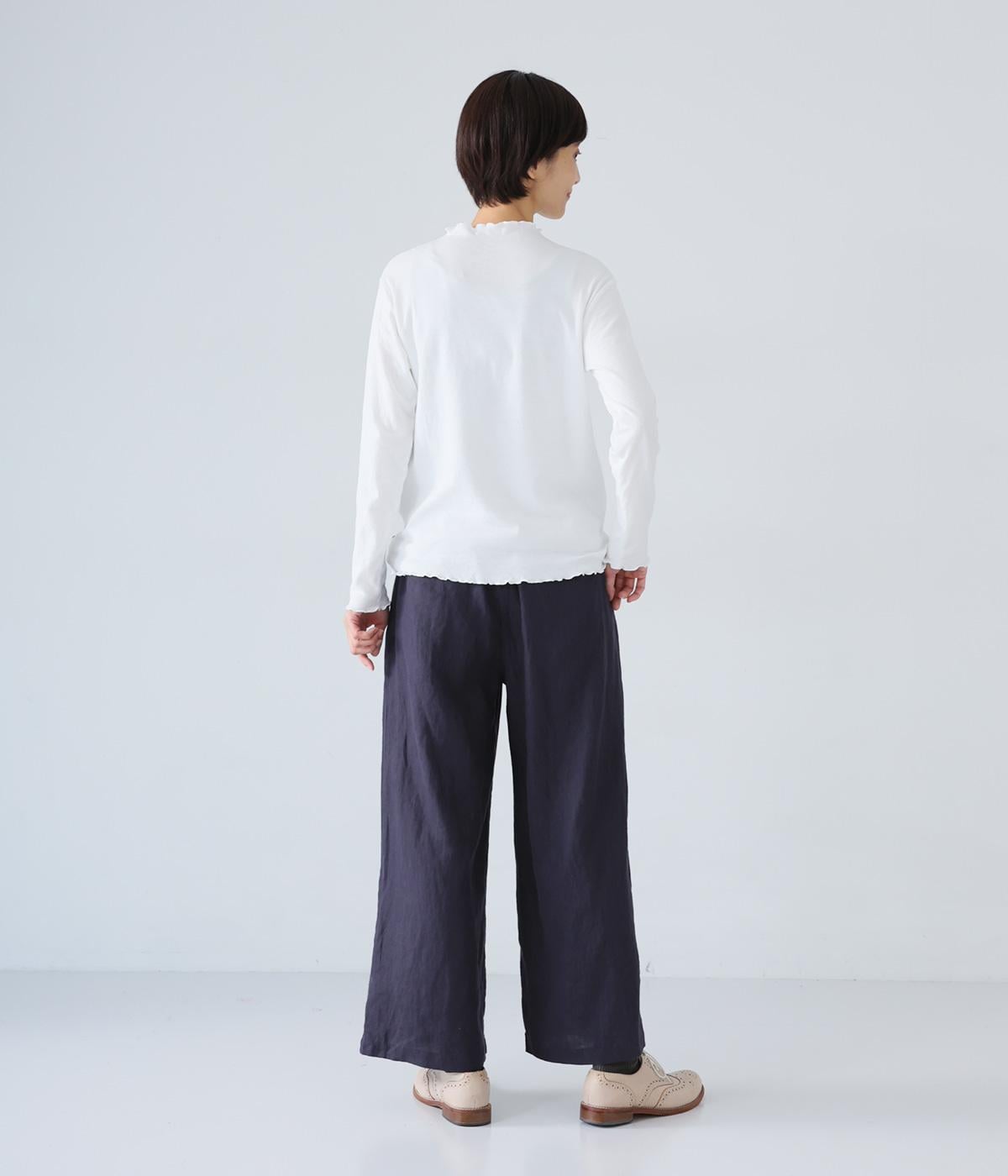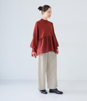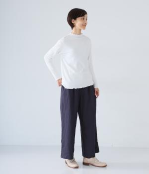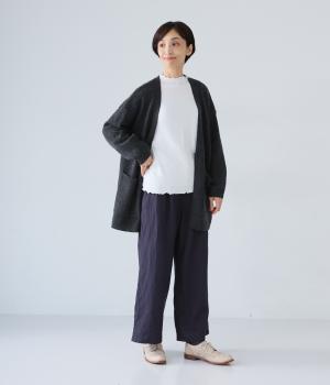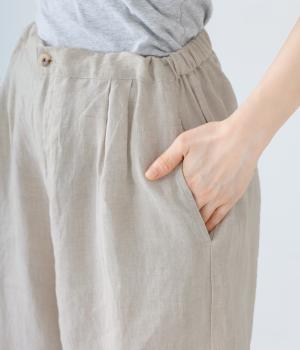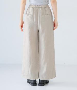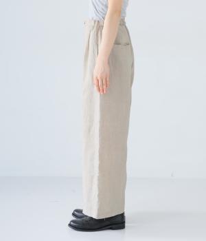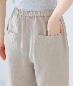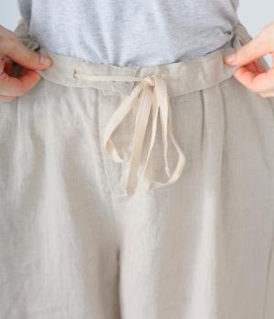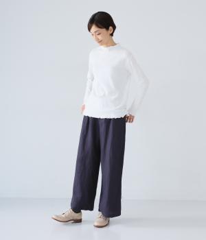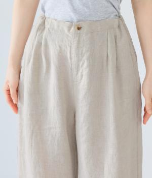 独特のシャリ感は残しつつ、やや薄手でなめらかに仕上げたリネンを使用しています。すとんと落ちるやわらかな風合いに、リネン特有のはくほどになじむ経年変化が魅力です。