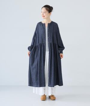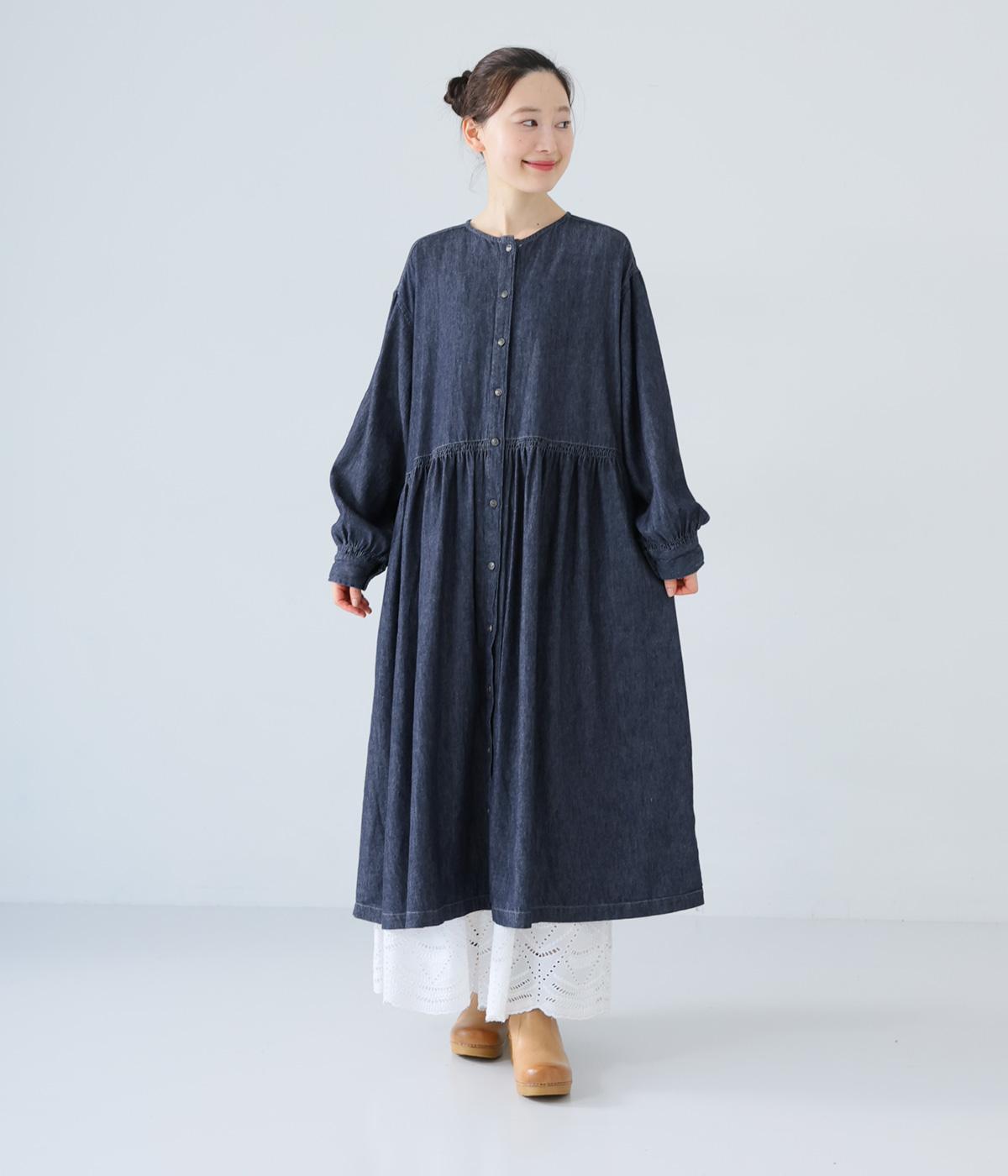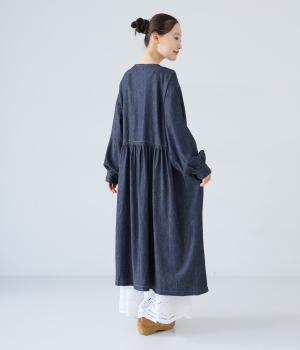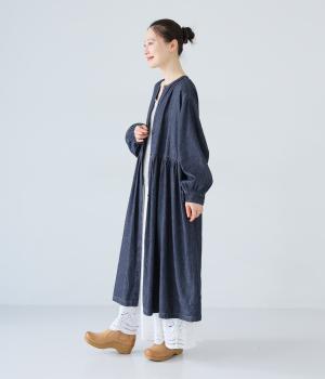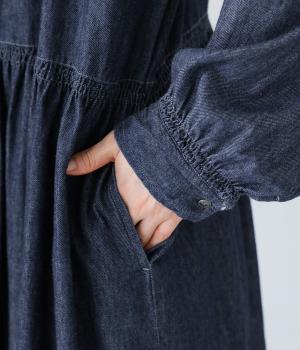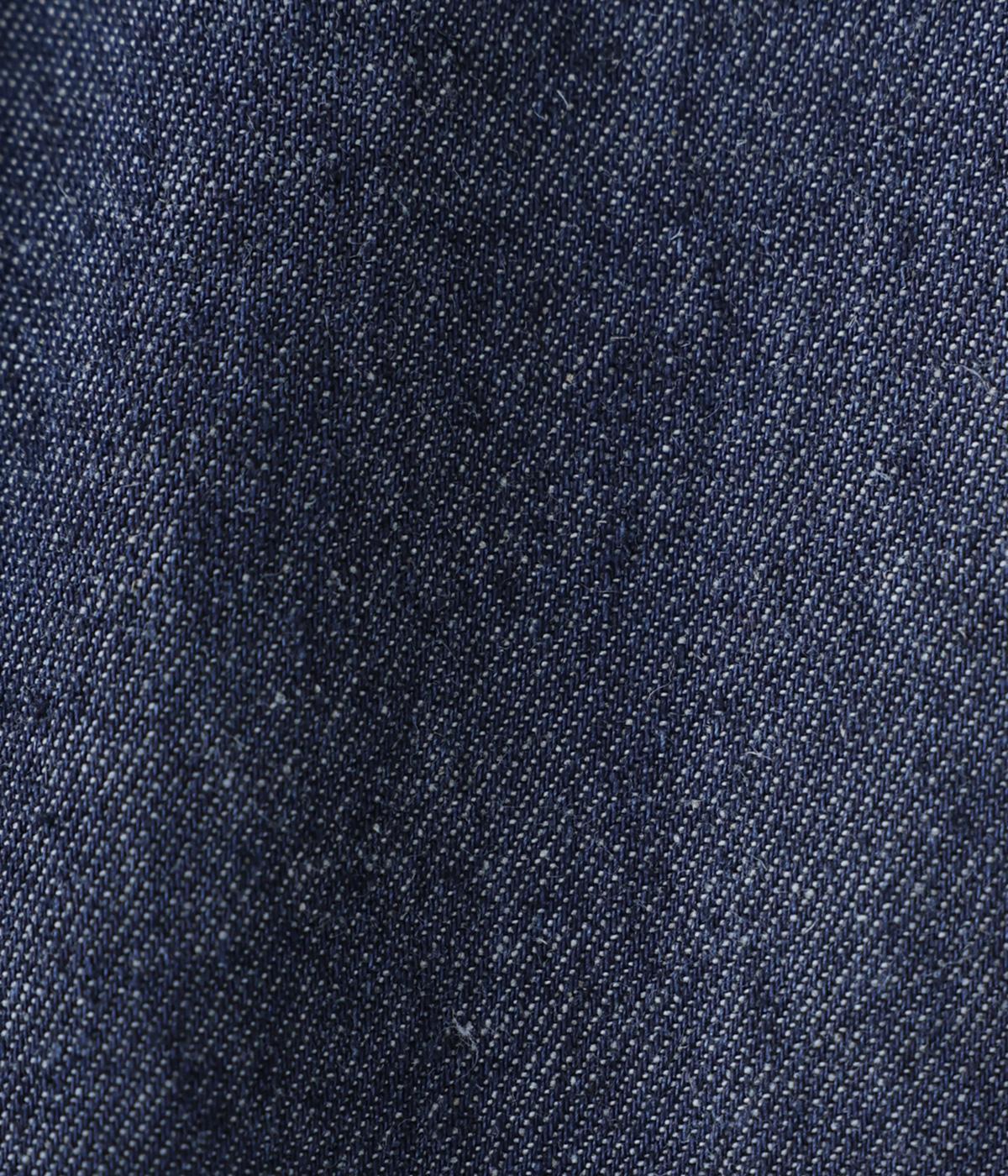 コットンにリネンをブレンドした糸を使用しています。さらりとした肌触りにナチュラルな風合いが魅力的で、着用初期からやわらかなのもうれしいポイント。デニム特有の色落ち変化もたのしみです。