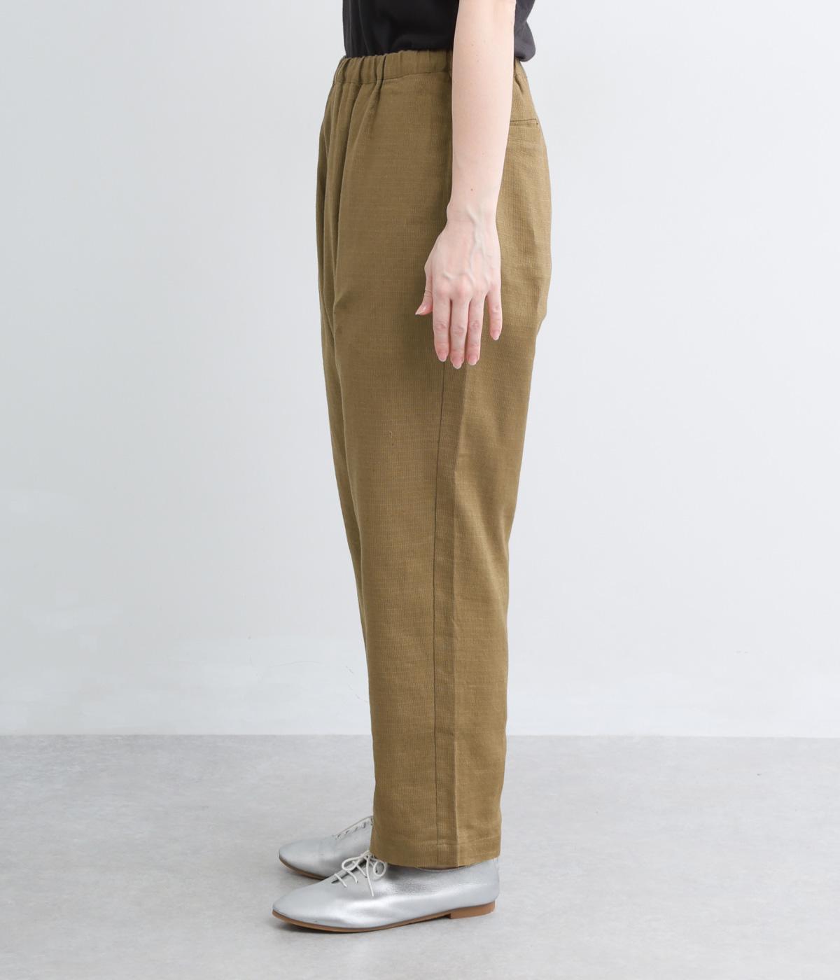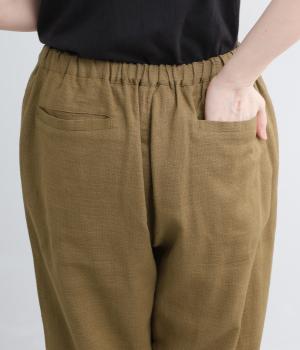 腰まわりやワタリはゆったりと、裾に向けてすっきり仕上げたテーパードパンツ。トップス合わせに困らないシルエットではきやすく、素材感もいいのでお洒落にきまります。ウエストはオールゴム&内紐入りで微調整も◎。