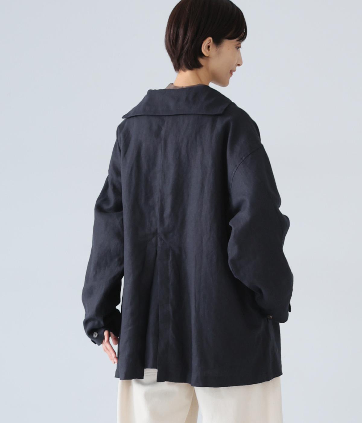 ゆったり羽織れるメンズライクなジャケットに、ちょこんとついたミニセーラーカラーがワンポイントになっています。袖口はボタンの留め位置できゅっとしぼったアレンジも可能。後ろ裾はフレアに仕立てているのでボリュームボトムとも好相性です。