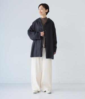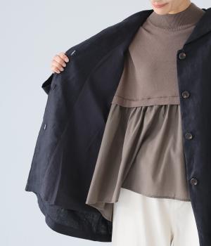 リネン特有のナチュラルな風合いを活かしたキャンバス生地を使用しています。さらりとして適度に質感のある綿生地を総裏に配しているので羽織りやすく、防寒性もアップ。