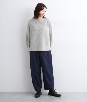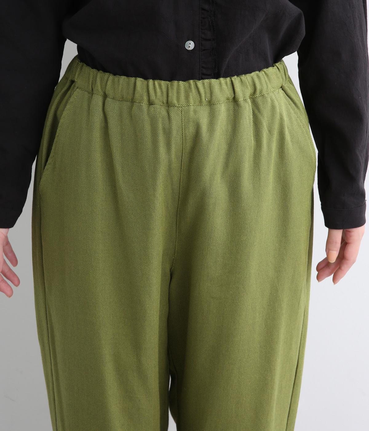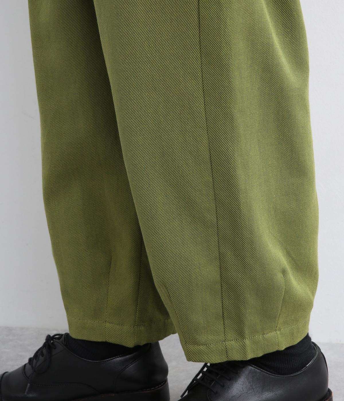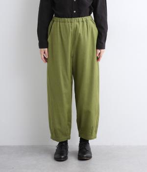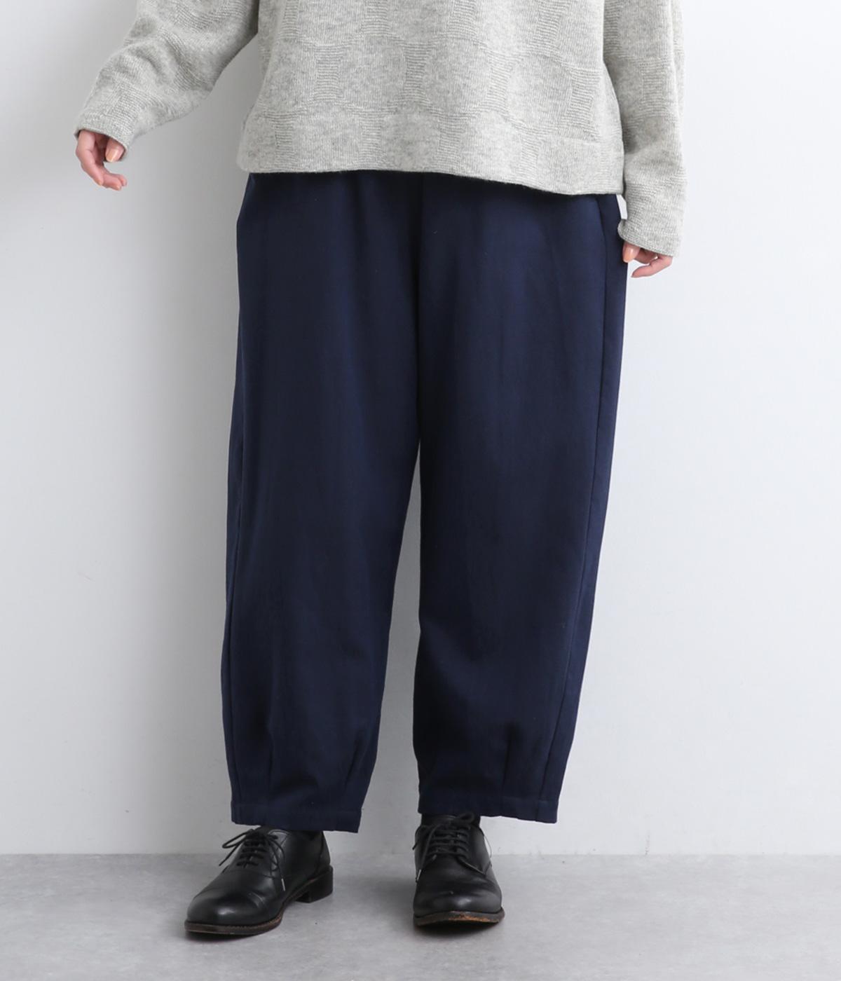 体のラインを拾いにくいコクーンシルエット。裾に向かってすっきりとしぼまるラインが、こなれ感のある着こなしを演出します。裏地付きで安心感があり、ウエストゴム仕様で快適な穿き心地。さまざまなトップスと合わせやすく、着まわし力の高い一着です。