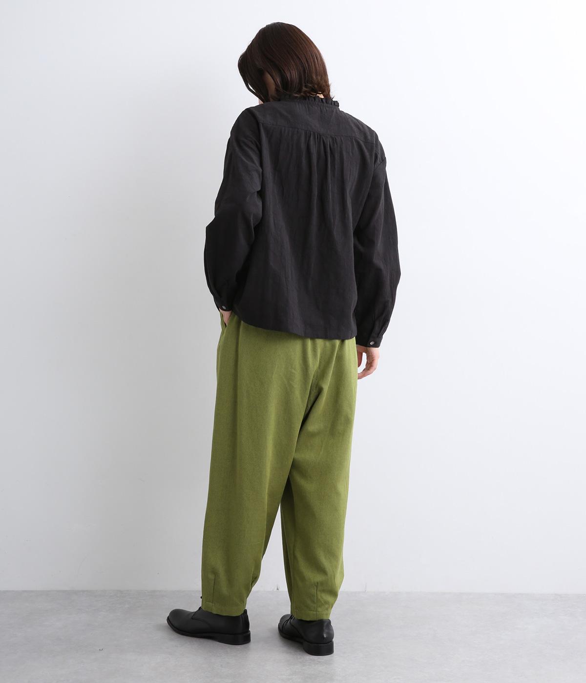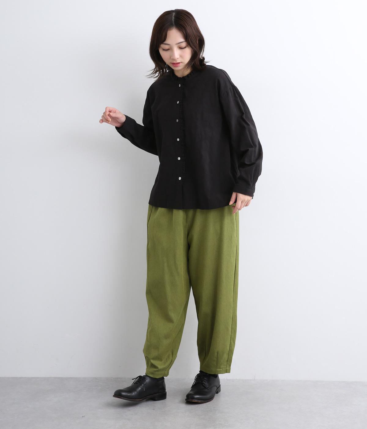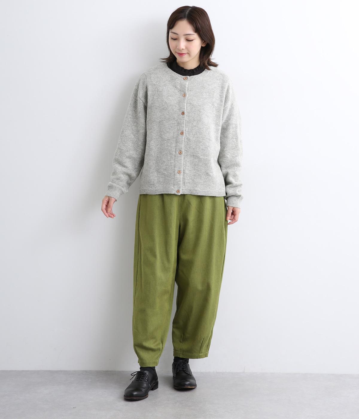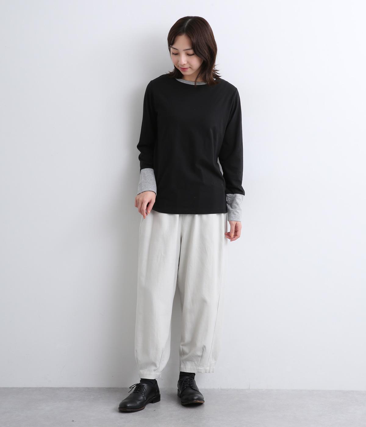 体のラインを拾いにくいコクーンシルエット。裾に向かってすっきりとしぼまるラインが、こなれ感のある着こなしを演出します。裏地付きで安心感があり、ウエストゴム仕様で快適な穿き心地。さまざまなトップスと合わせやすく、着まわし力の高い一着です。