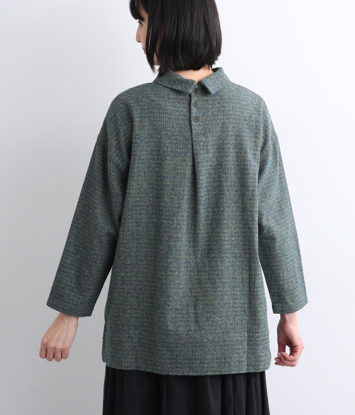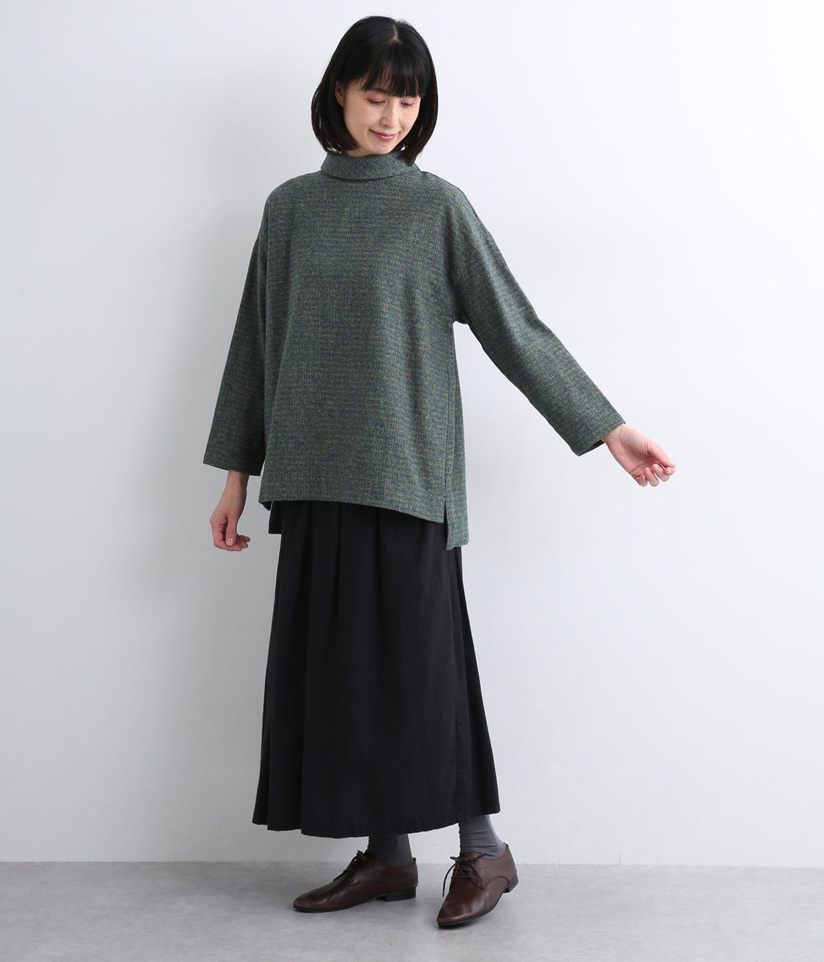 ミックスツイードロールカラープルオーバー(ブルーグリーン-F)