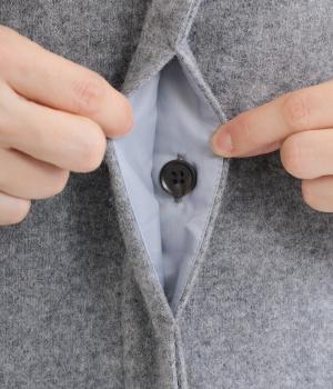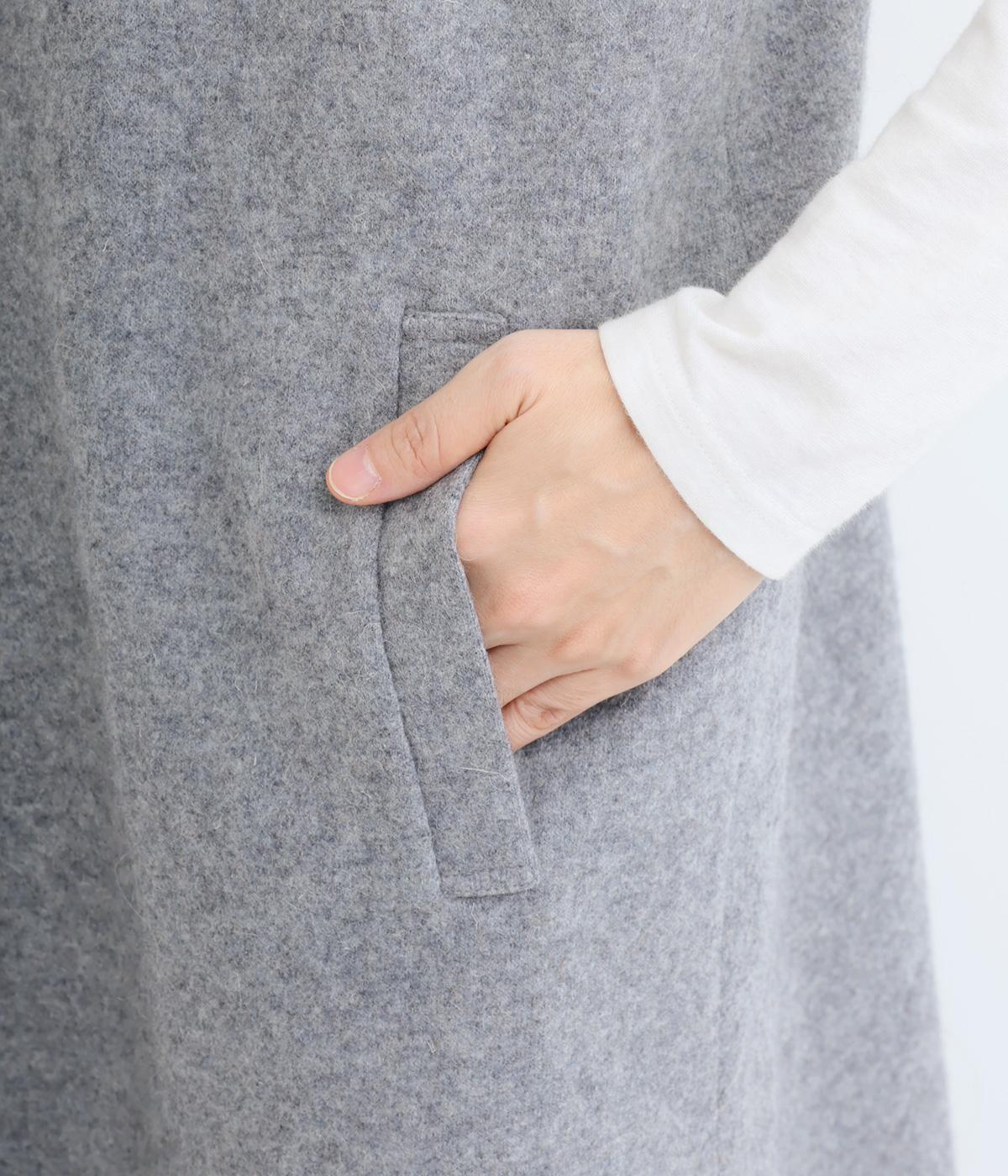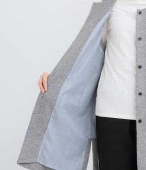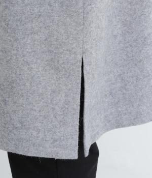 あたたかいウール素材のしっかりとしたコクのある生地。やわらかく、重さを感じにくいのもポイント。一枚羽織るだけで、ひざあたりまで防寒できます。シワになりにくく、形状を長くキープできるのも◎。